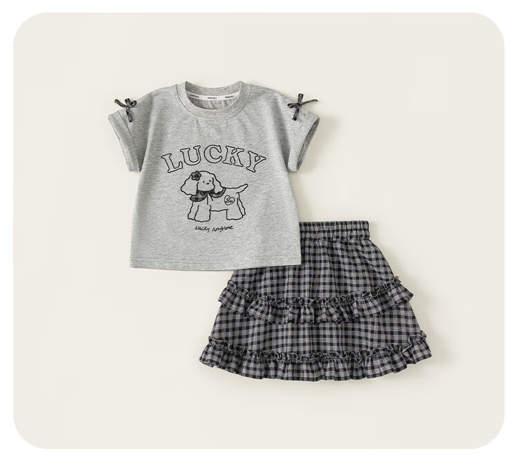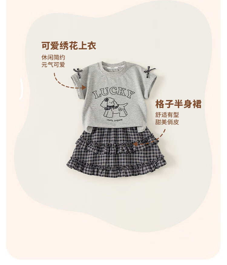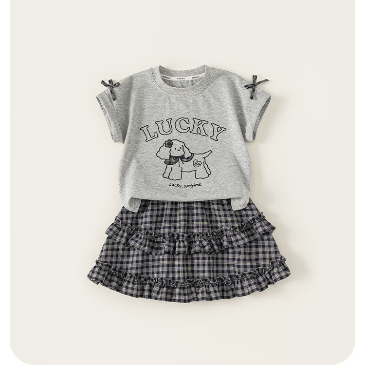 INSBOBO children's clothing girls suit 2026 summer new style children's good-looking t-shirt girls plaid skirt short skirt summer dress Huahui 110