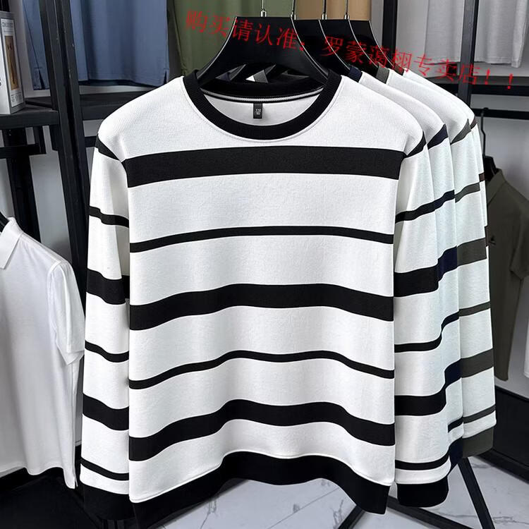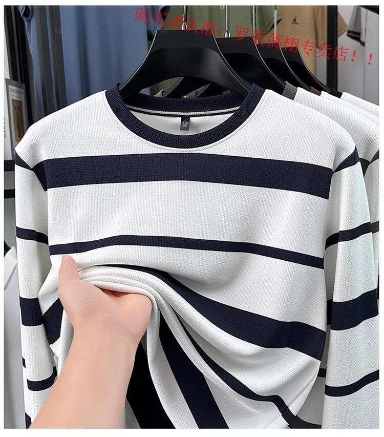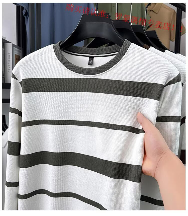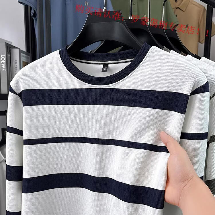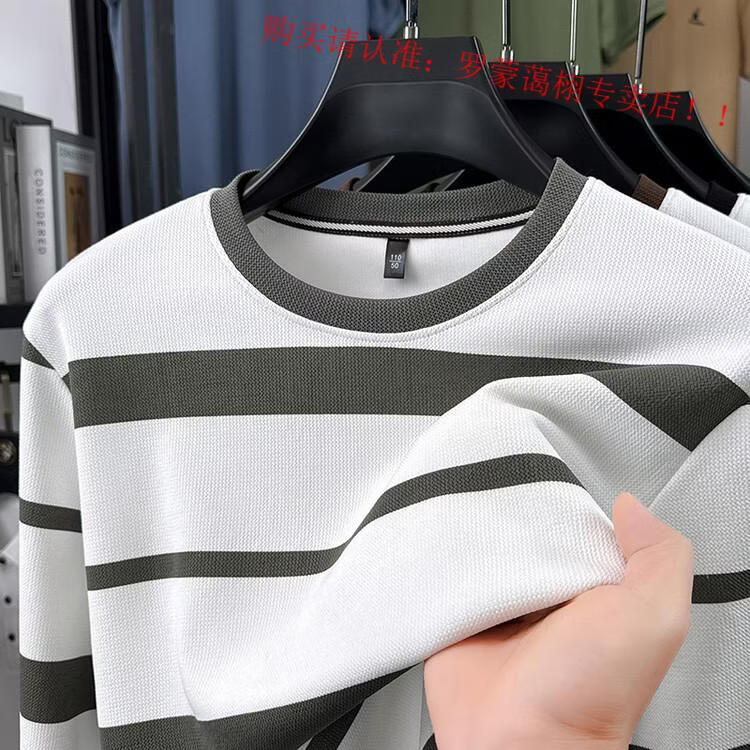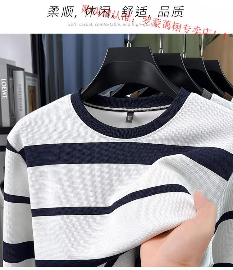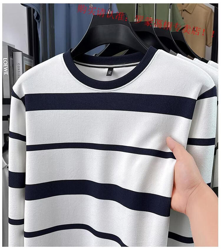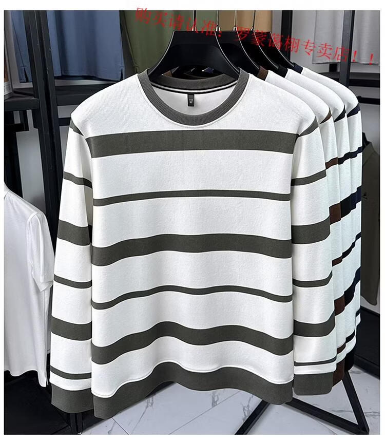 ROMON Men's Long Sleeve T-Shirt Striped Round Neck Contrast Color Top Spring and Autumn 2026 New Youth Round Neck Pullover Sweatshirt Brown M 48