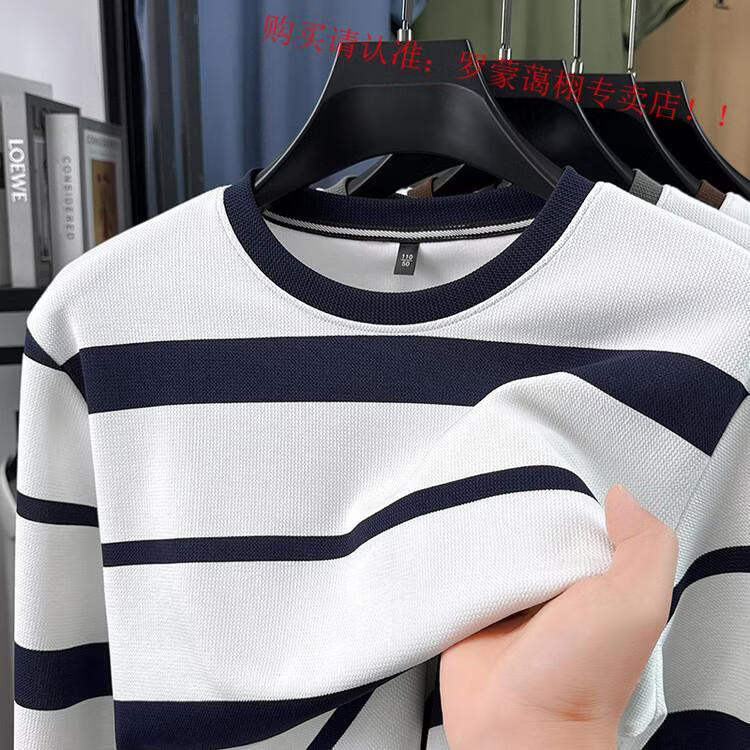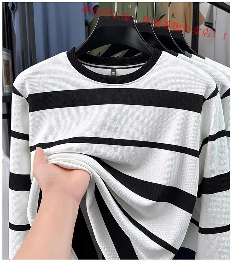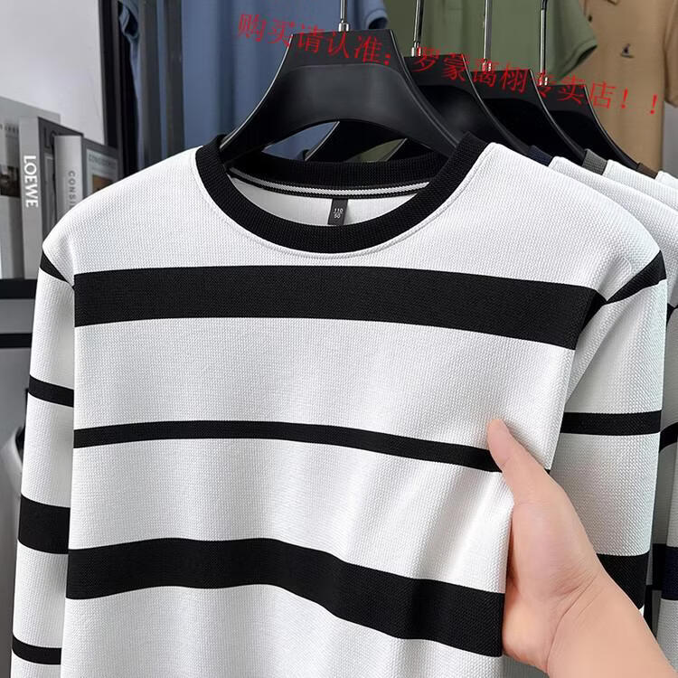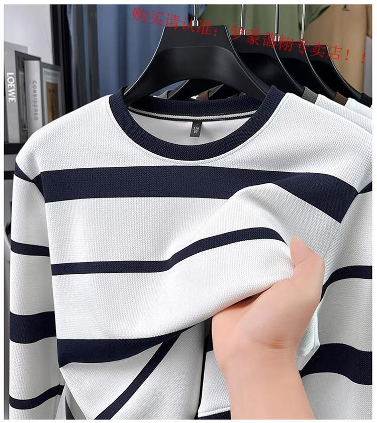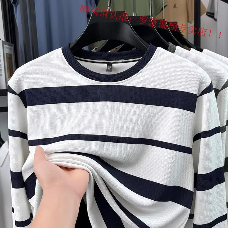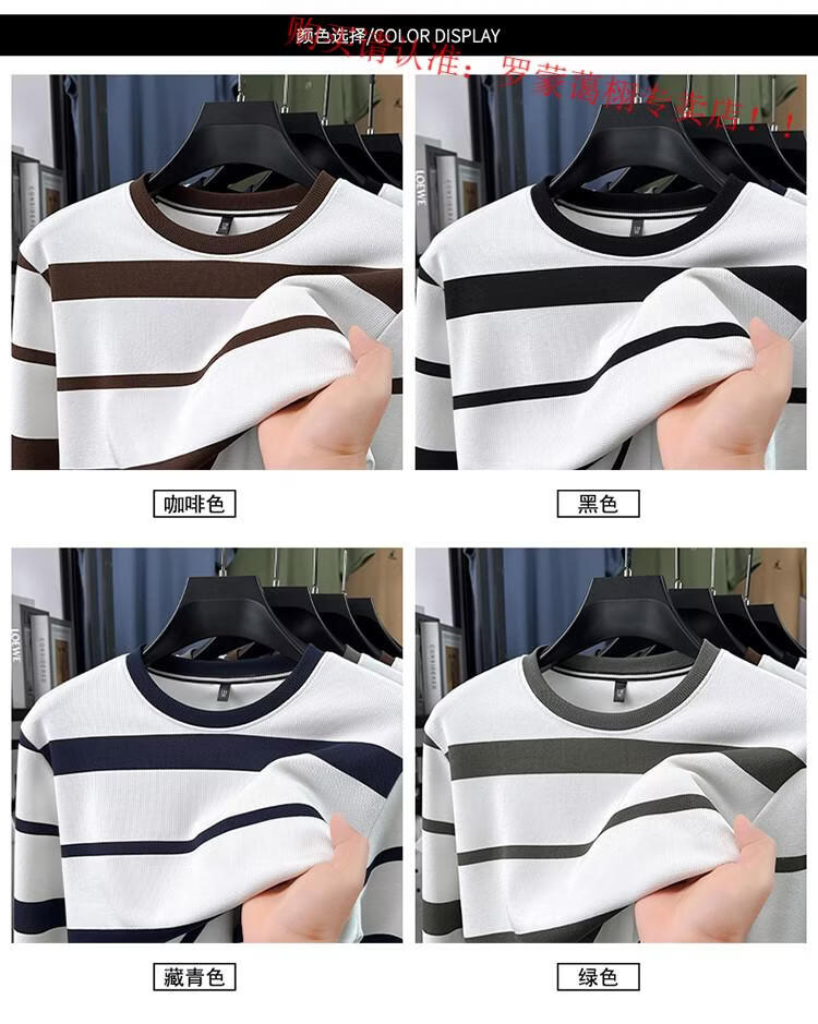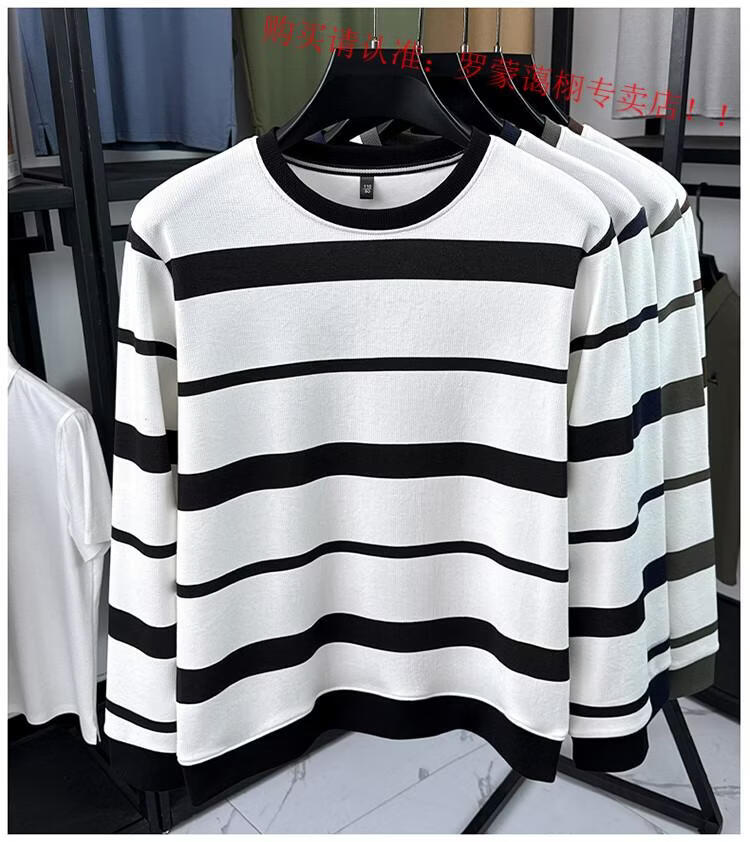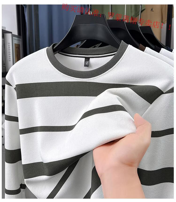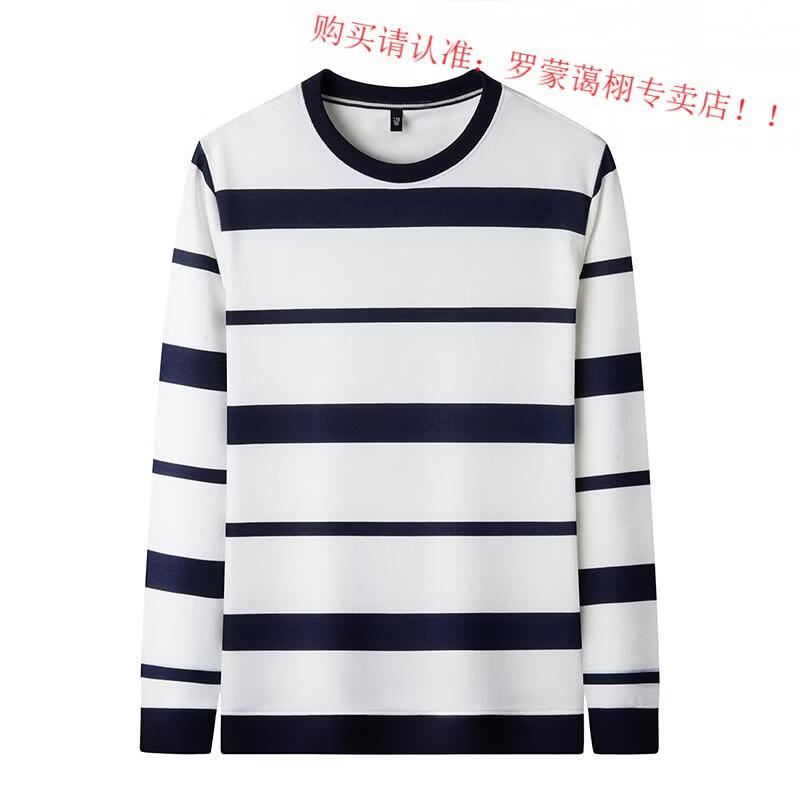 ROMON Men's Long Sleeve T-Shirt Striped Round Neck Contrast Color Top Spring and Autumn 2026 New Youth Round Neck Pullover Sweatshirt Brown M 48