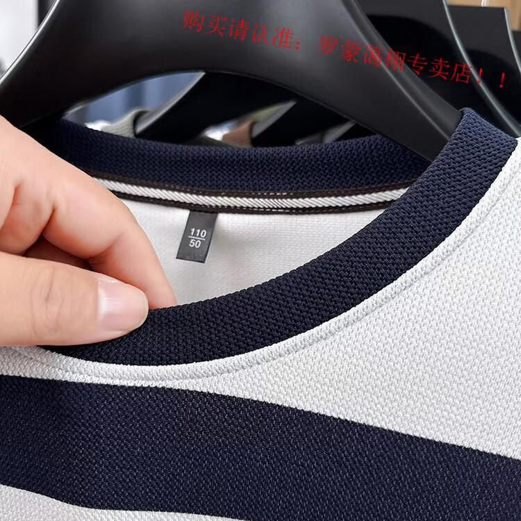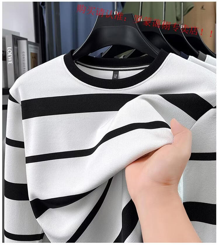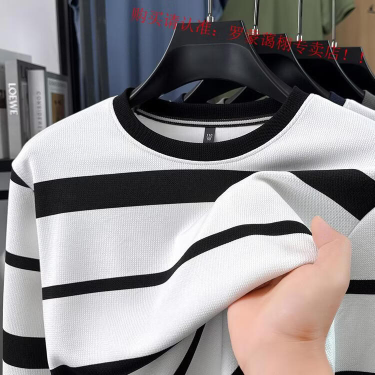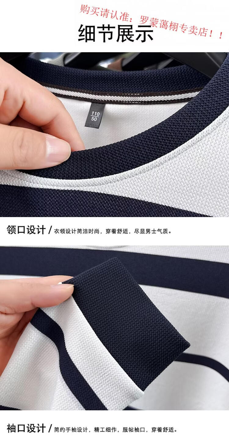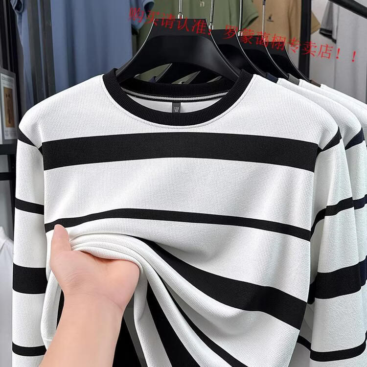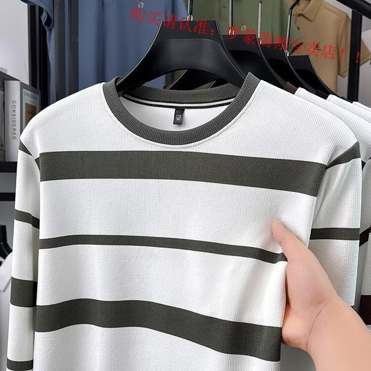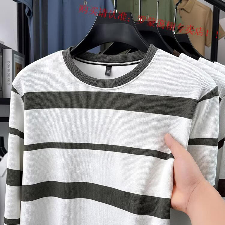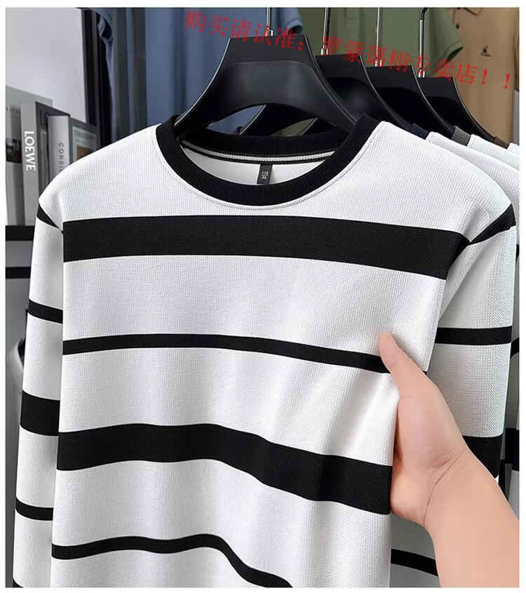 ROMON Men's Long Sleeve T-Shirt Striped Round Neck Contrast Color Top Spring and Autumn 2026 New Youth Round Neck Pullover Sweatshirt Brown M 48