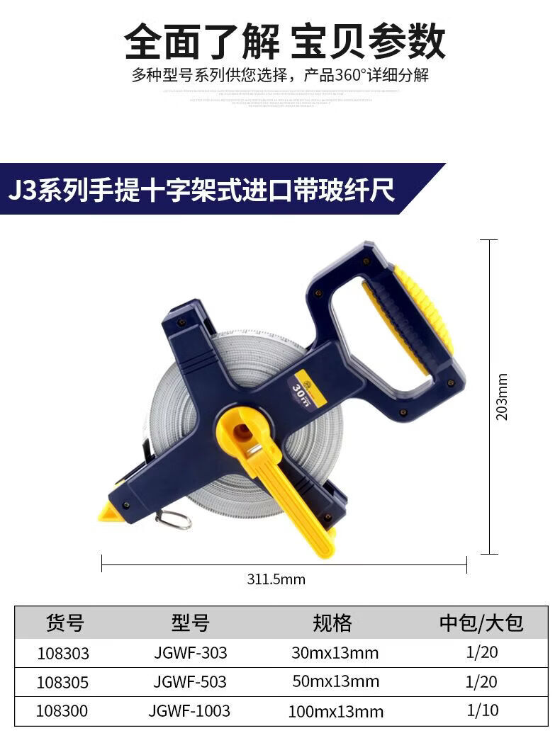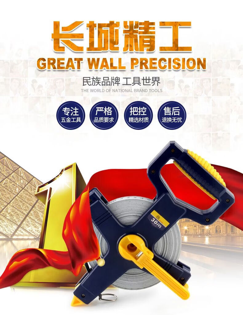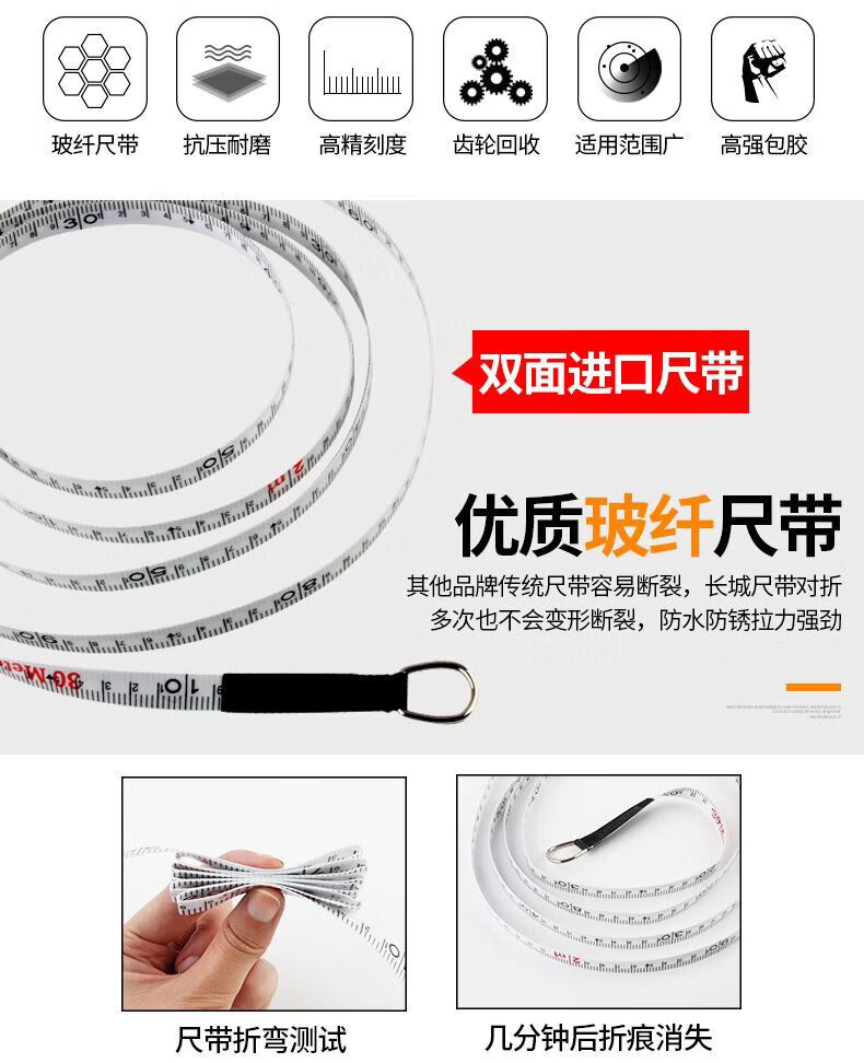 Great Wall Seiko 50-meter high-precision construction site durable tape measure 30 meters (100903) tape measure imported fiberglass ruler