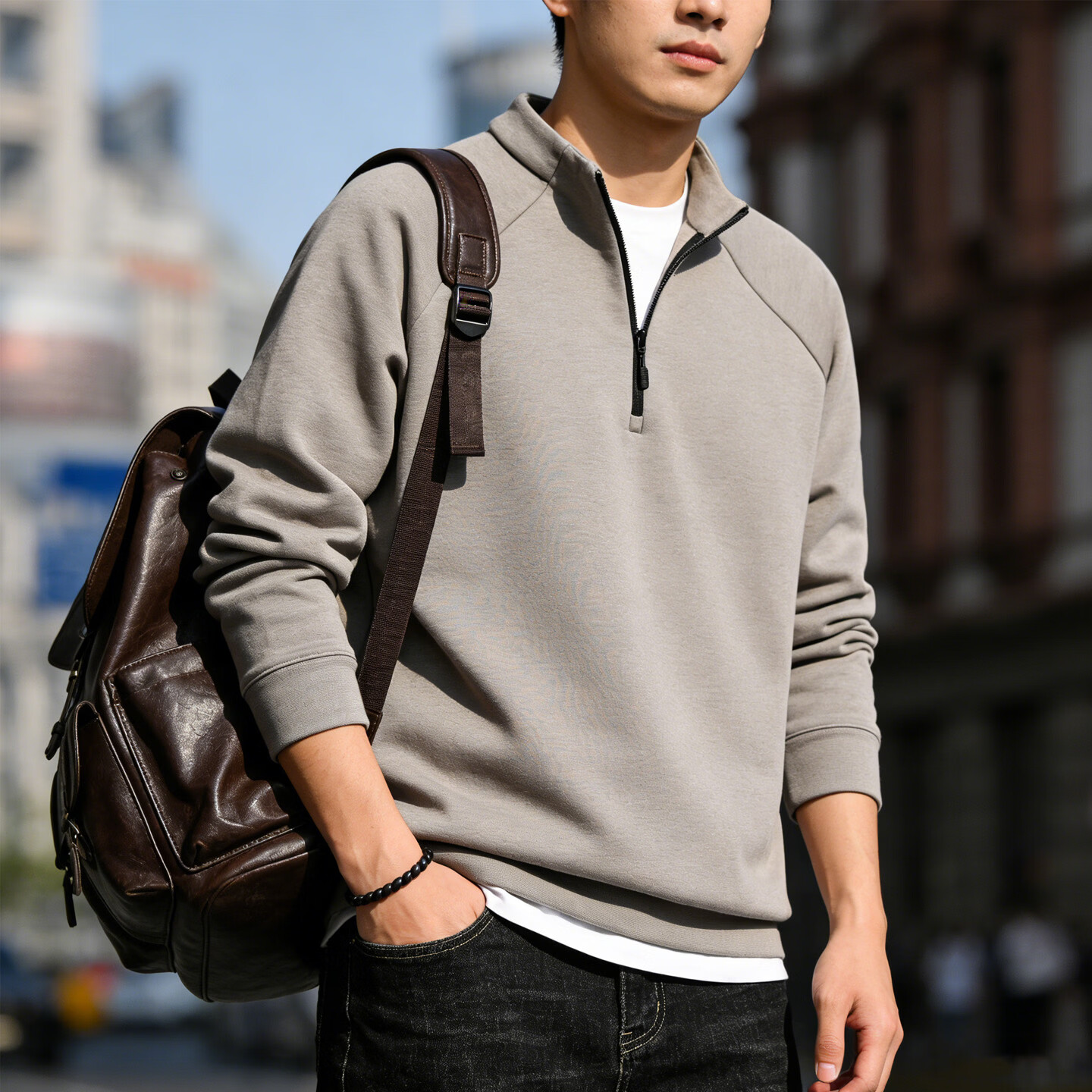 JEEP SPIRIT half-zip stand-up collar sweatshirt men's solid color simple casual sports long-sleeved top bottoming shirt spring and autumn new gray S