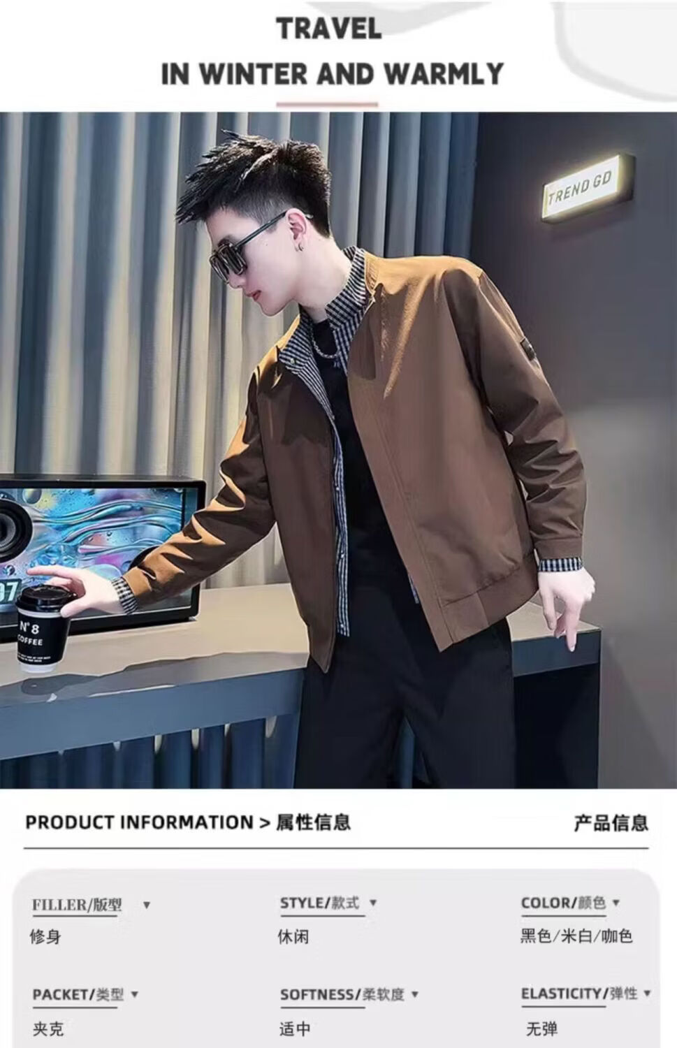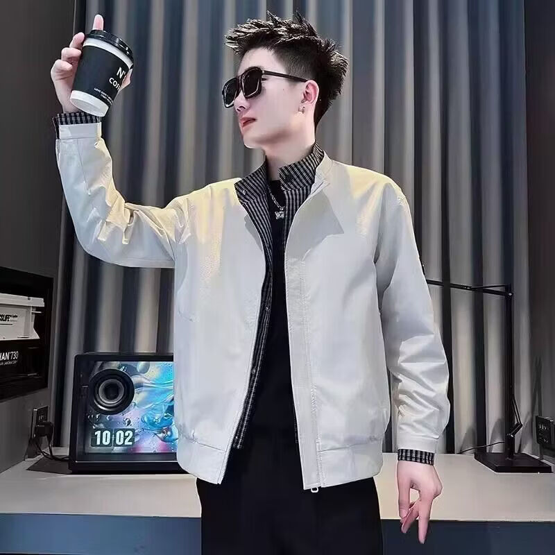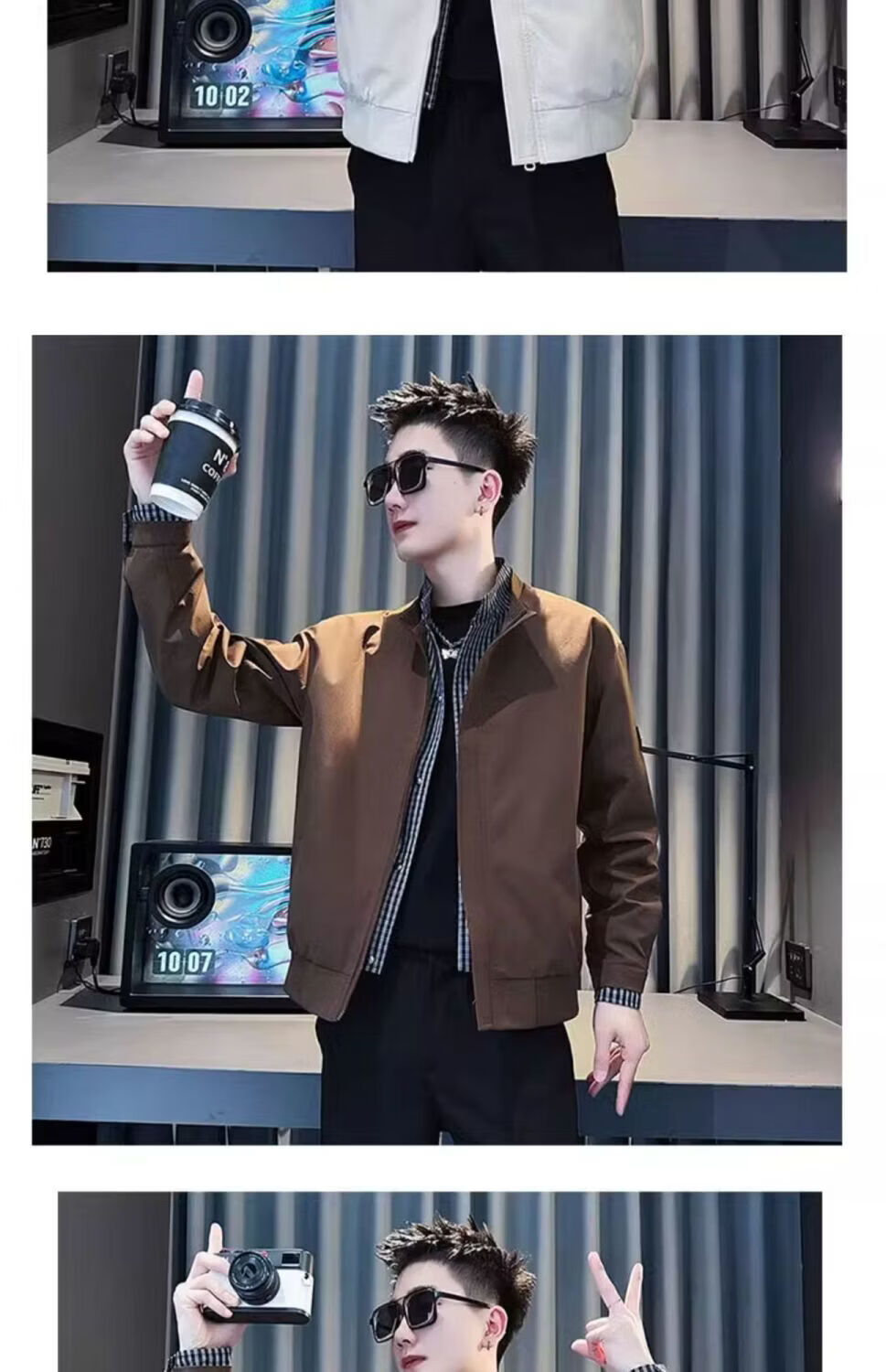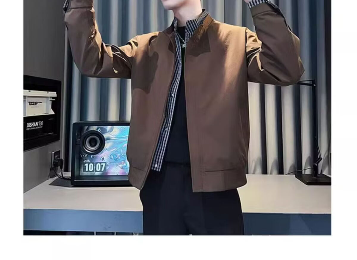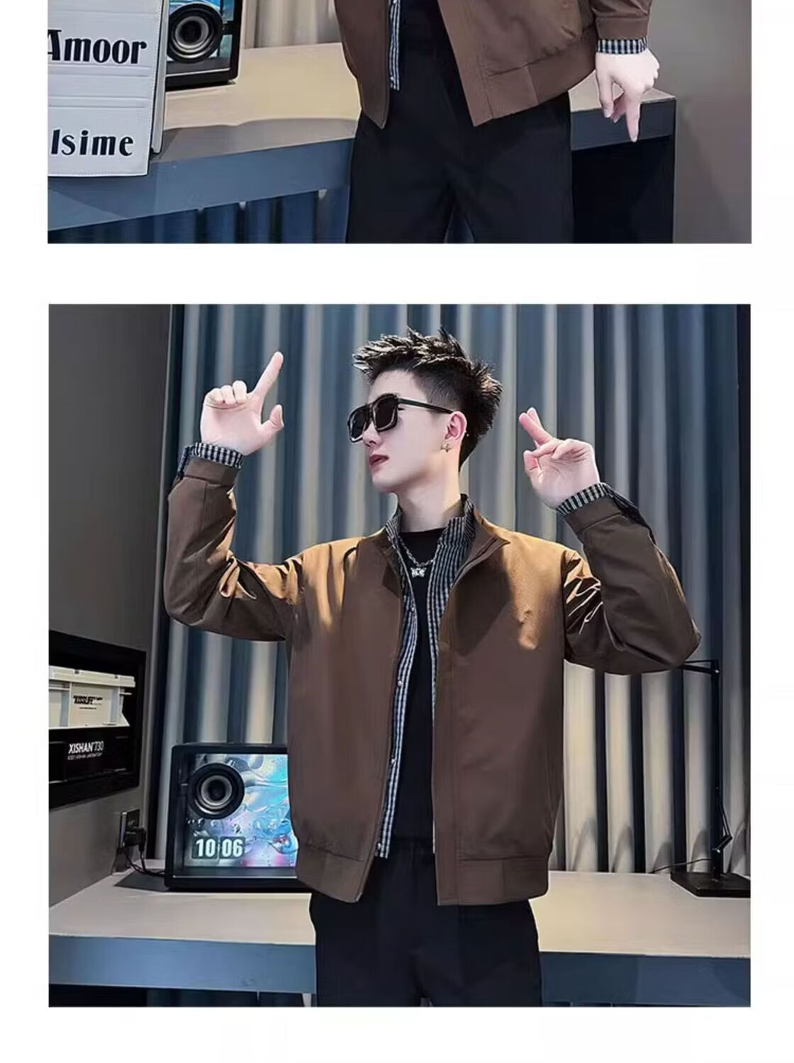 Playboy (PLAYBOY) Spring and Autumn Vacation Two-Piece Jackets Men's Small Stand Collar Clothes 2026 New Men's Tops Trendy Brand Jackets Brown Color M If the photo is wrong, please contact customer service for quick modification
