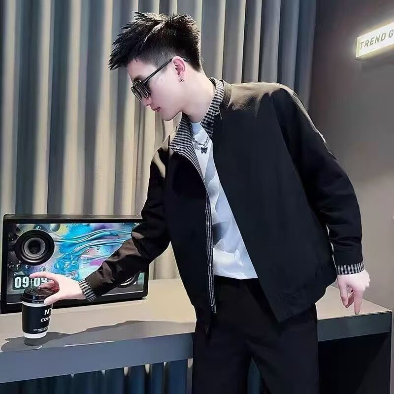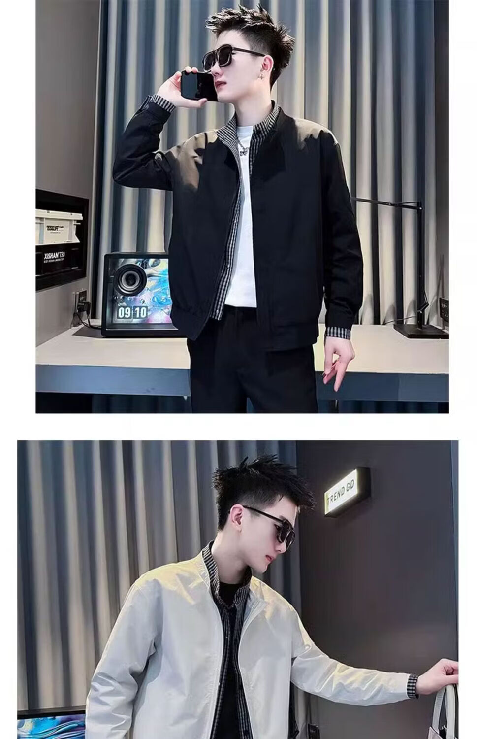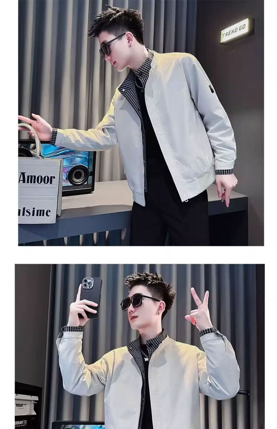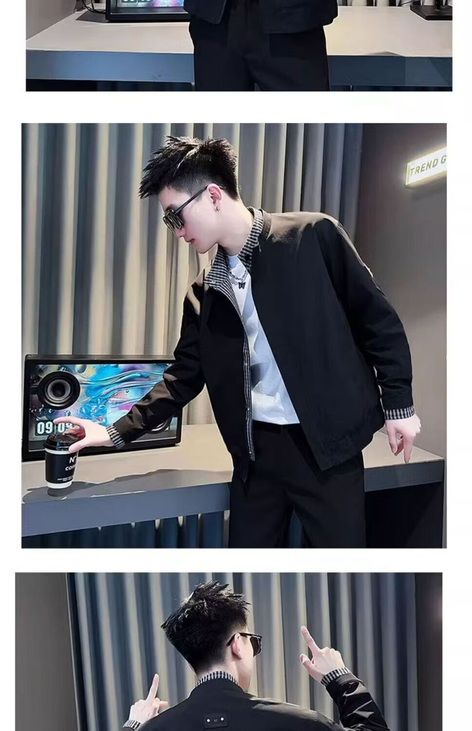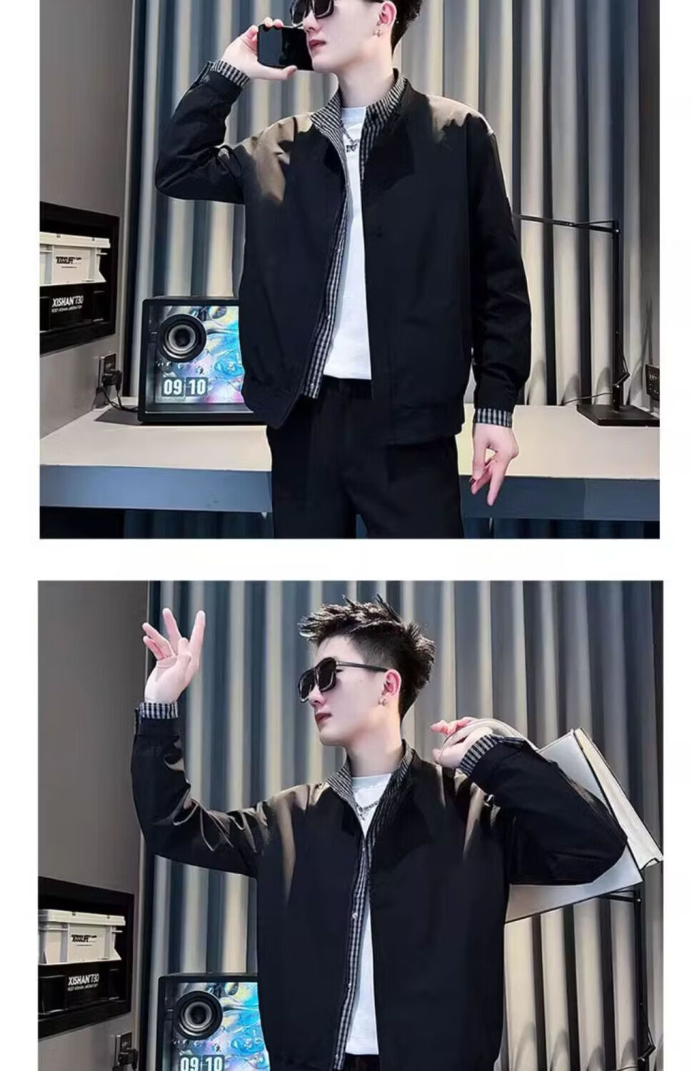Playboy (PLAYBOY) Spring and Autumn Vacation Two-Piece Jackets Men's Small Stand Collar Clothes 2026 New Men's Tops Trendy Brand Jackets Brown Color M If the photo is wrong, please contact customer service for quick modification
