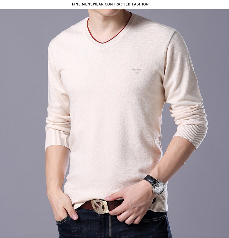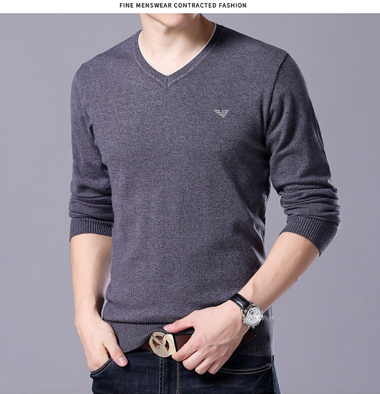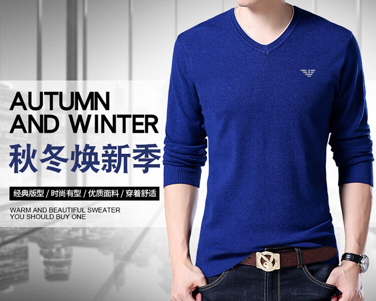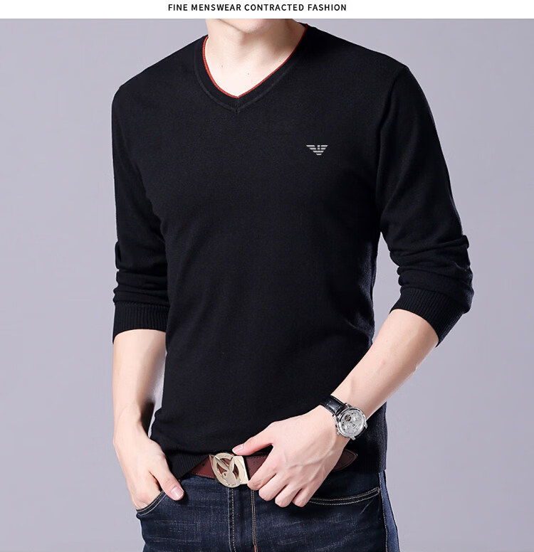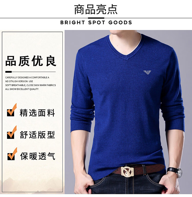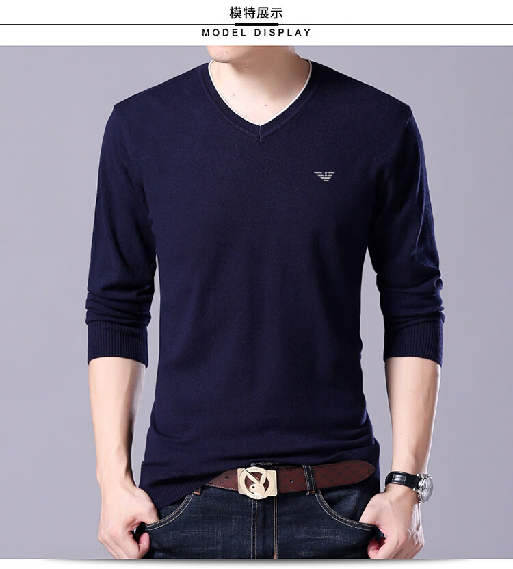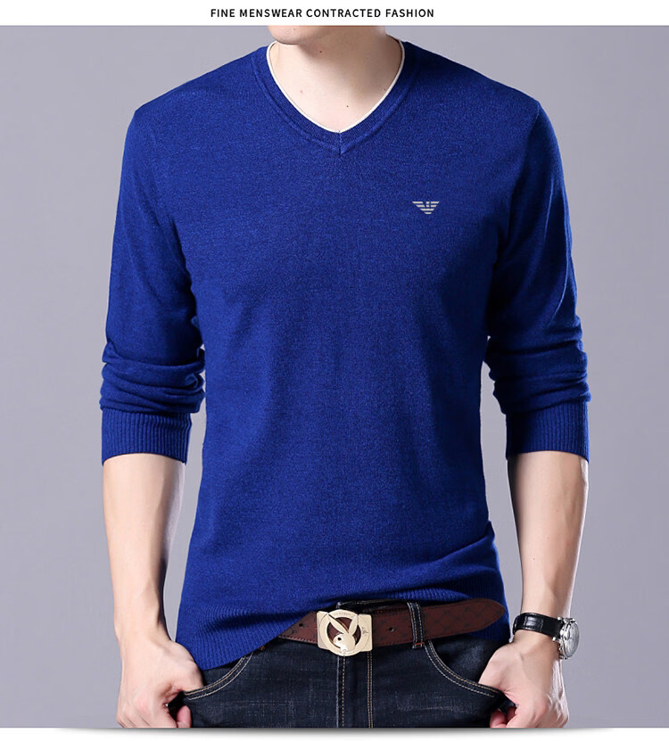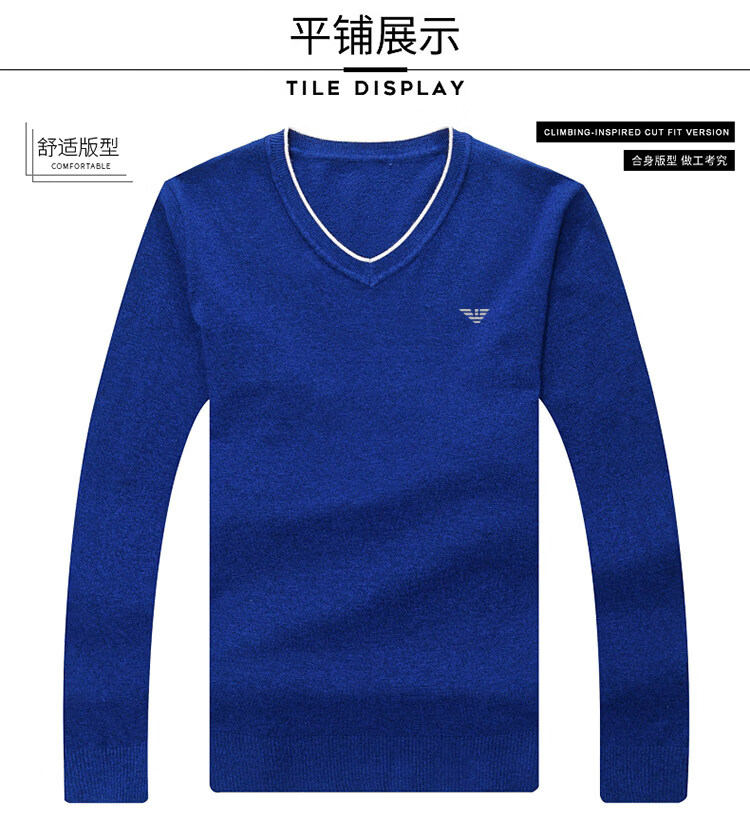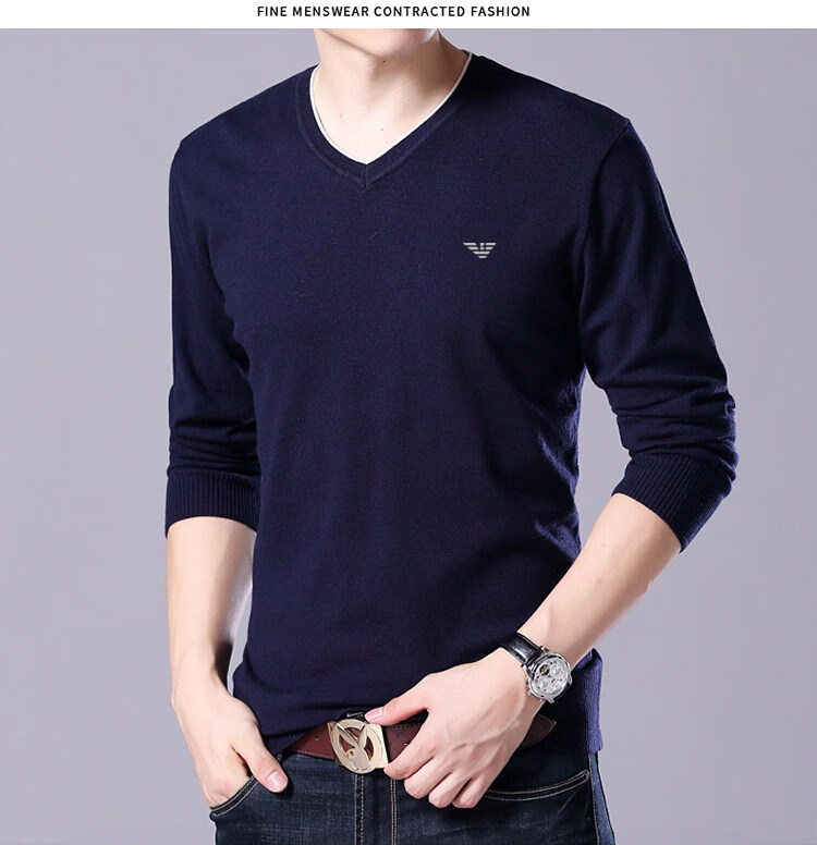 Armani (ARMANI) large size men's v-neck long-sleeved T-shirt fat guy cardigan fat guy loose bottoming shirt fat guy T-shirt blue L 170