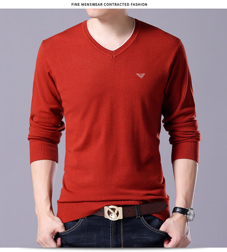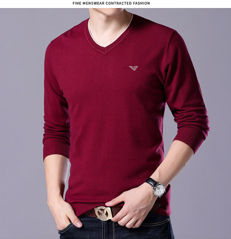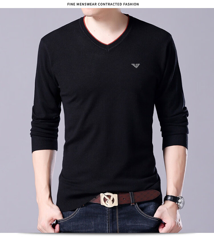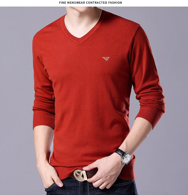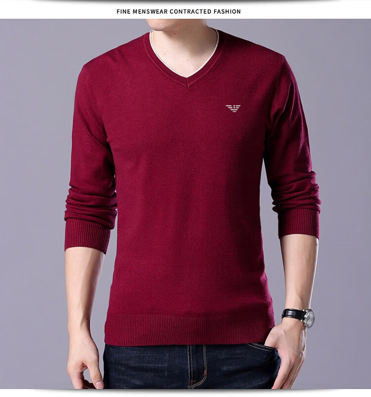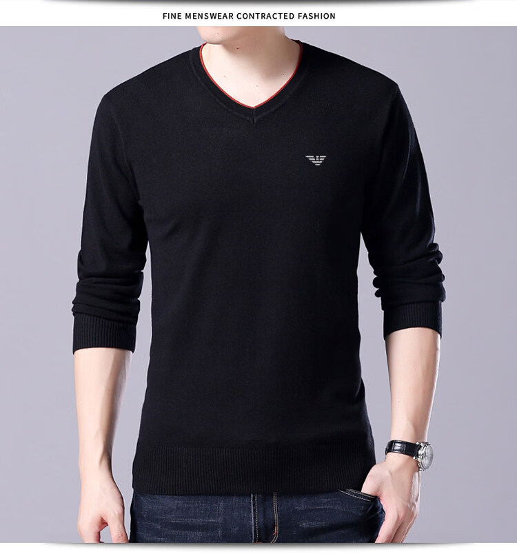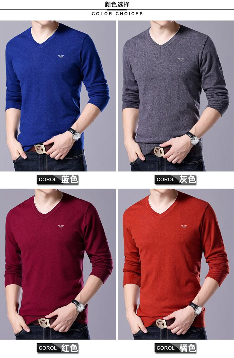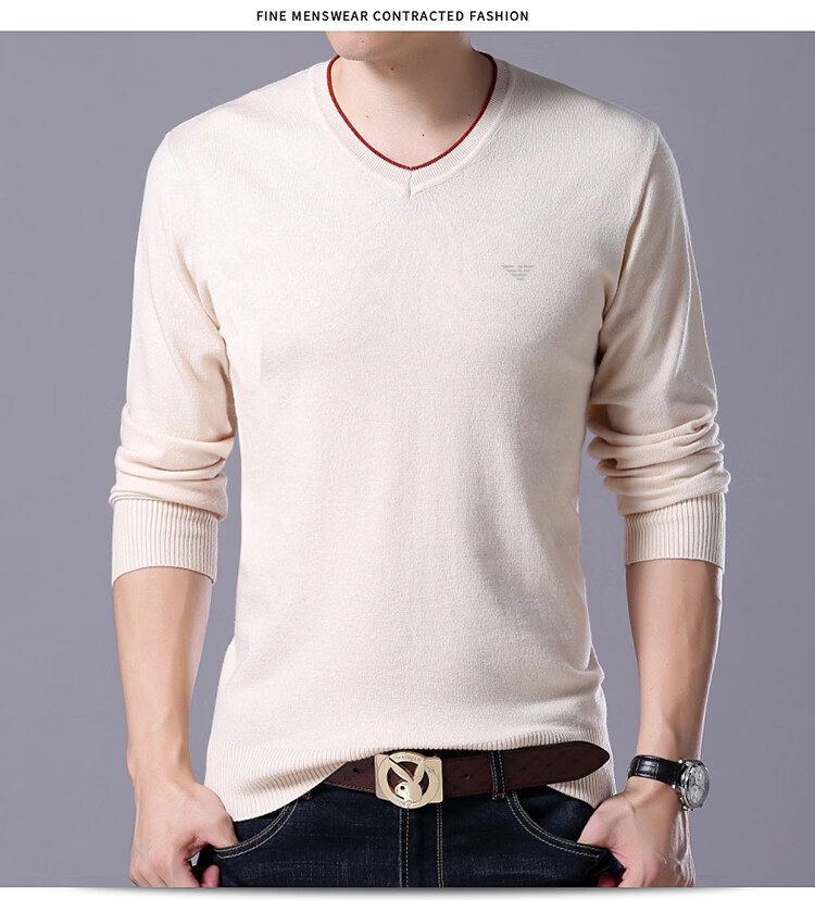 Armani (ARMANI) large size men's v-neck long-sleeved T-shirt fat guy cardigan fat guy loose bottoming shirt fat guy T-shirt blue L 170