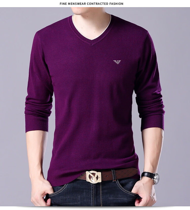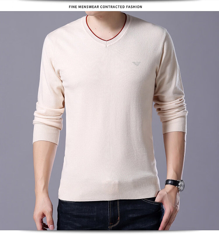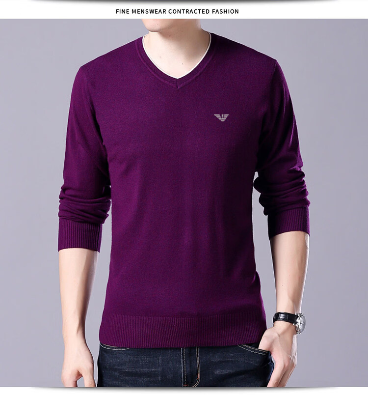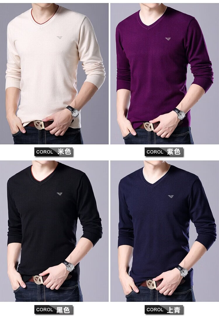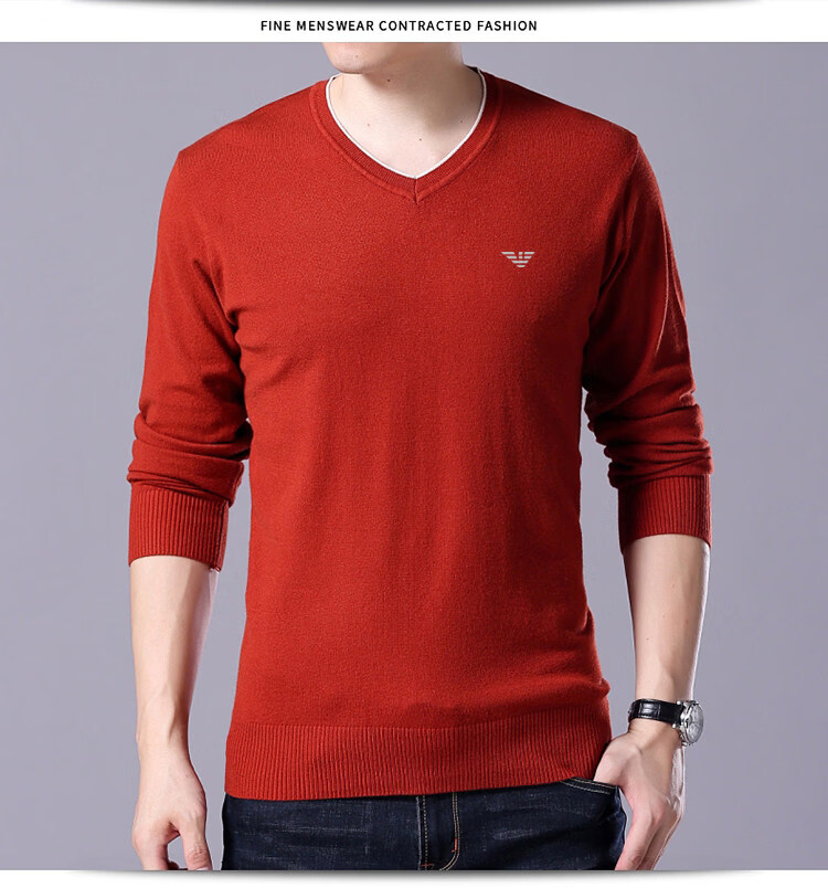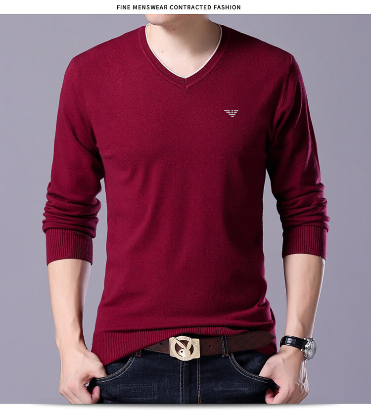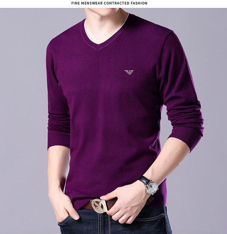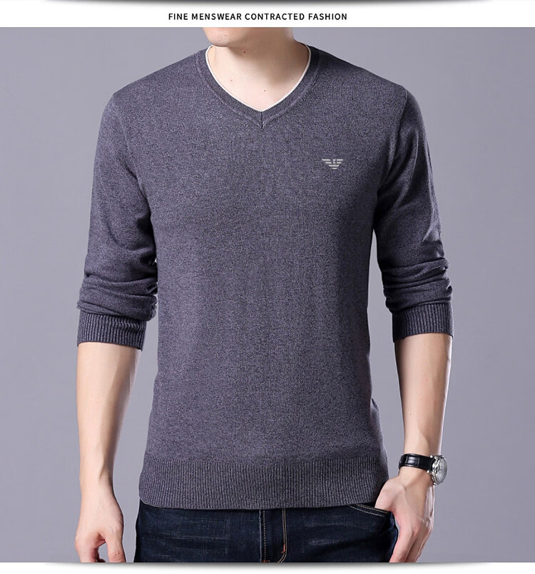 Armani (ARMANI) large size men's v-neck long-sleeved T-shirt fat guy cardigan fat guy loose bottoming shirt fat guy T-shirt blue L 170