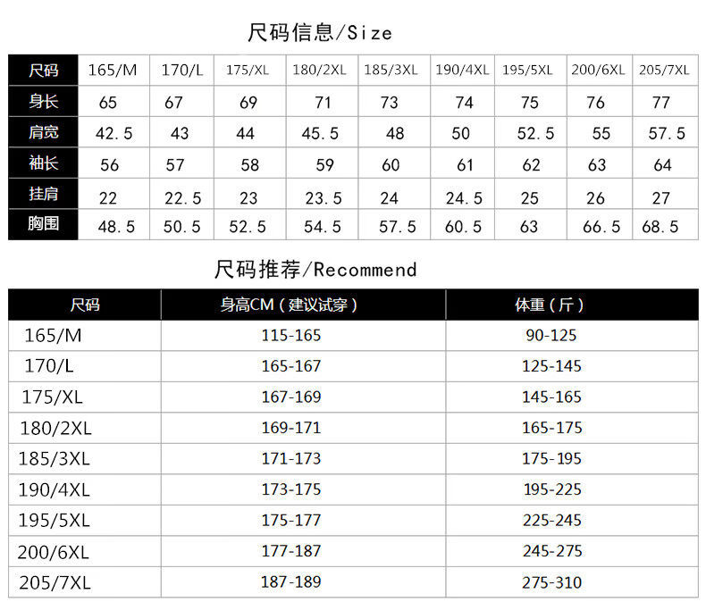 China (cm) 165 / 88-90 170 / 96-98 175 / 108-110 180 / 118-122 185 / 126-130
