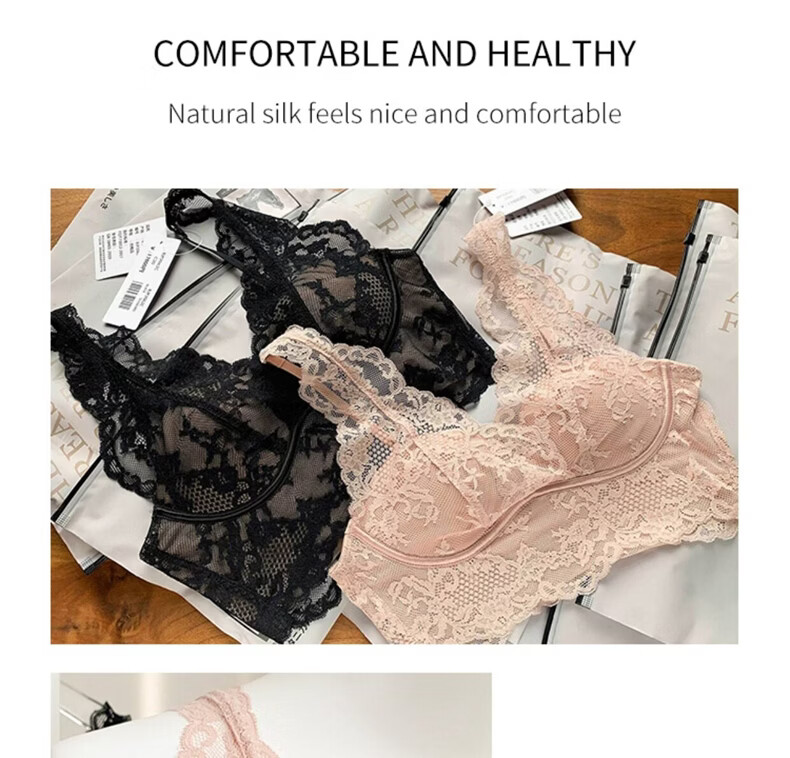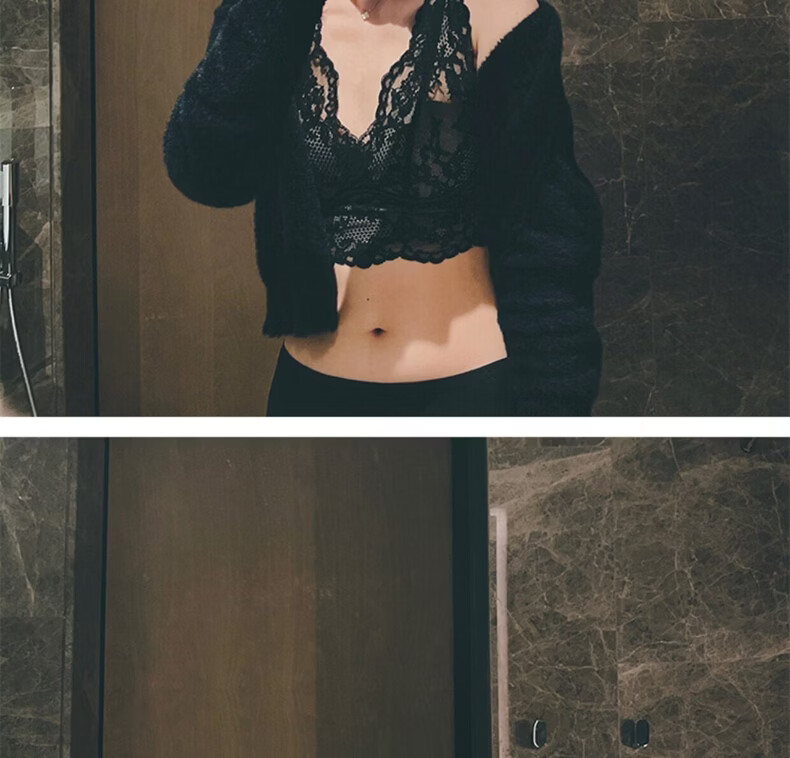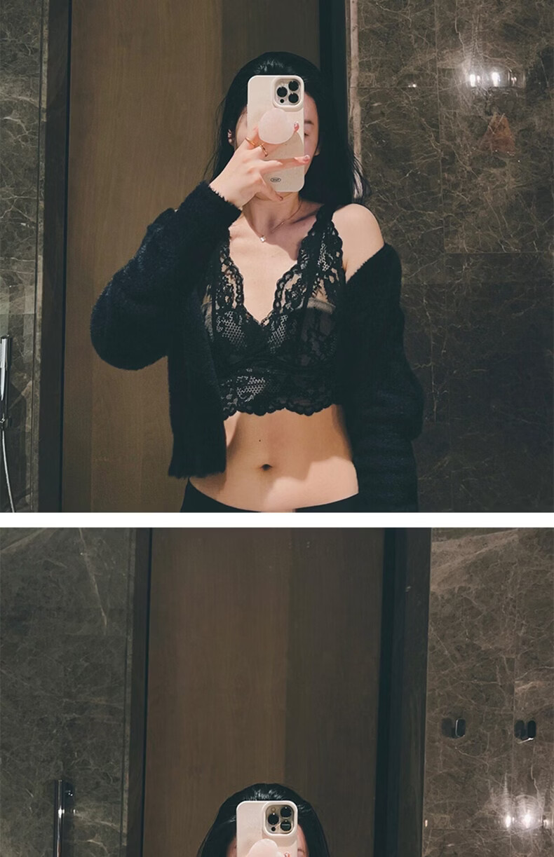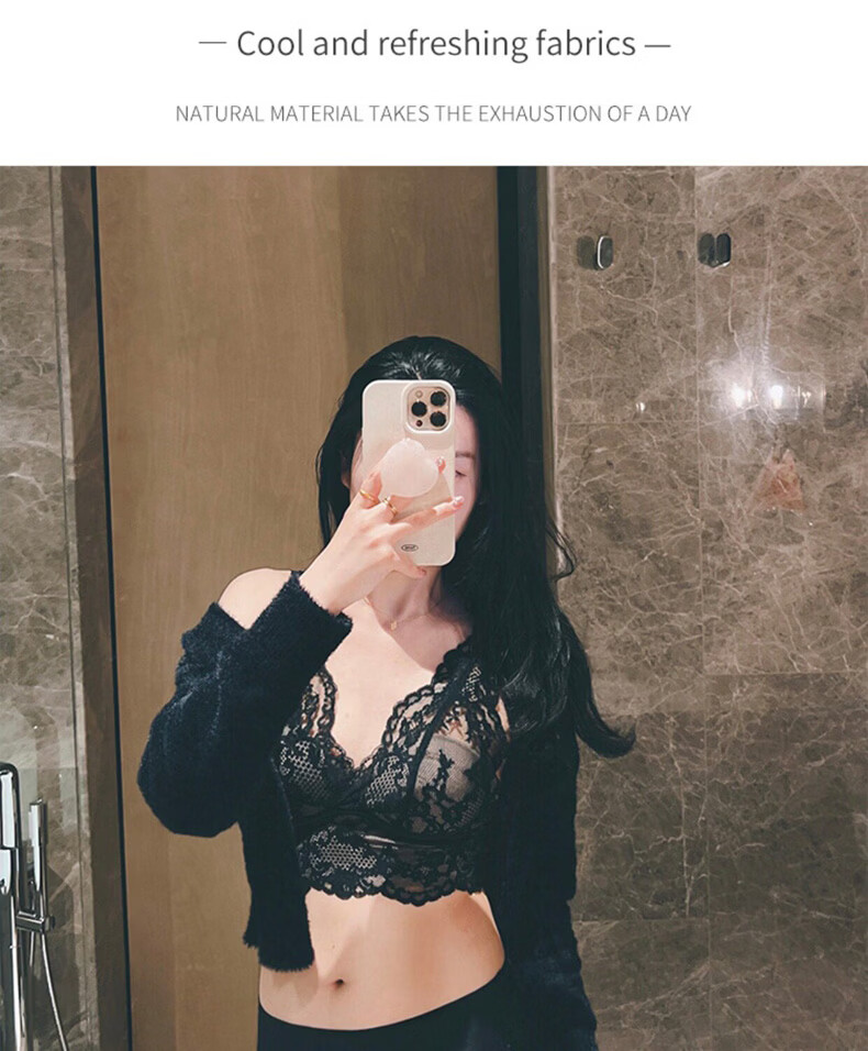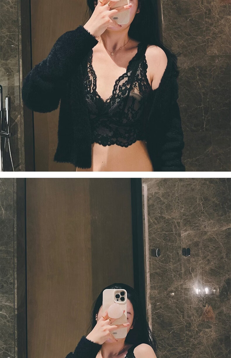 MOXTOC Beautiful Back Bra Women's Wireless Lace Beautiful Back Bra Sexy Luxury Inner Bottoming Vest Black (Bra Underwear) S (70ABC-75A)