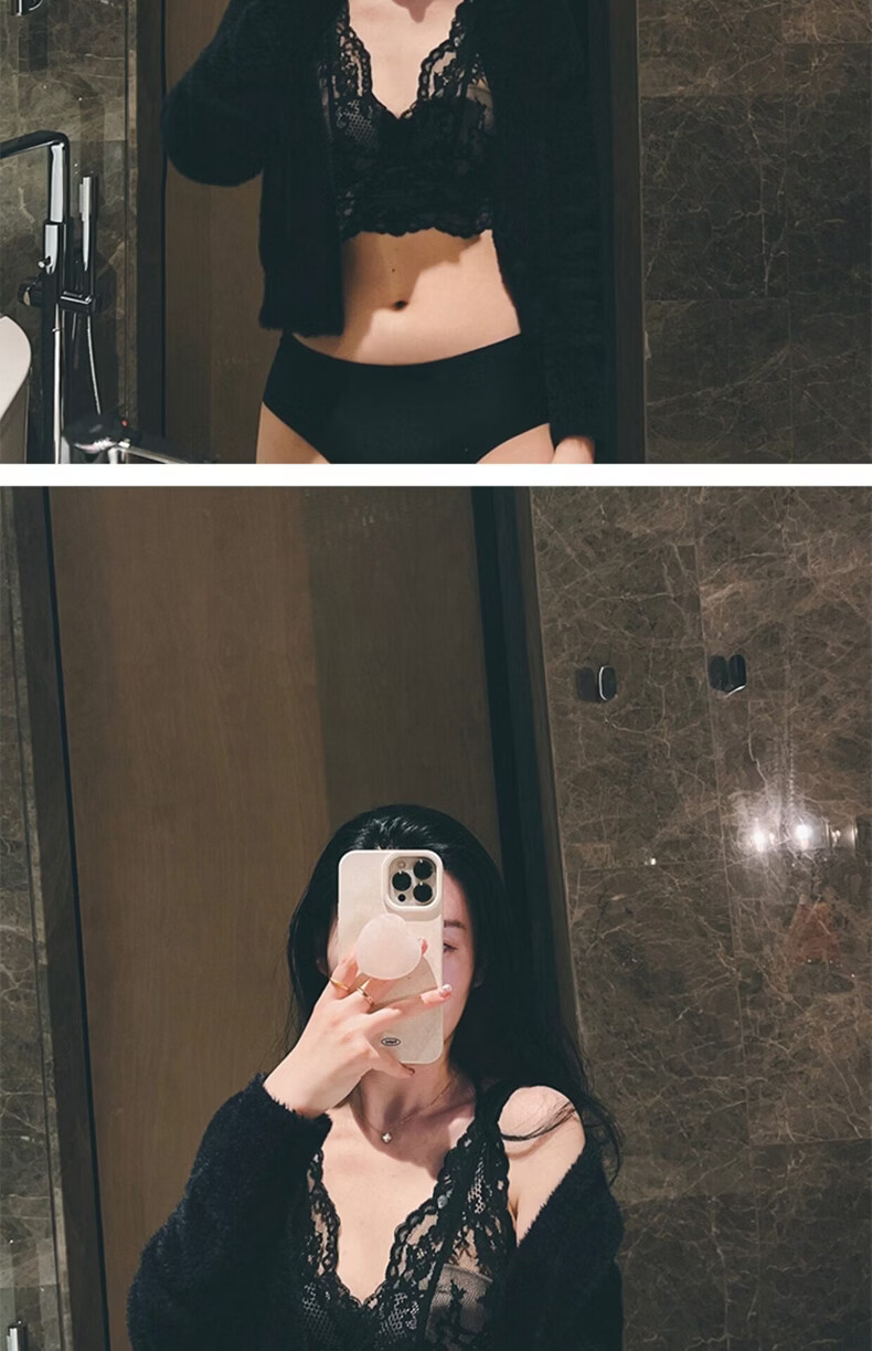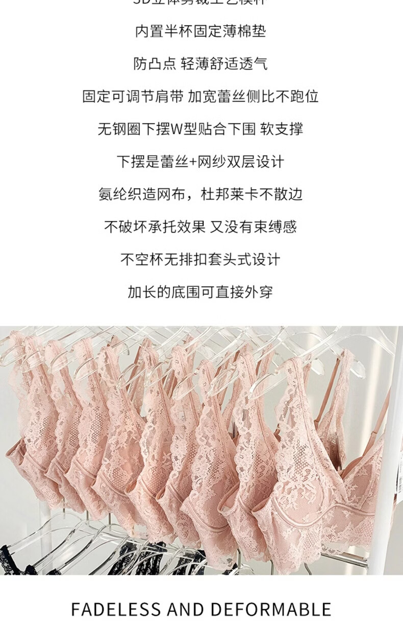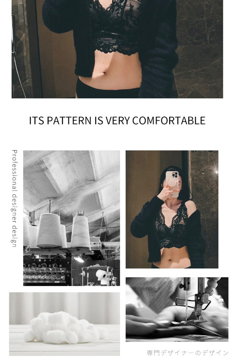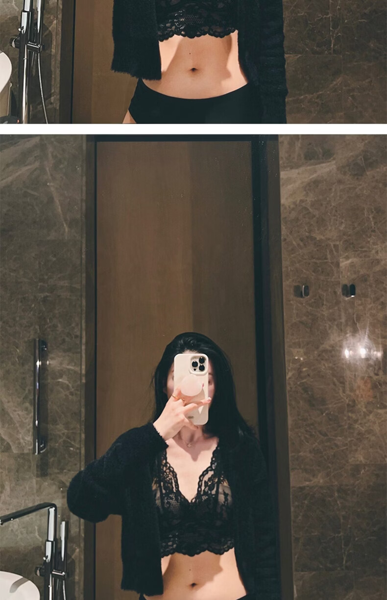 MOXTOC Beautiful Back Bra Women's Wireless Lace Beautiful Back Bra Sexy Luxury Inner Bottoming Vest Black (Bra Underwear) S (70ABC-75A)