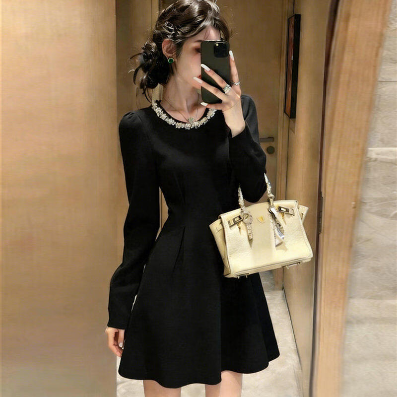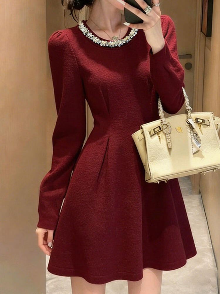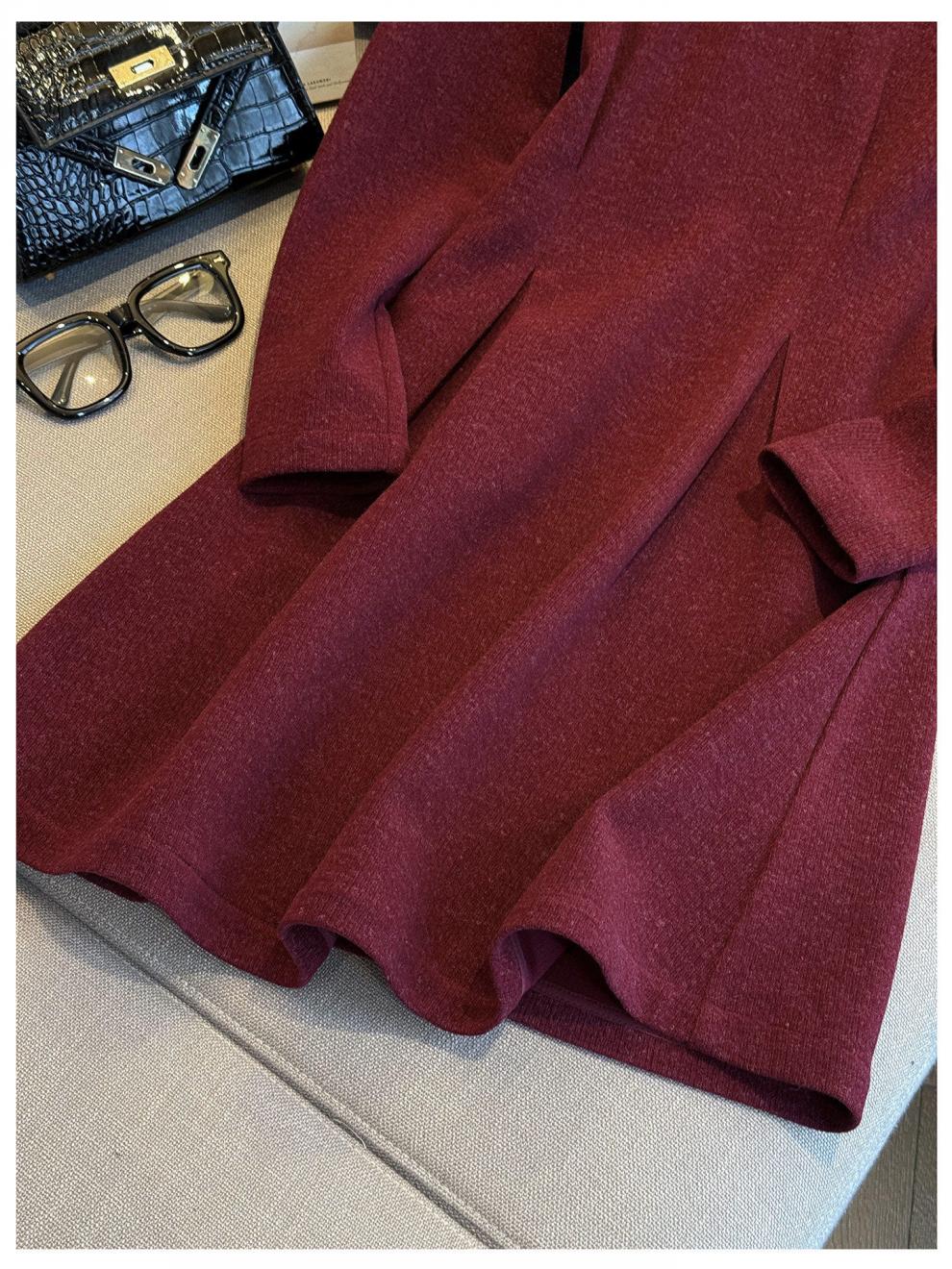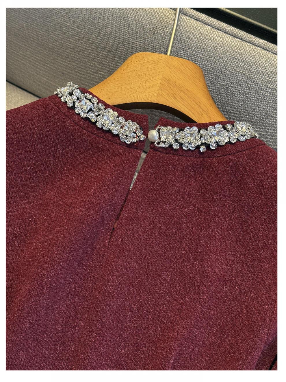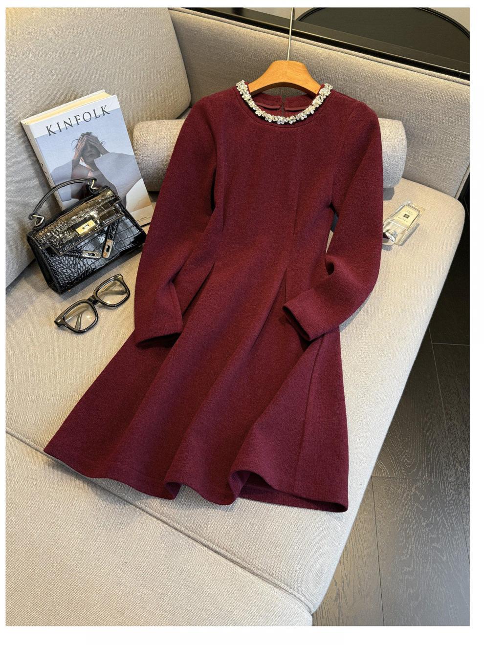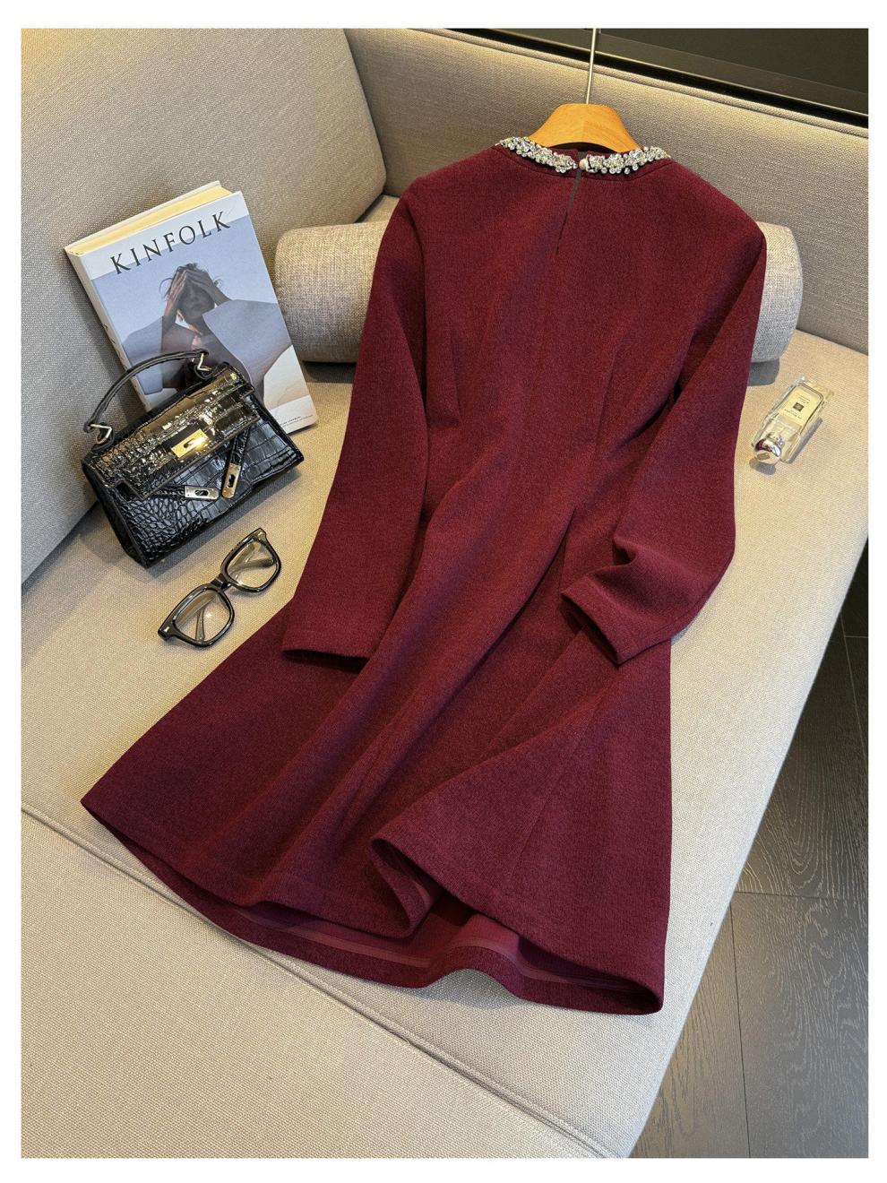 Xiaohongshu gold-embellished diamond red engagement dress for women, autumn and winter long-sleeved petite banquet toast, burgundy M