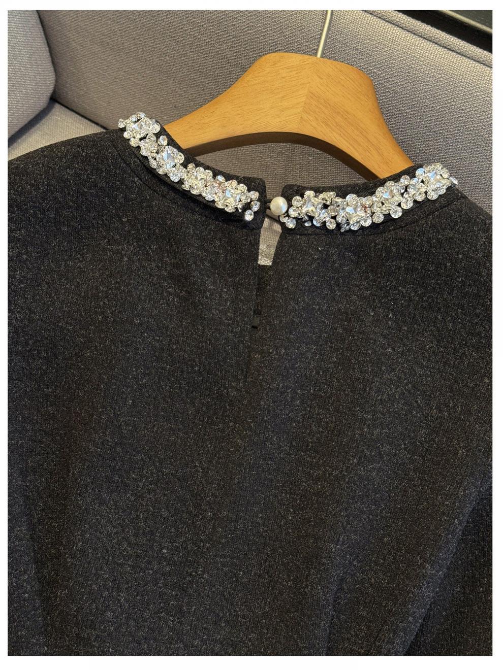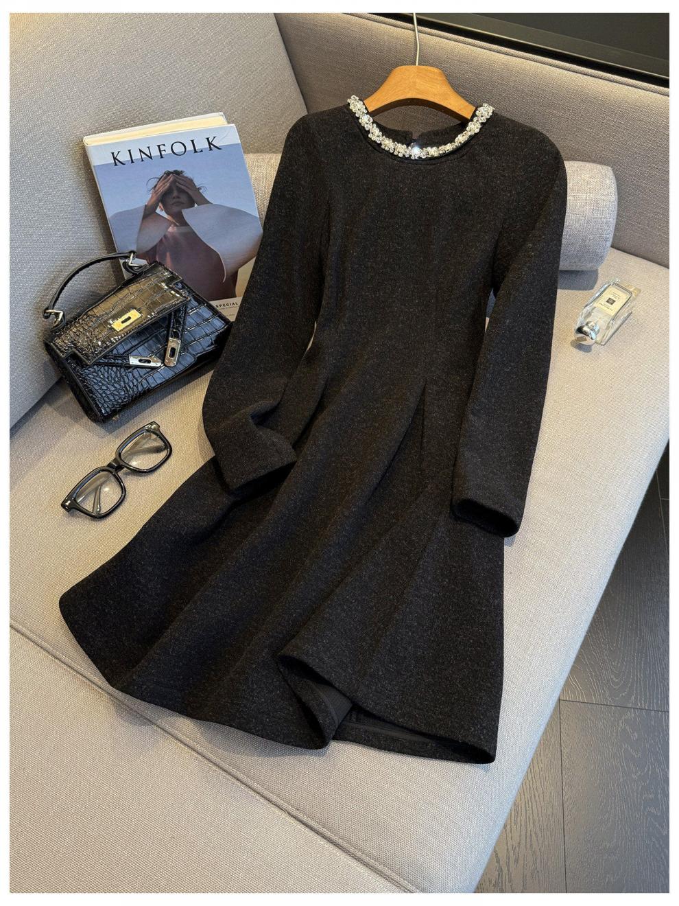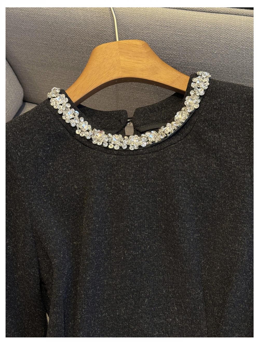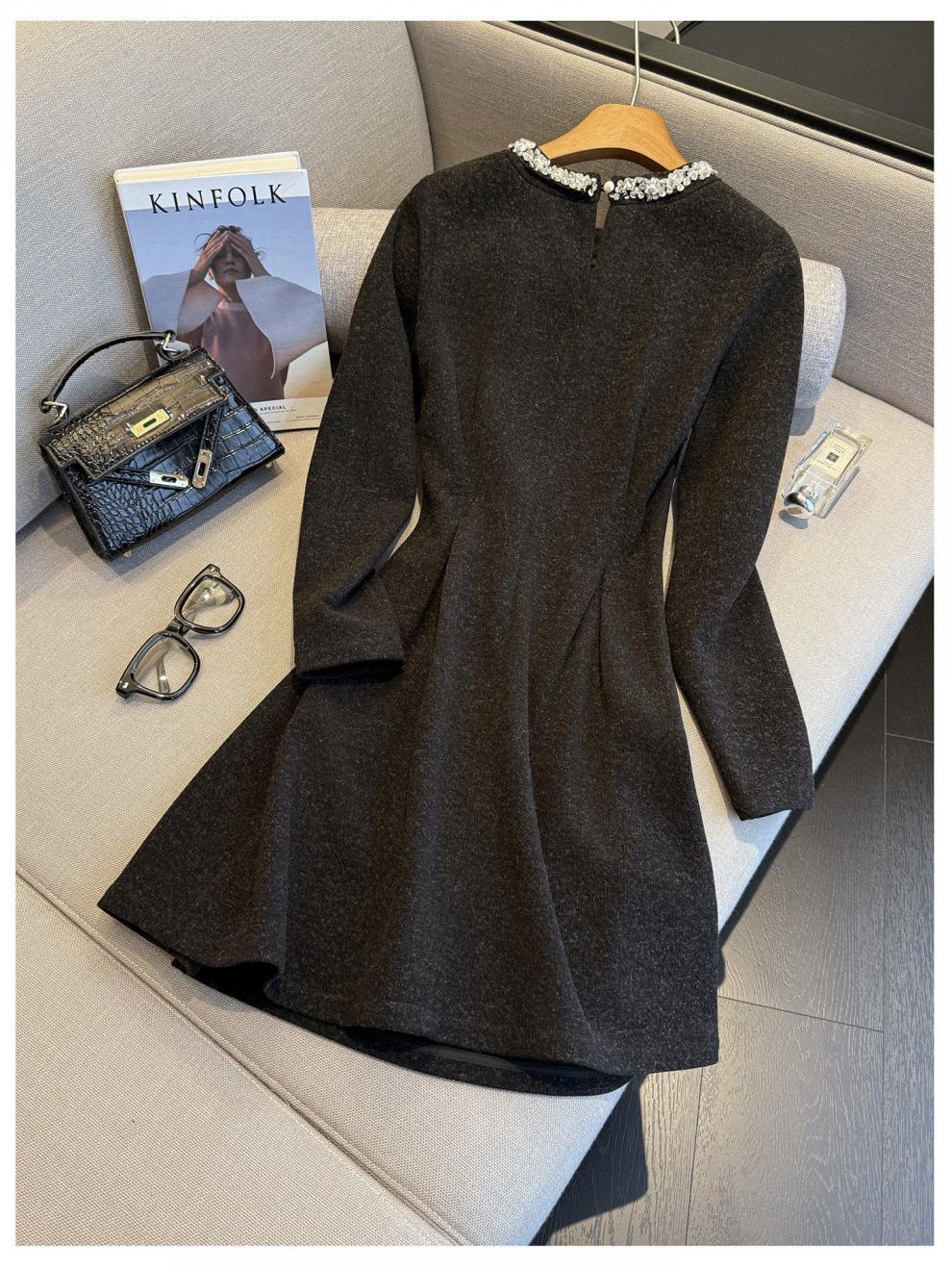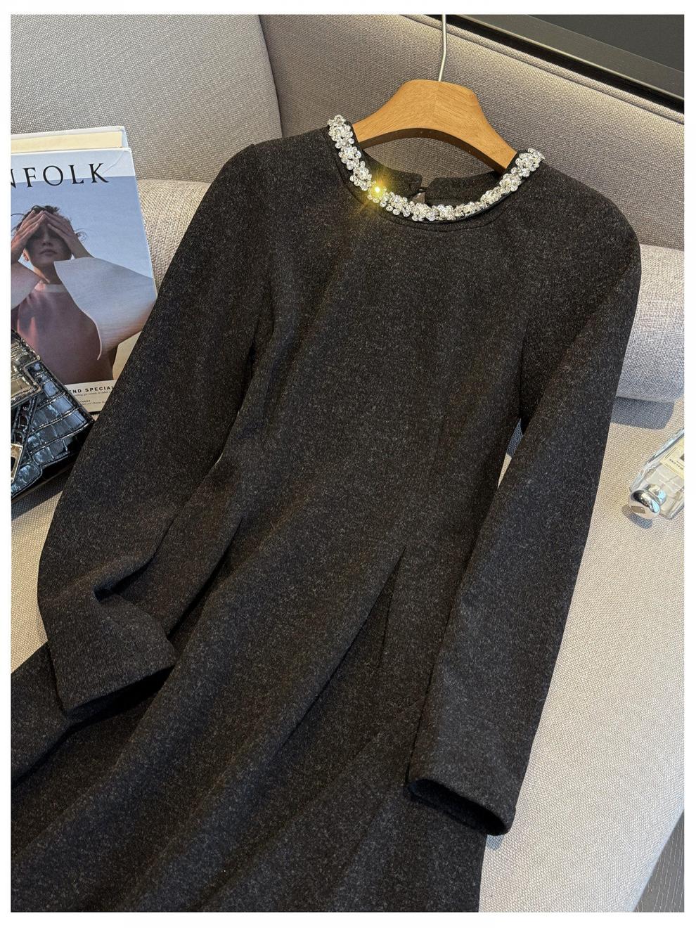 Xiaohongshu gold-embellished diamond red engagement dress for women, autumn and winter long-sleeved petite banquet toast, burgundy M