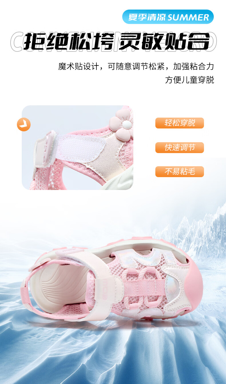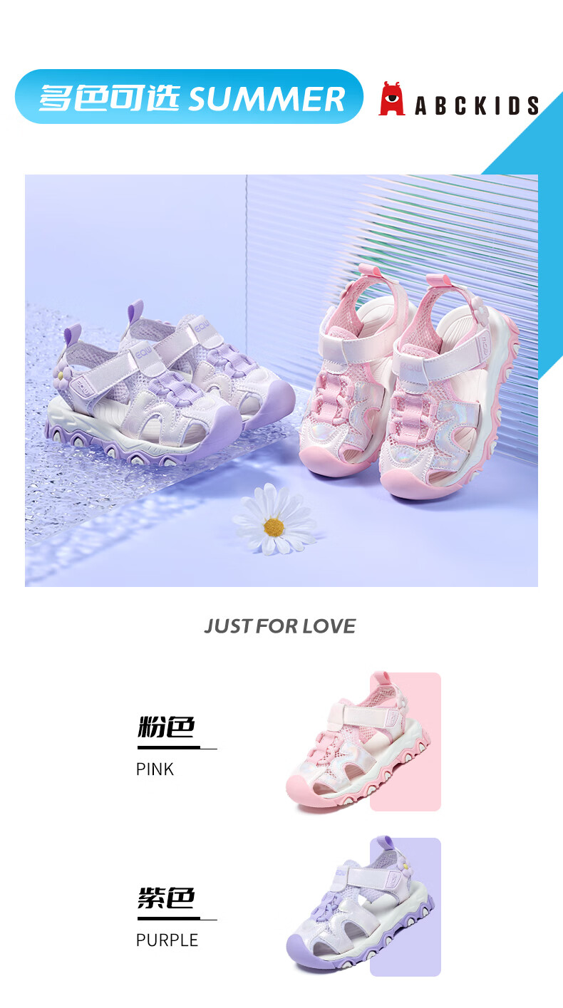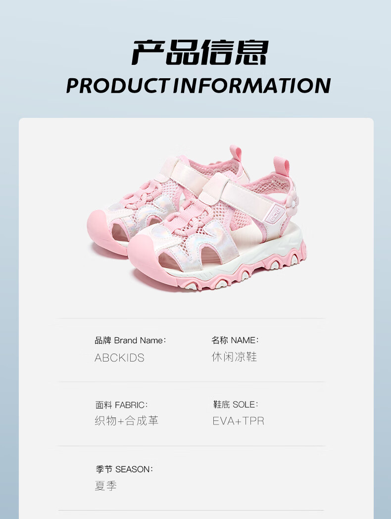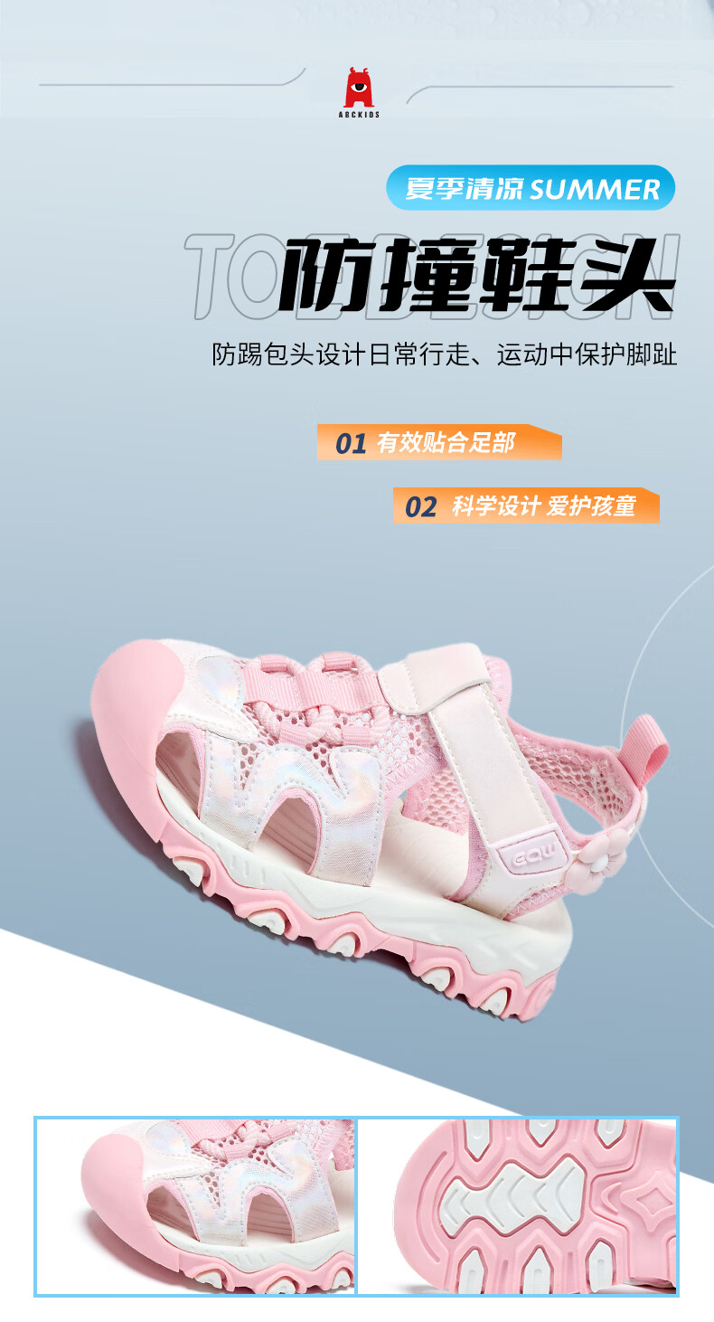 ABC KIDS Children's Shoes Girls Sandals 2026 Summer New Children's Beach Shoes Baotou Non-Slip Girls Outdoor Casual Sandals Pink 28