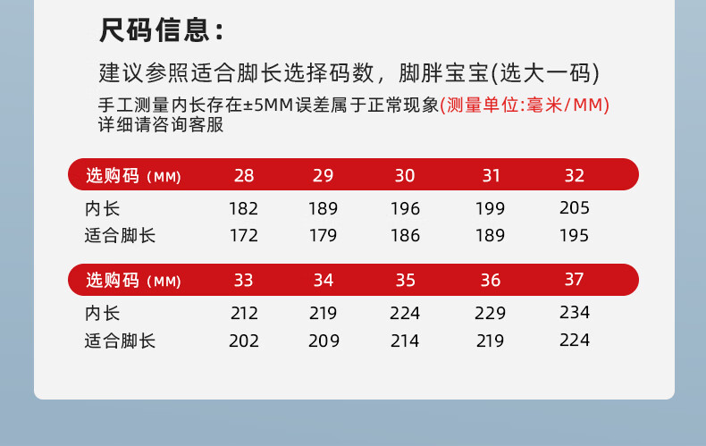 China (cm) 36 - 37 38 - 39 40 - 42 43 - 44 45 - 47