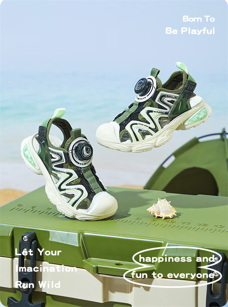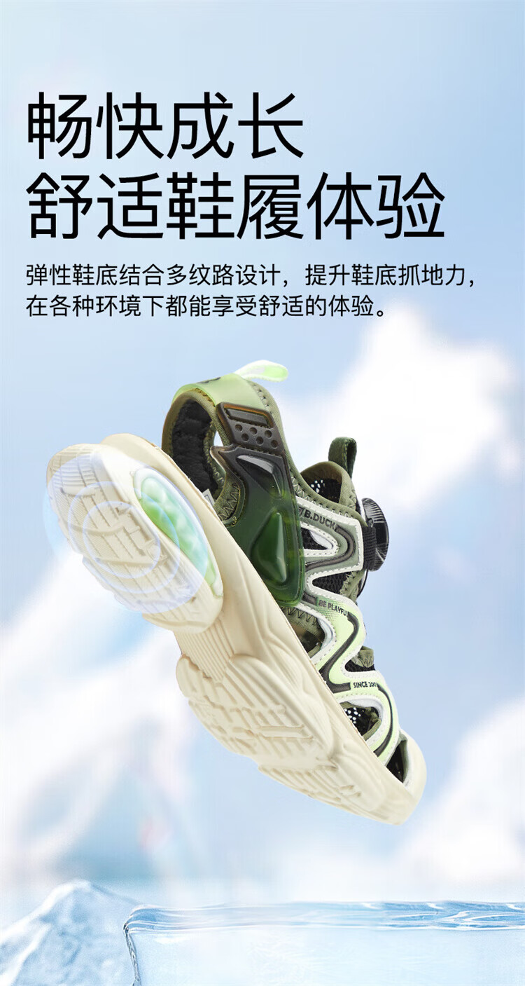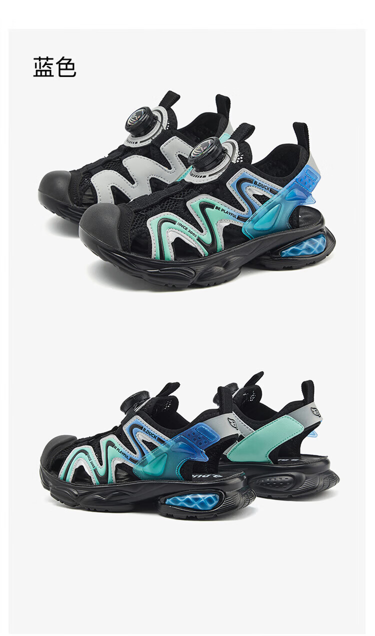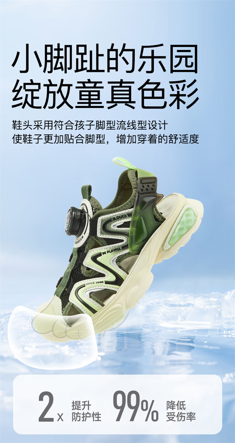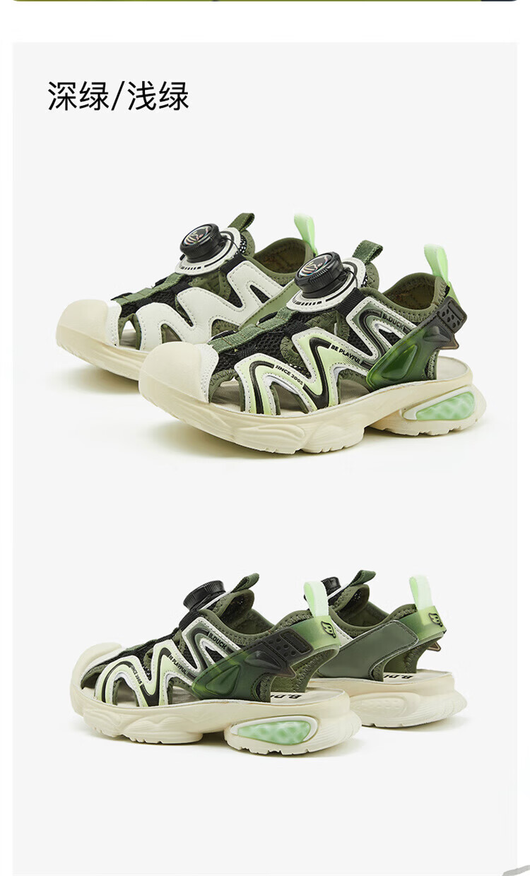 B.Duck Little Yellow Duck Children's Shoes Boys Sandals Baotou Summer New Rotary Buckle Children's Shoes Soft Soled Sports Beach Shoes Dark Green Size 28 Suitable for Feet Length 17.0-17.7cm