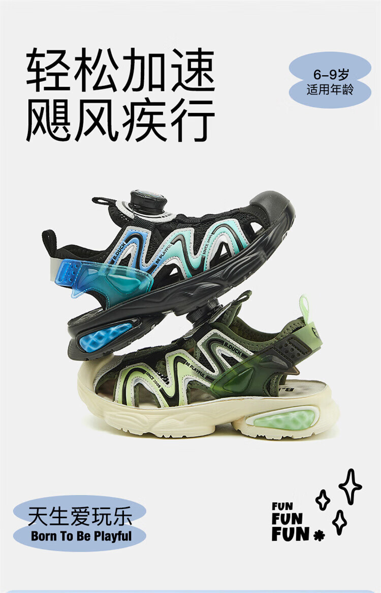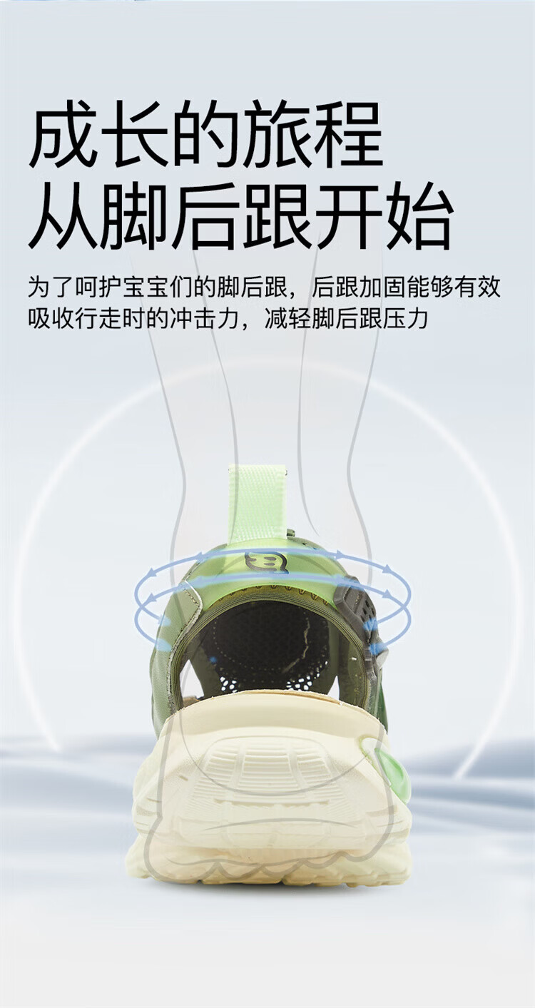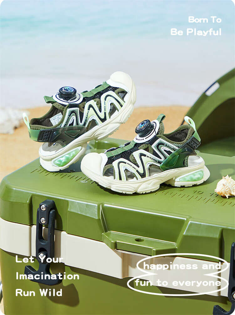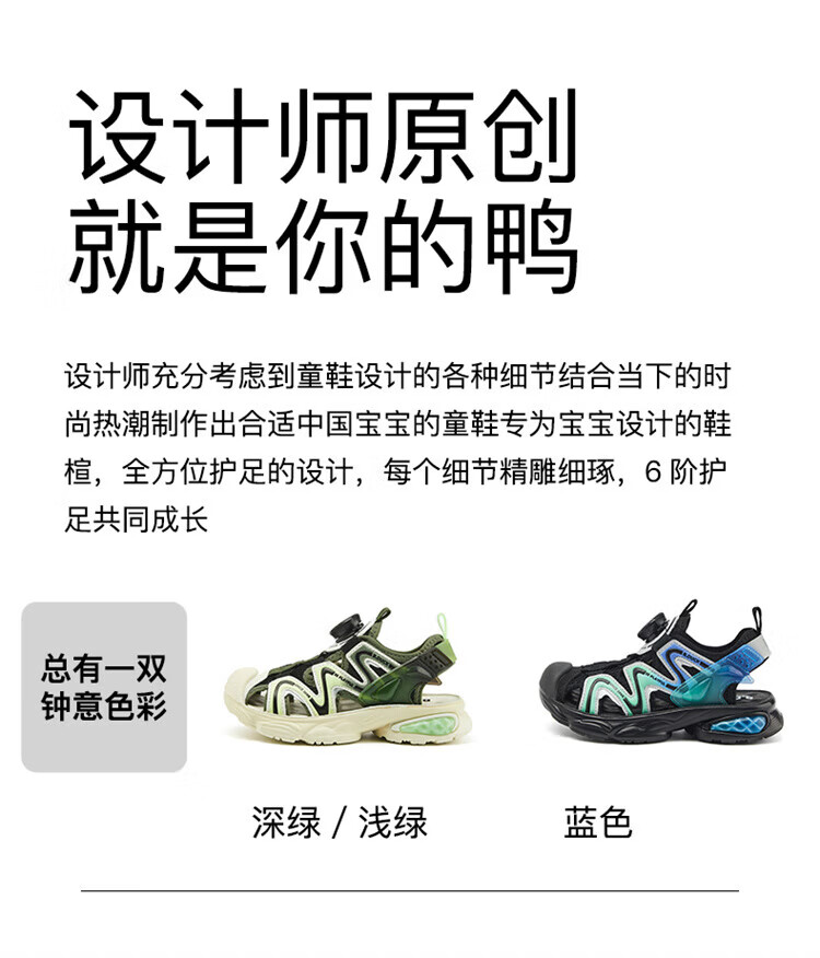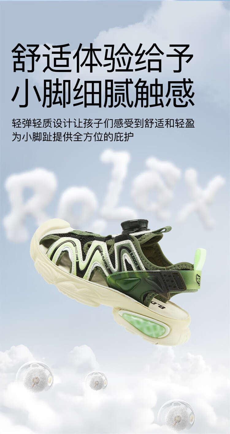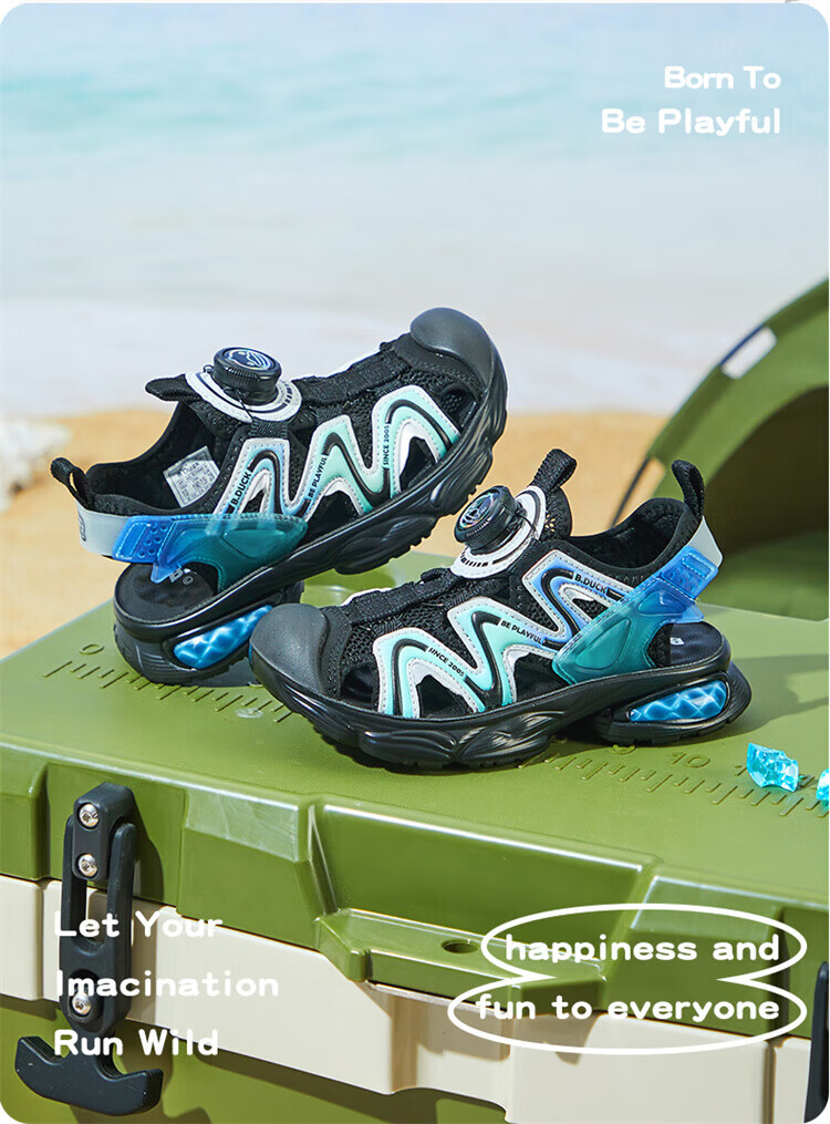 B.Duck Little Yellow Duck Children's Shoes Boys Sandals Baotou Summer New Rotary Buckle Children's Shoes Soft Soled Sports Beach Shoes Dark Green Size 28 Suitable for Feet Length 17.0-17.7cm