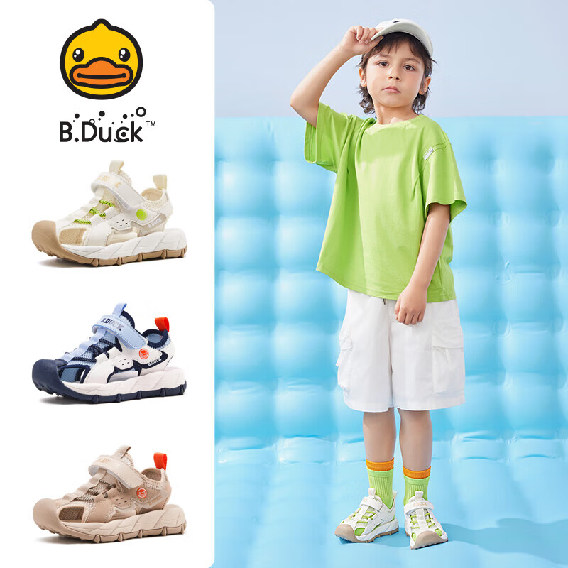 B.Duck Little Yellow Duck Children's Shoes Children's Shoes Boys Sandals Medium and Large Children 2025 Summer New Girls Casual Beach Shoes Beige Size 27 Suitable for Feet Length 16.4-17.1cm