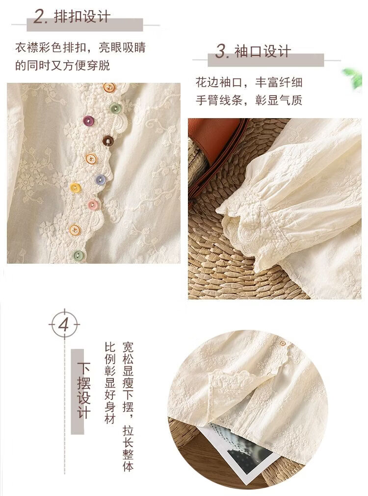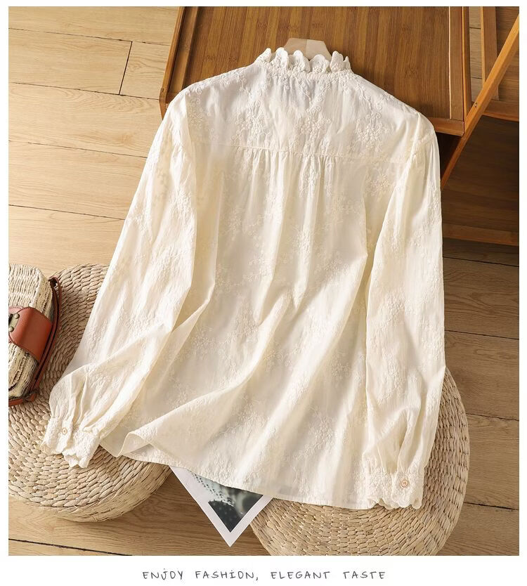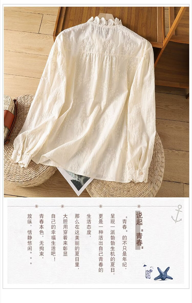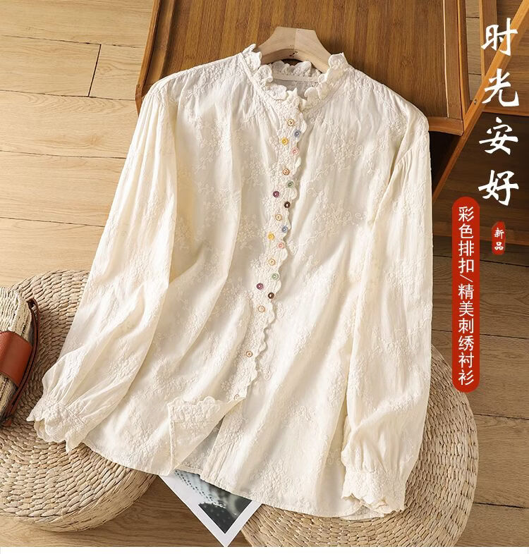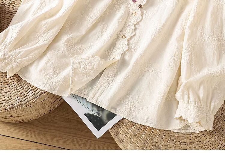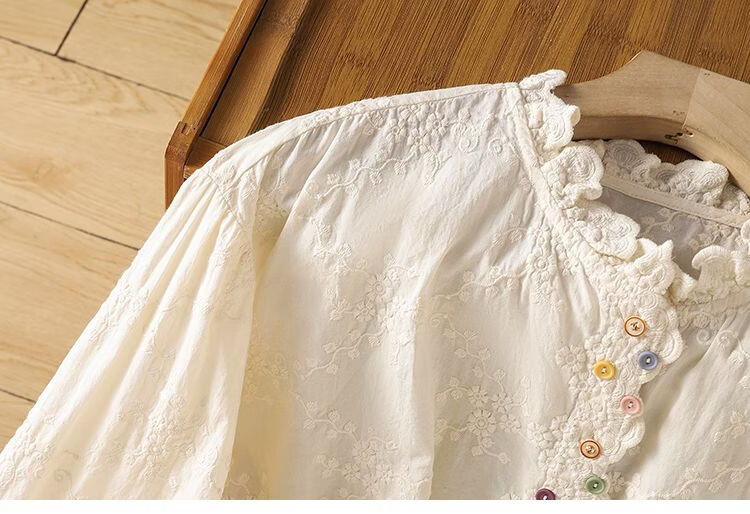 Woodpecker French retro lace collar embroidered shirt for women 2026 Chunsen style literary style colorful button bottoming shirt top apricot S 75-95Jin Jin equals 0.5 kg