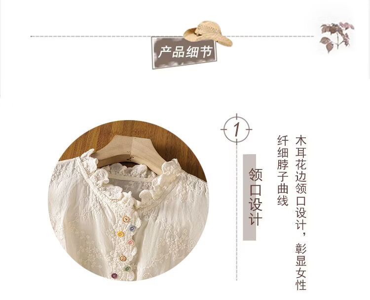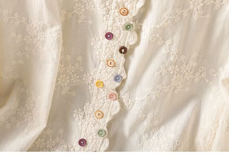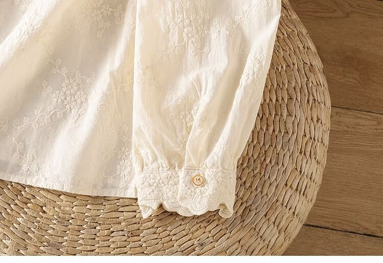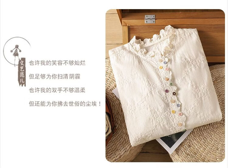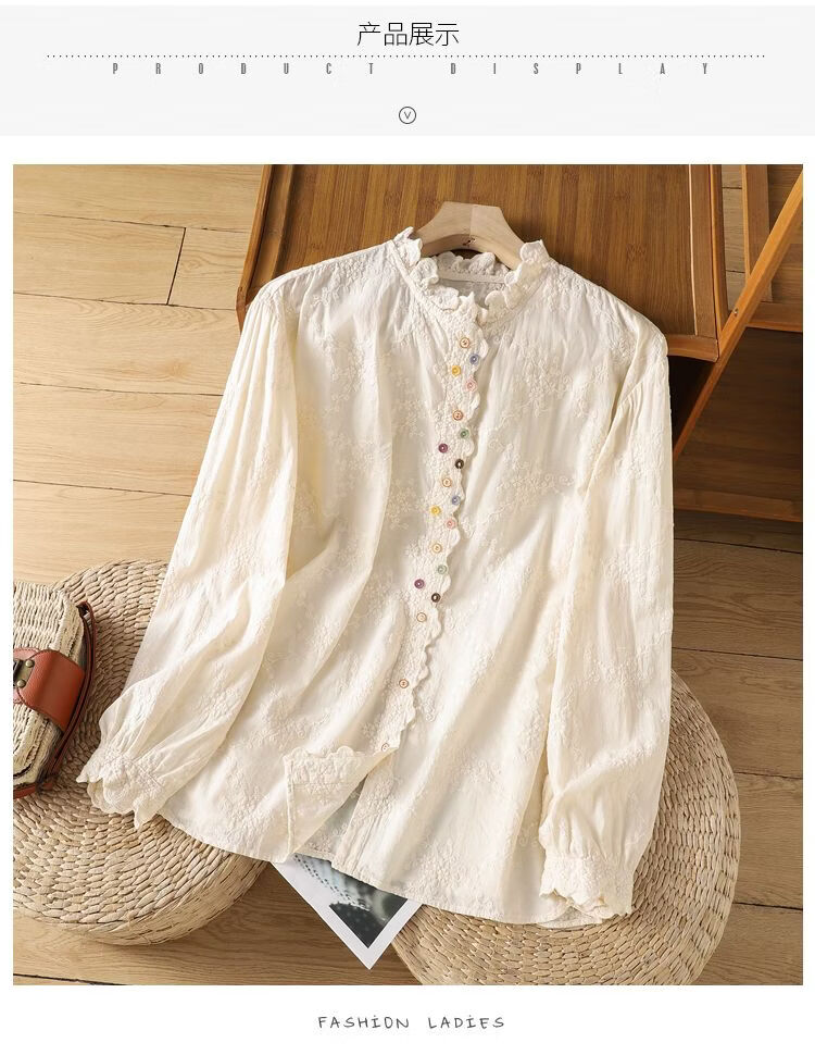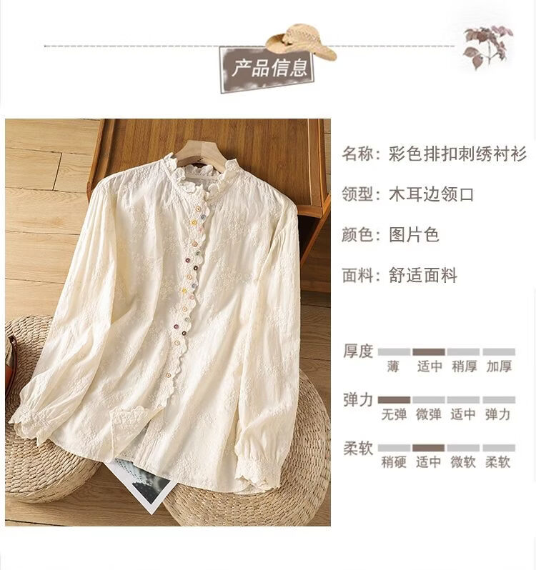 Woodpecker French retro lace collar embroidered shirt for women 2026 Chunsen style literary style colorful button bottoming shirt top apricot S 75-95Jin Jin equals 0.5 kg