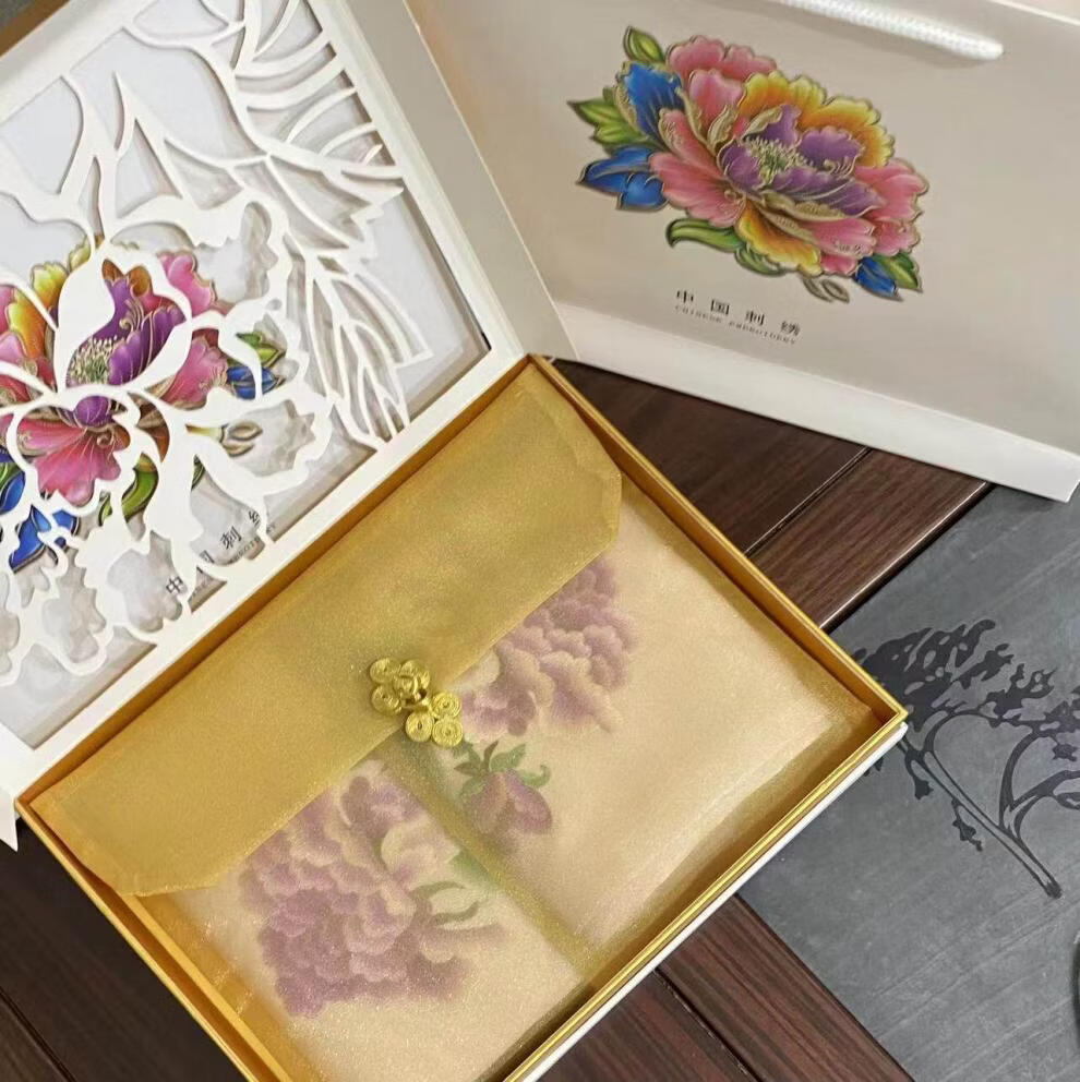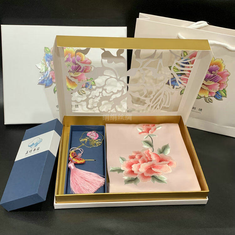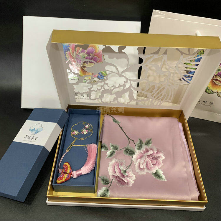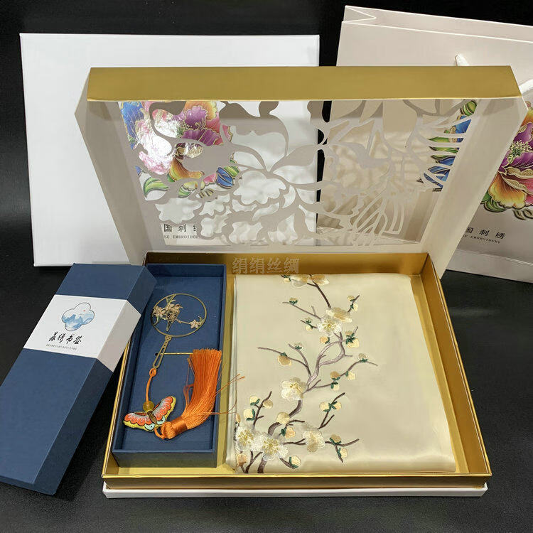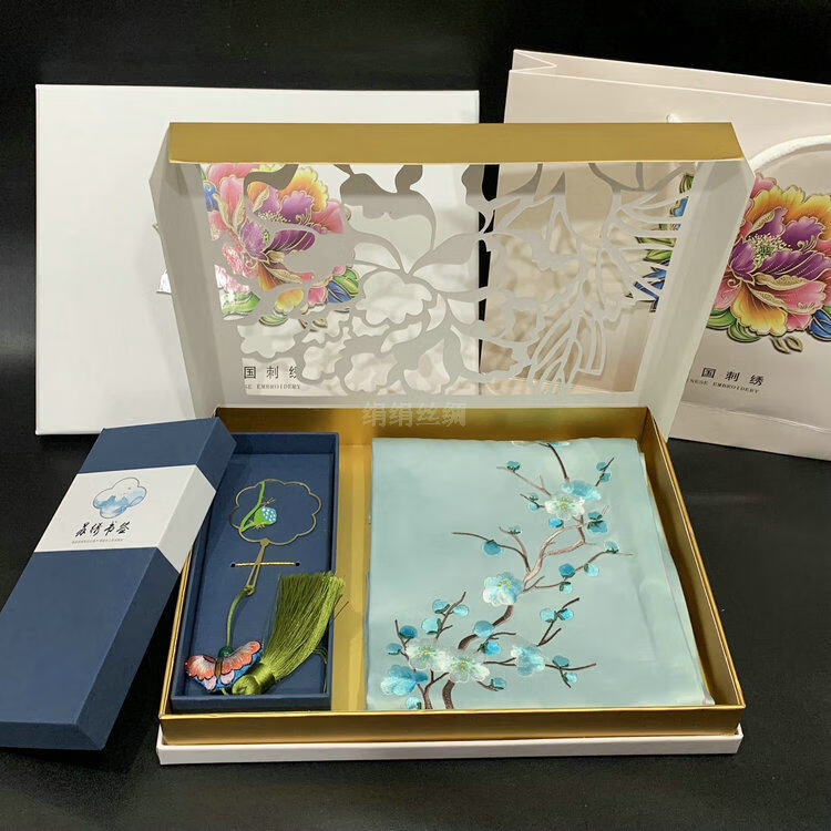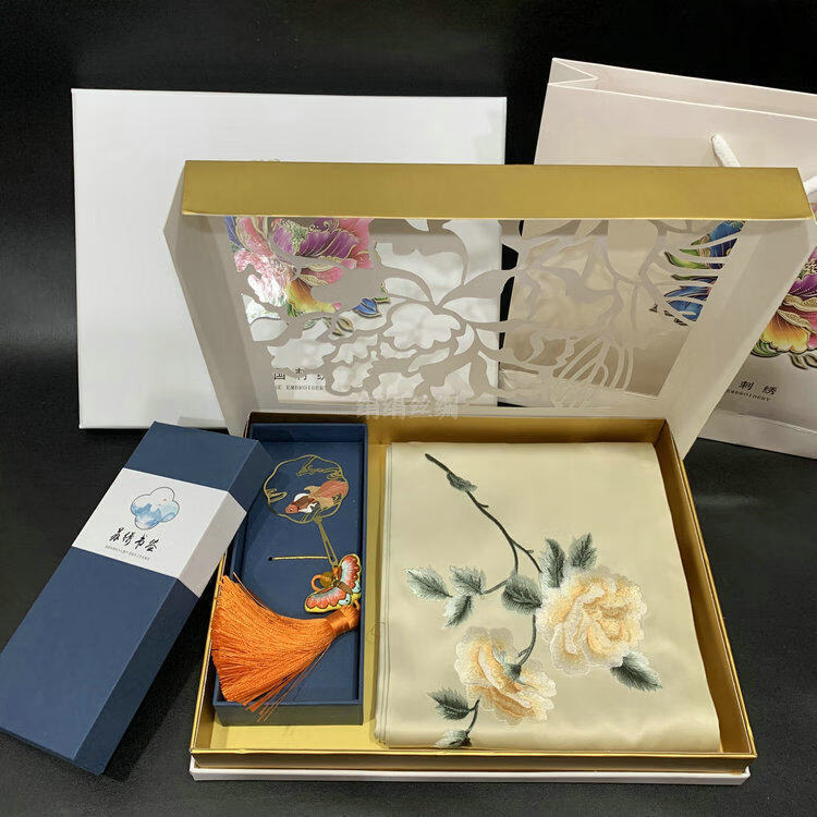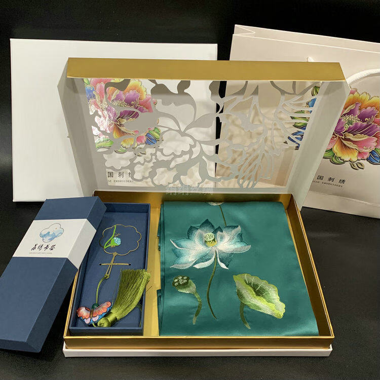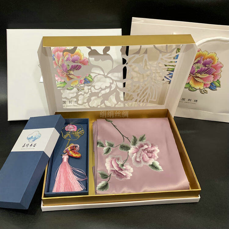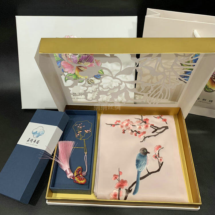 So cool Suzhou embroidered silk scarf Suzhou embroidered mulberry silk scarf embroidered brass bookmark creative gift box gift set No. 4