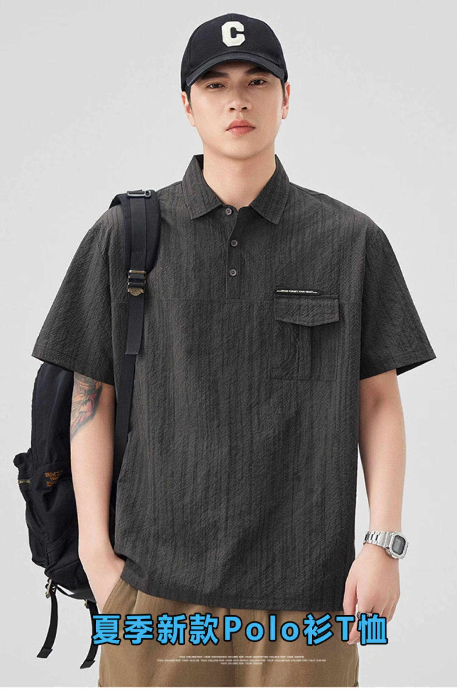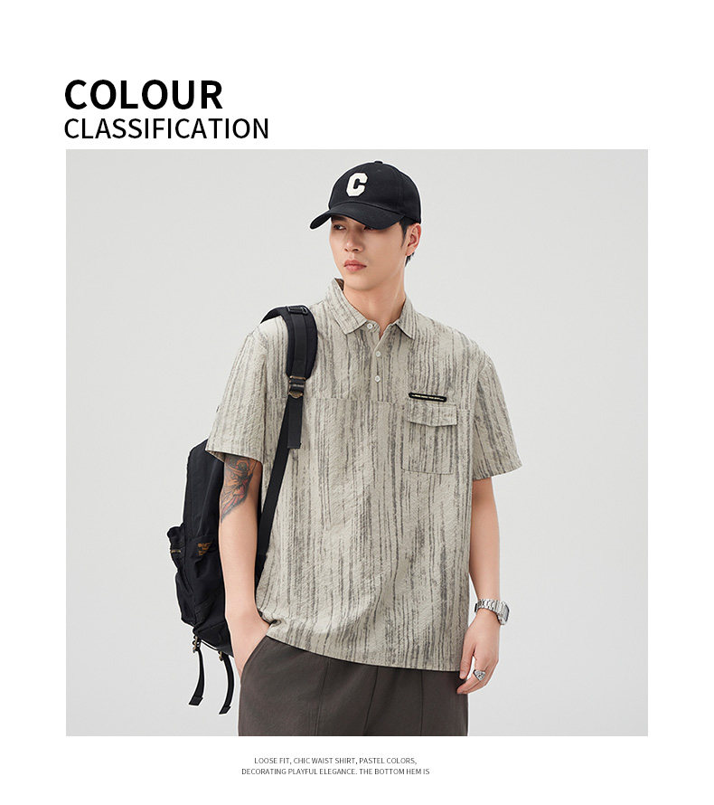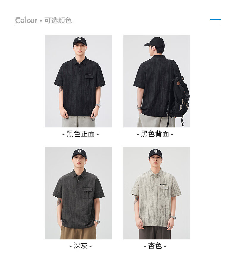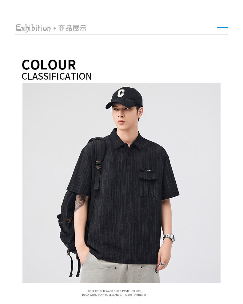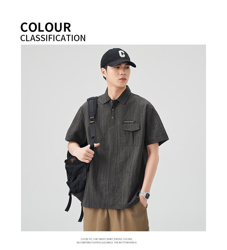 Baleno (Baleno) S&K series trendy brand short-sleeved polo shirt boys short-sleeved 2026 summer new arrival lapel trendy striped dyed T-shirt dark gray 3XL