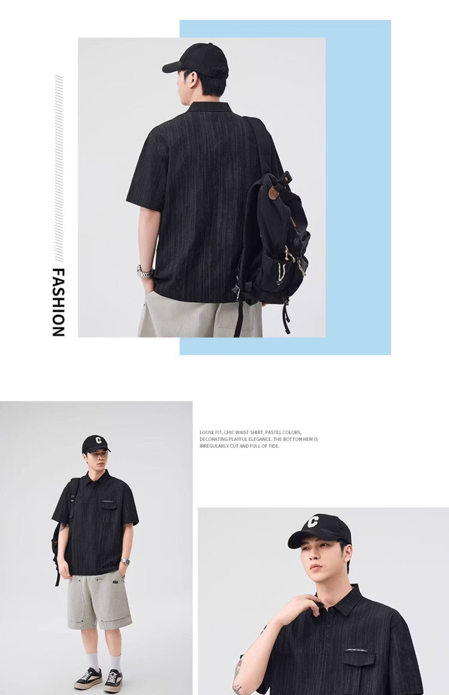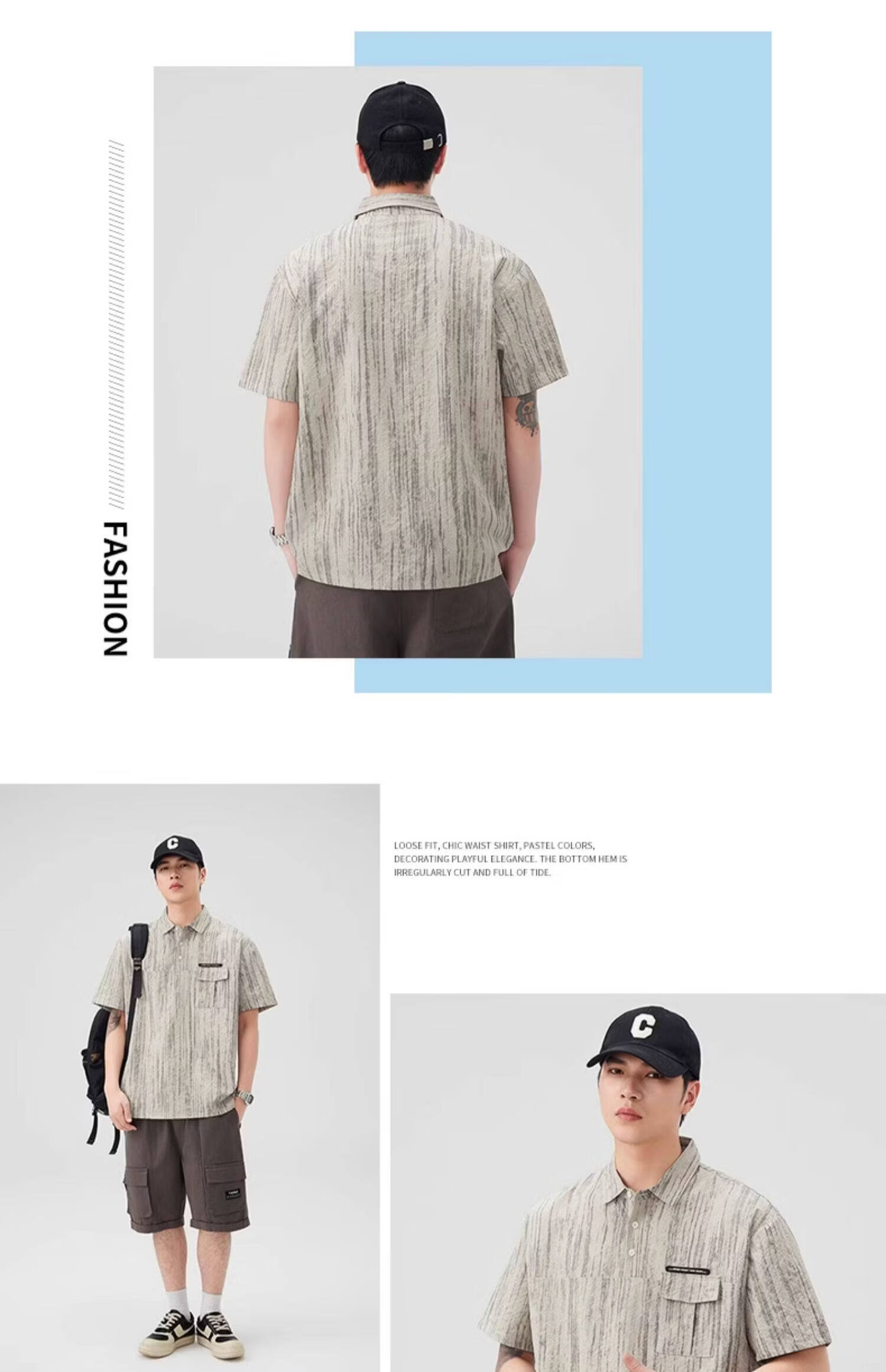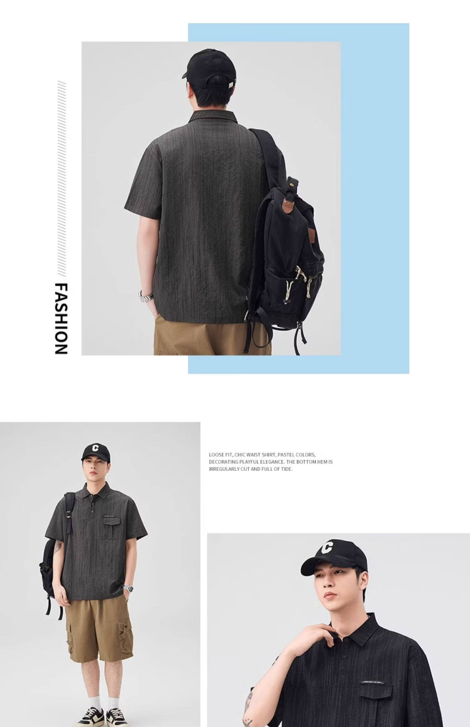 Baleno (Baleno) S&K series trendy brand short-sleeved polo shirt boys short-sleeved 2026 summer new arrival lapel trendy striped dyed T-shirt dark gray 3XL