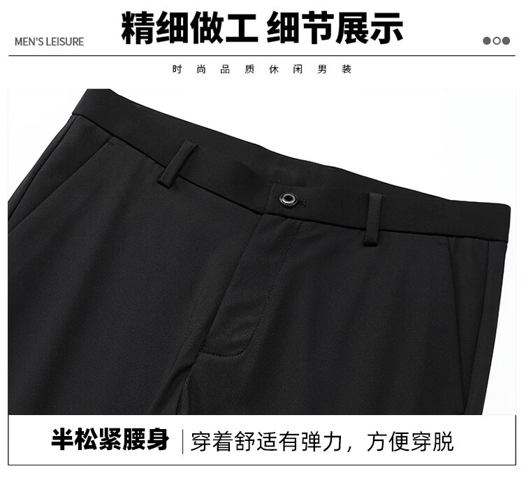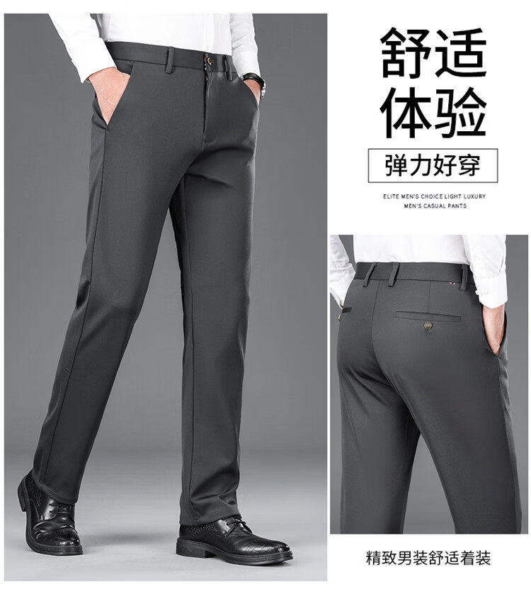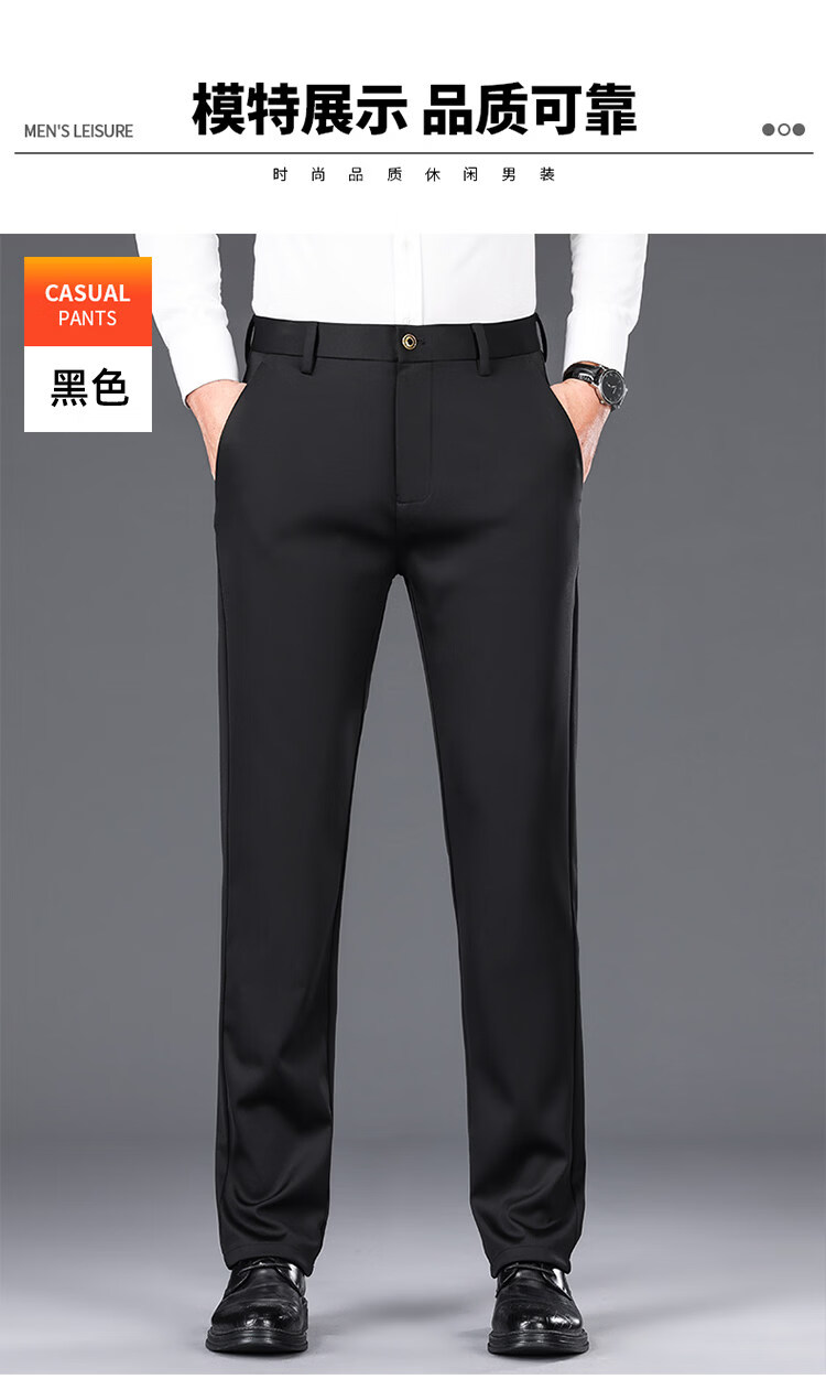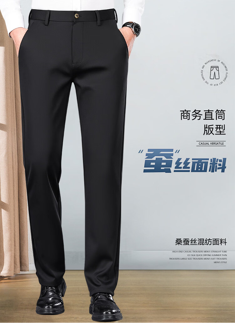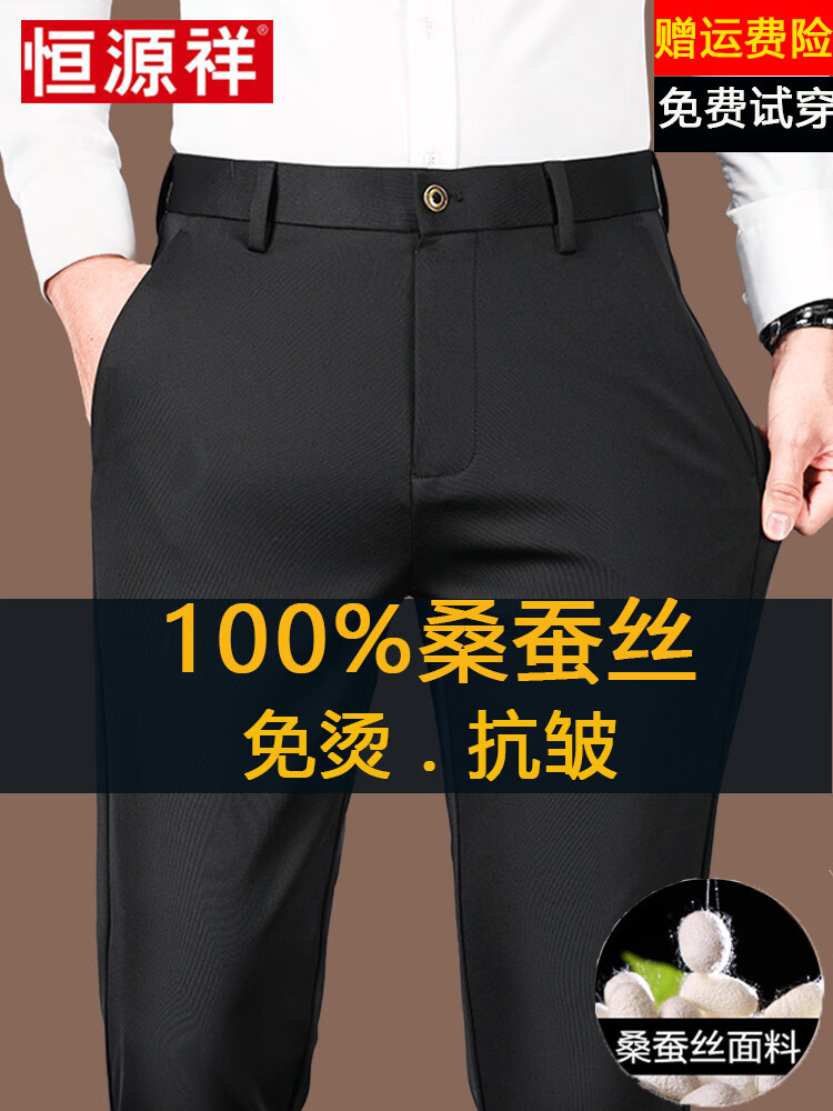 Hengyuanxiang Mulberry Silk Casual Pants Men's 2026 Summer Thin Business No-iron Suit Pants Loose Straight Elastic Trousers Black Thick Section 30
