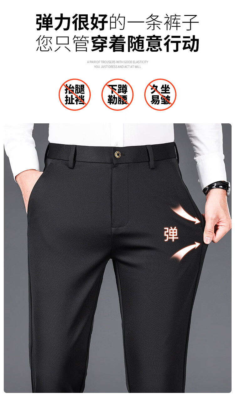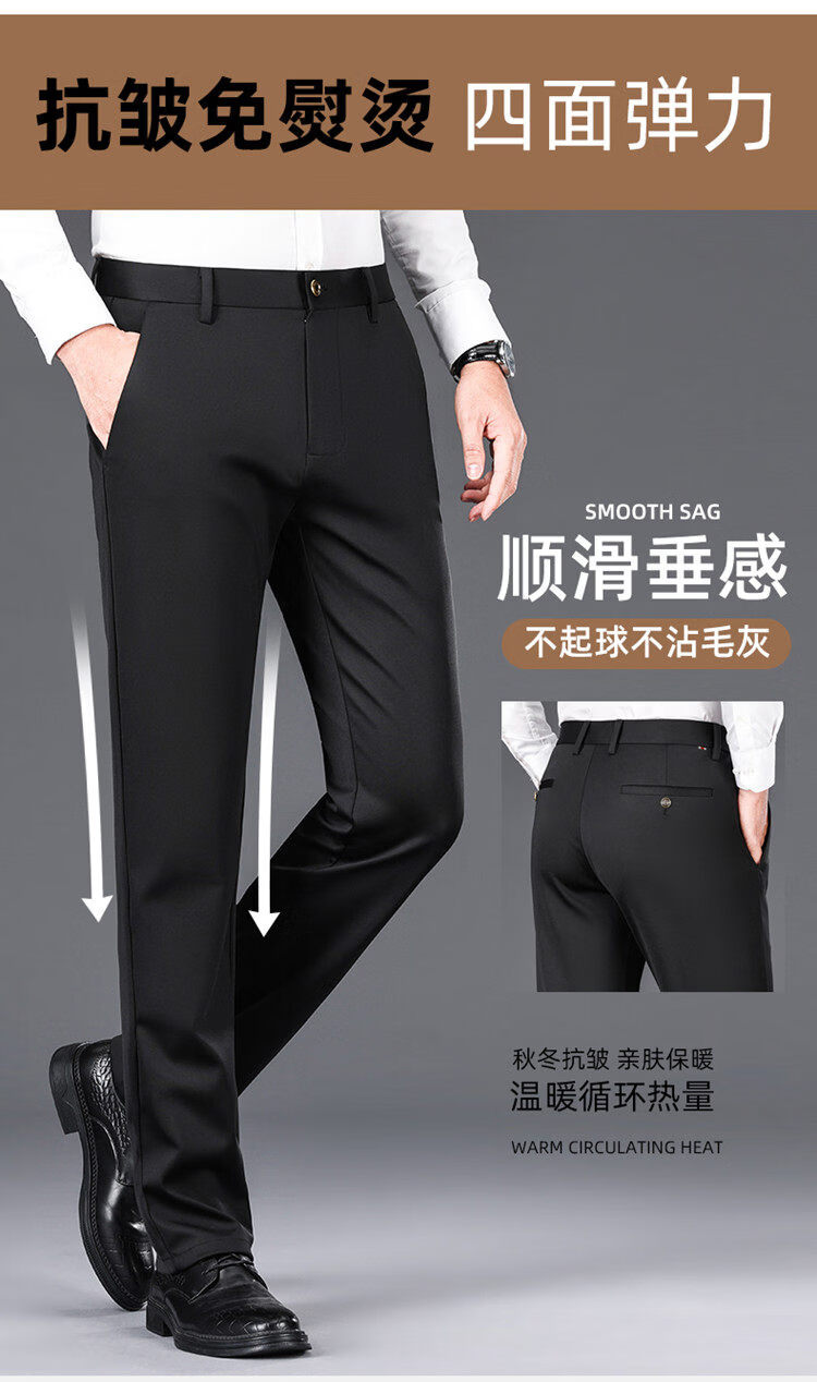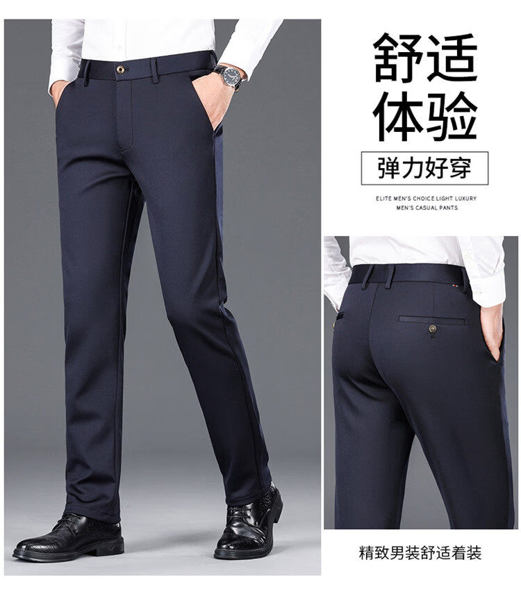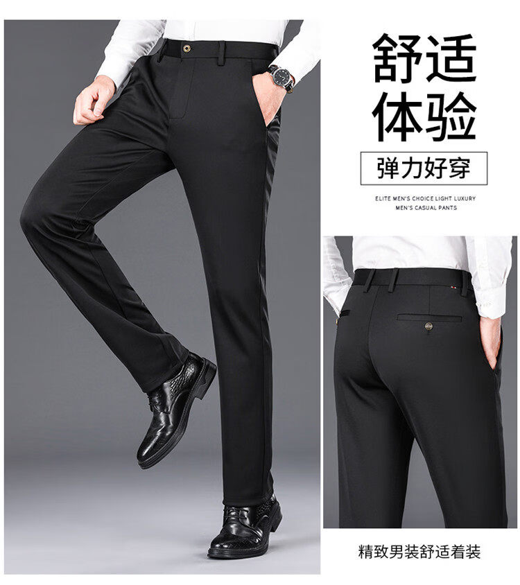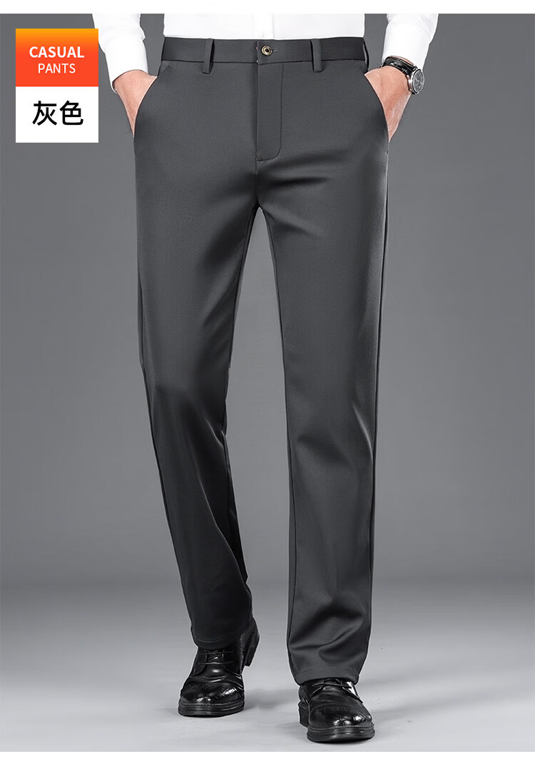 Hengyuanxiang Mulberry Silk Casual Pants Men's 2026 Summer Thin Business No-iron Suit Pants Loose Straight Elastic Trousers Black Thick Section 30