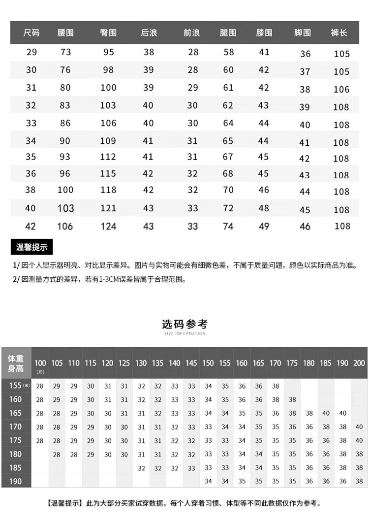 Outseam (cm) 99 cm 101.5 cm 104 cm 106.5 cm 109 cm