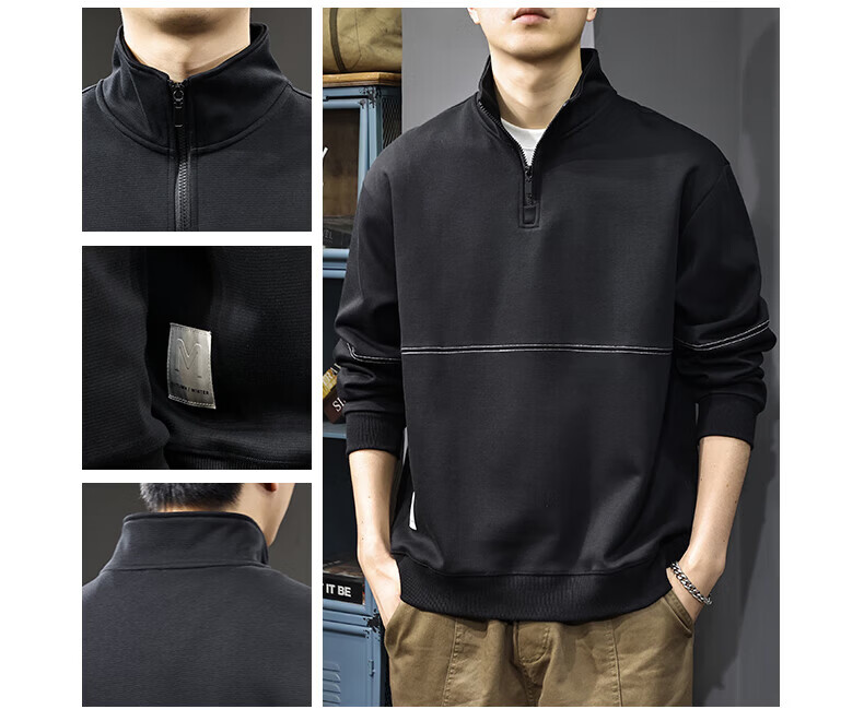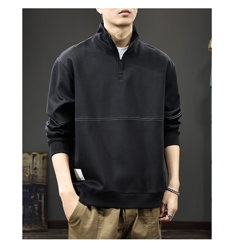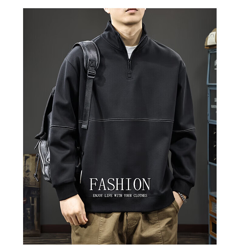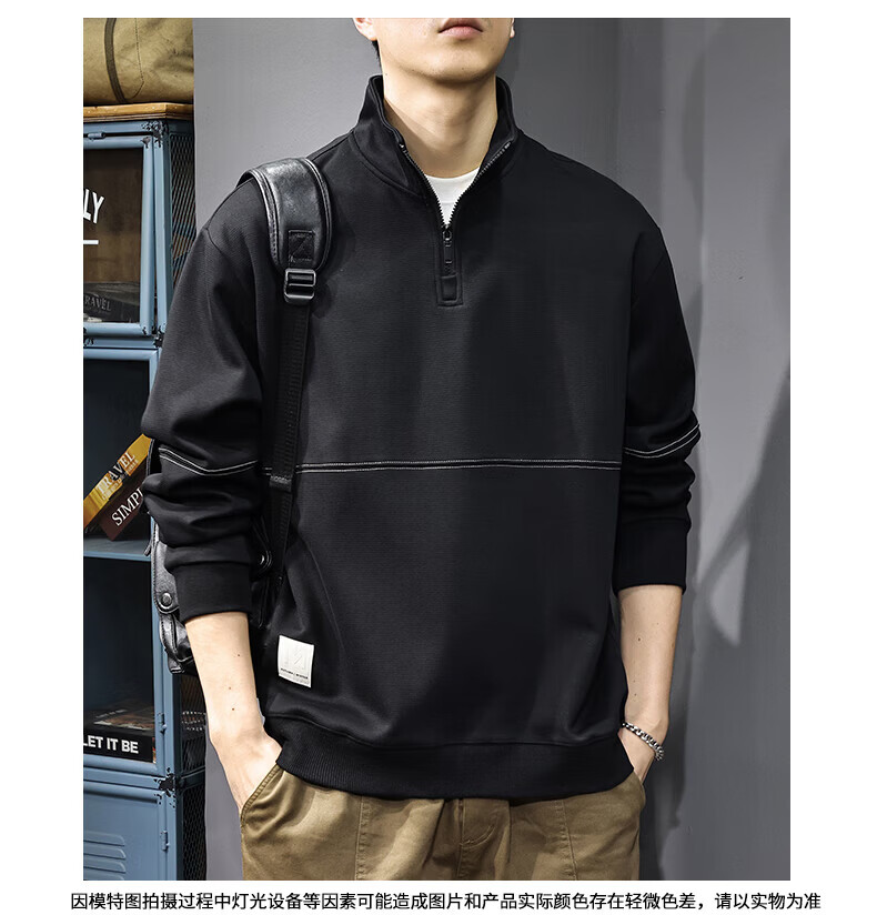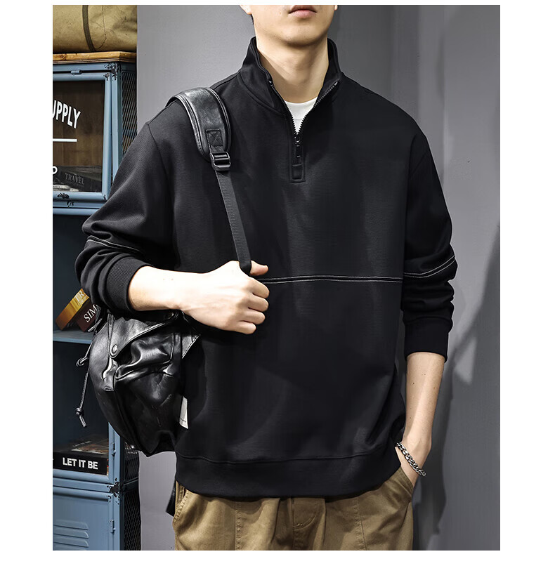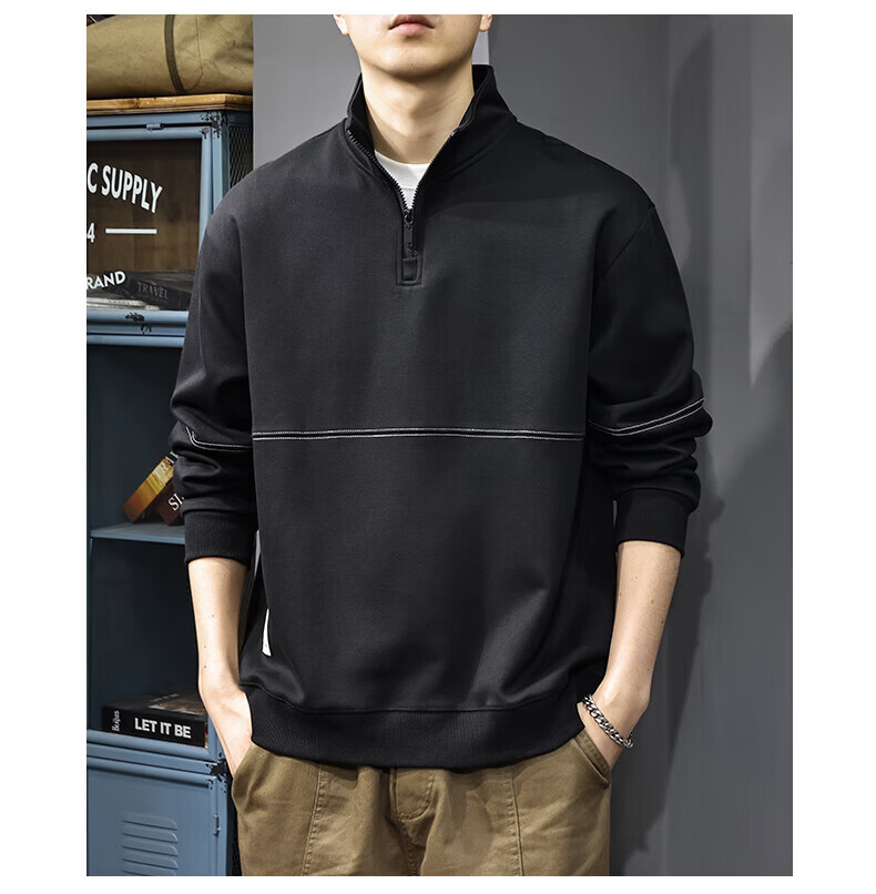 GXG.PR2026 Autumn American half-zip stand-up collar sweatshirt men's design stitching retro heavyweight loose long-sleeved POLO shirt black M suitable weight 100-120Jin Jin equals 0.5 kg