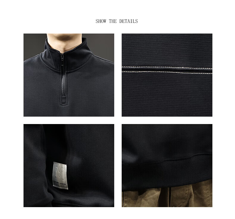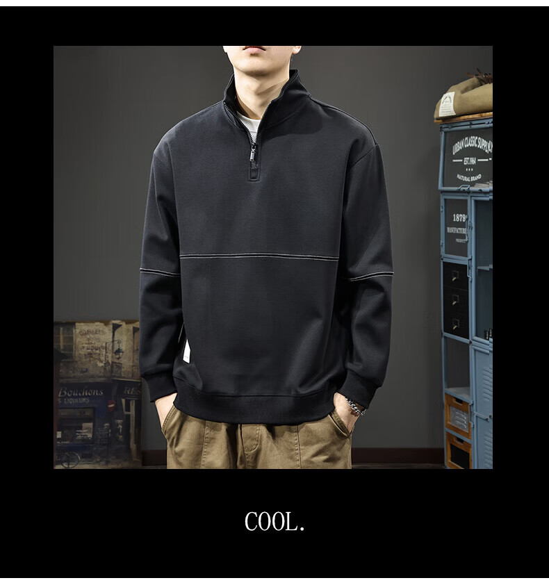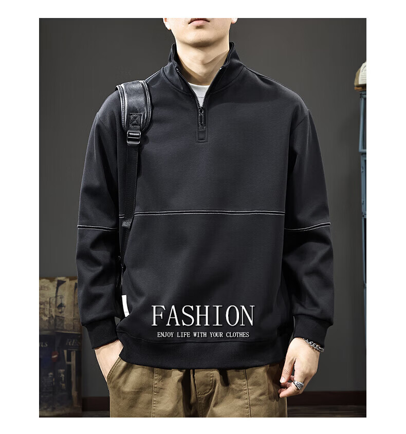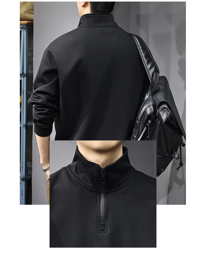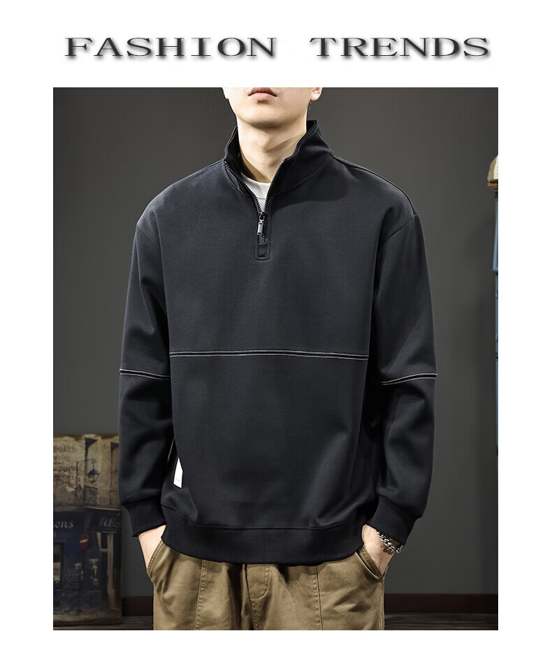 GXG.PR2026 Autumn American half-zip stand-up collar sweatshirt men's design stitching retro heavyweight loose long-sleeved POLO shirt black M suitable weight 100-120Jin Jin equals 0.5 kg