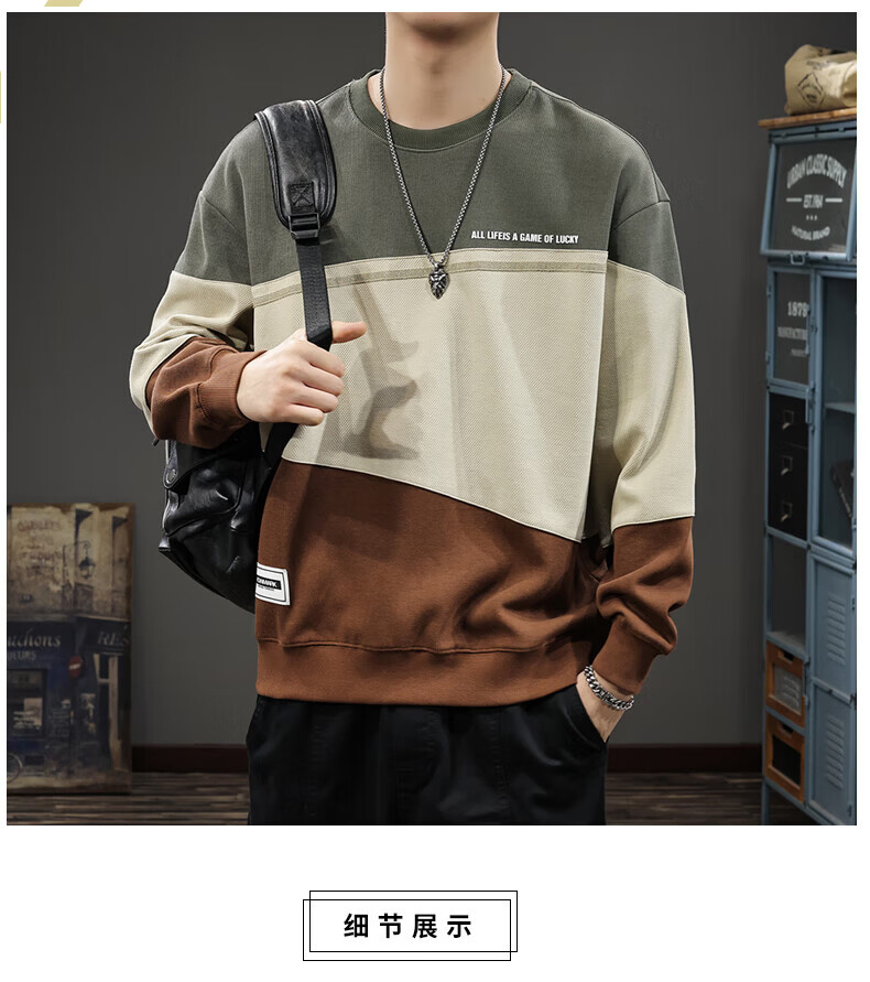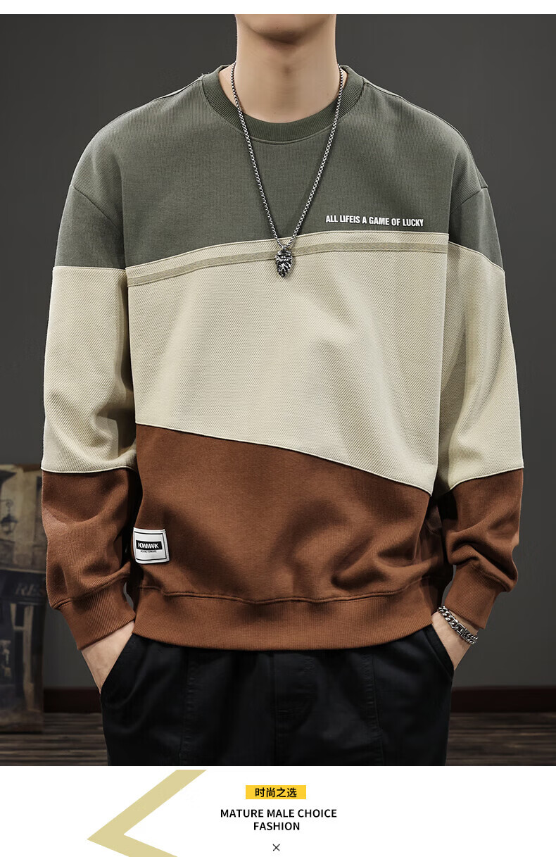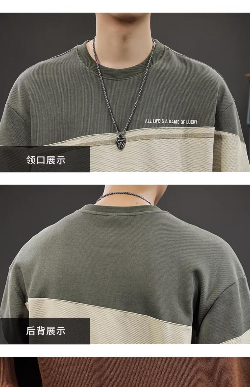 GXG.PR Diseño de costura con sentido, color contrastante, sudadera para hombre, otoño e invierno, cuello redondo suelto, camisa de manga larga, marca de moda estadounidense, top atractivo, gris, verde, M, peso adecuado 100-120 Jin Jin equivale a 0,5 kg