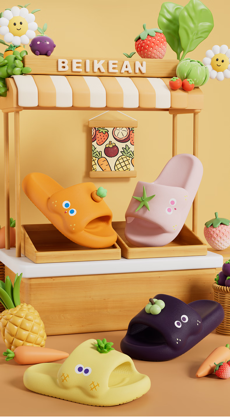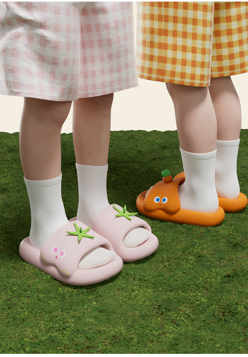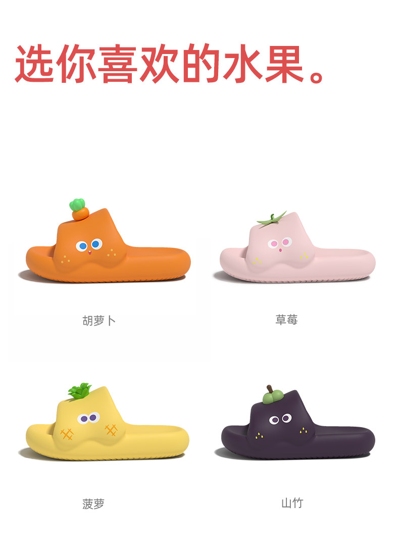 Babycrayon fruit and vegetable party children's slippers for girls and babies 2026 summer new style medium and large children's parent-child eva anti-slip slippers strawberry 24.5 cm inner length suitable for sizes 38-39