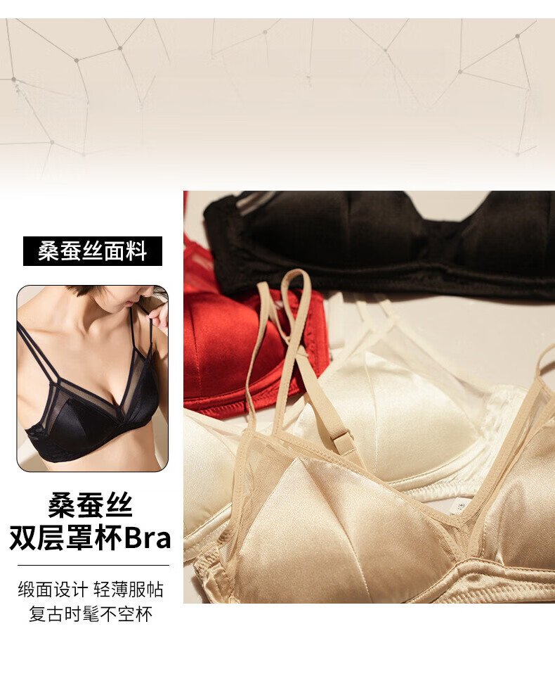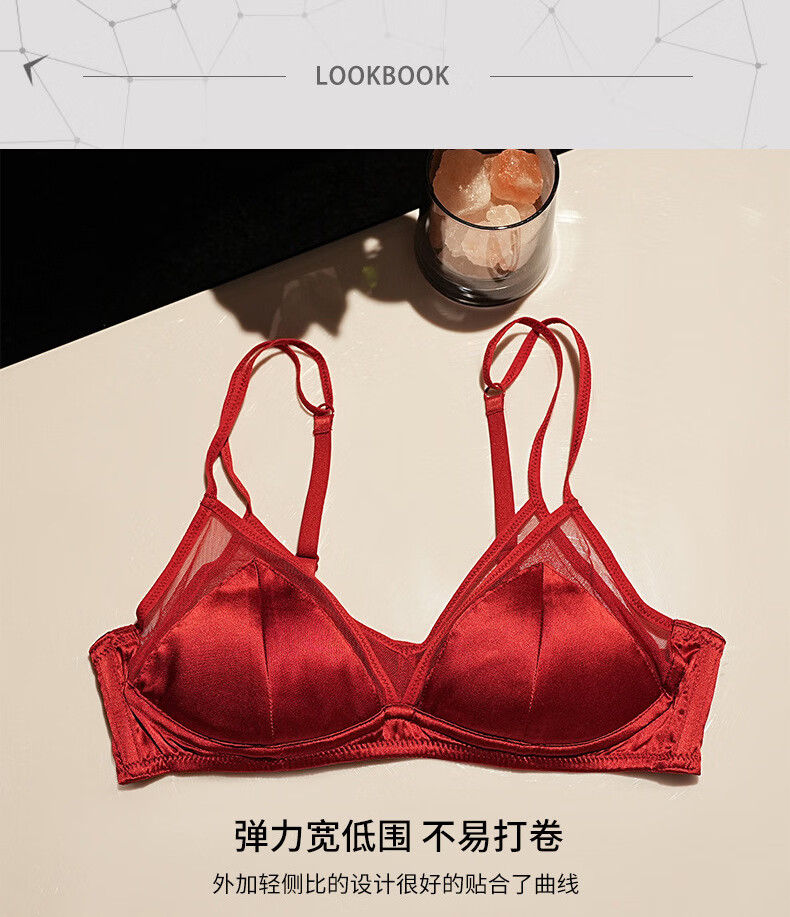 Modal French underwear, thin silk triangle cup, wire-free underwear, large breasts, small zodiac year red bra, jet black bra S