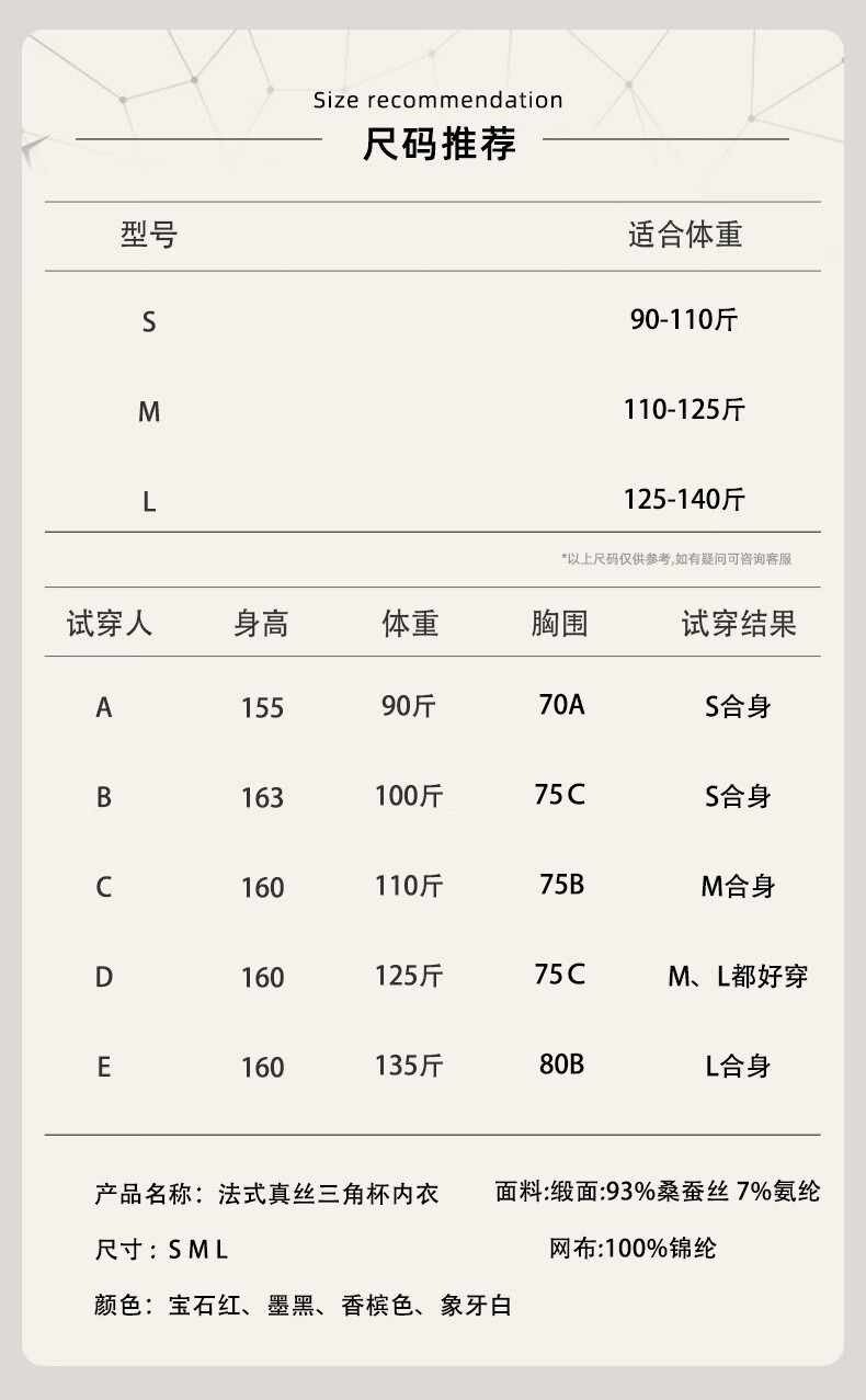 China (cm) 160-165/84-86 165-170 / 88-90 167-172 / 92-96 168-173 / 98-102 170-176 / 106-110