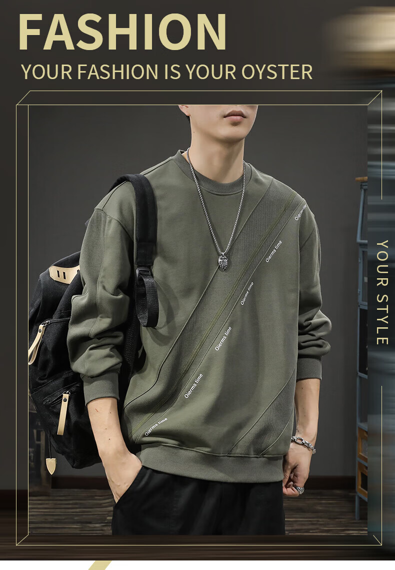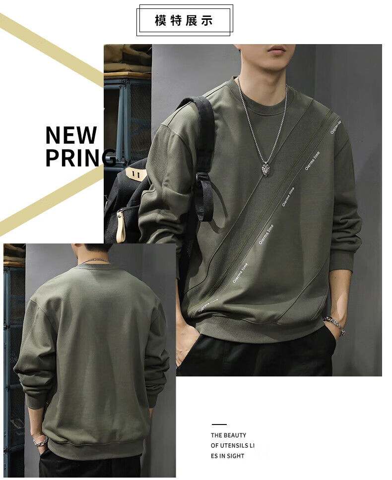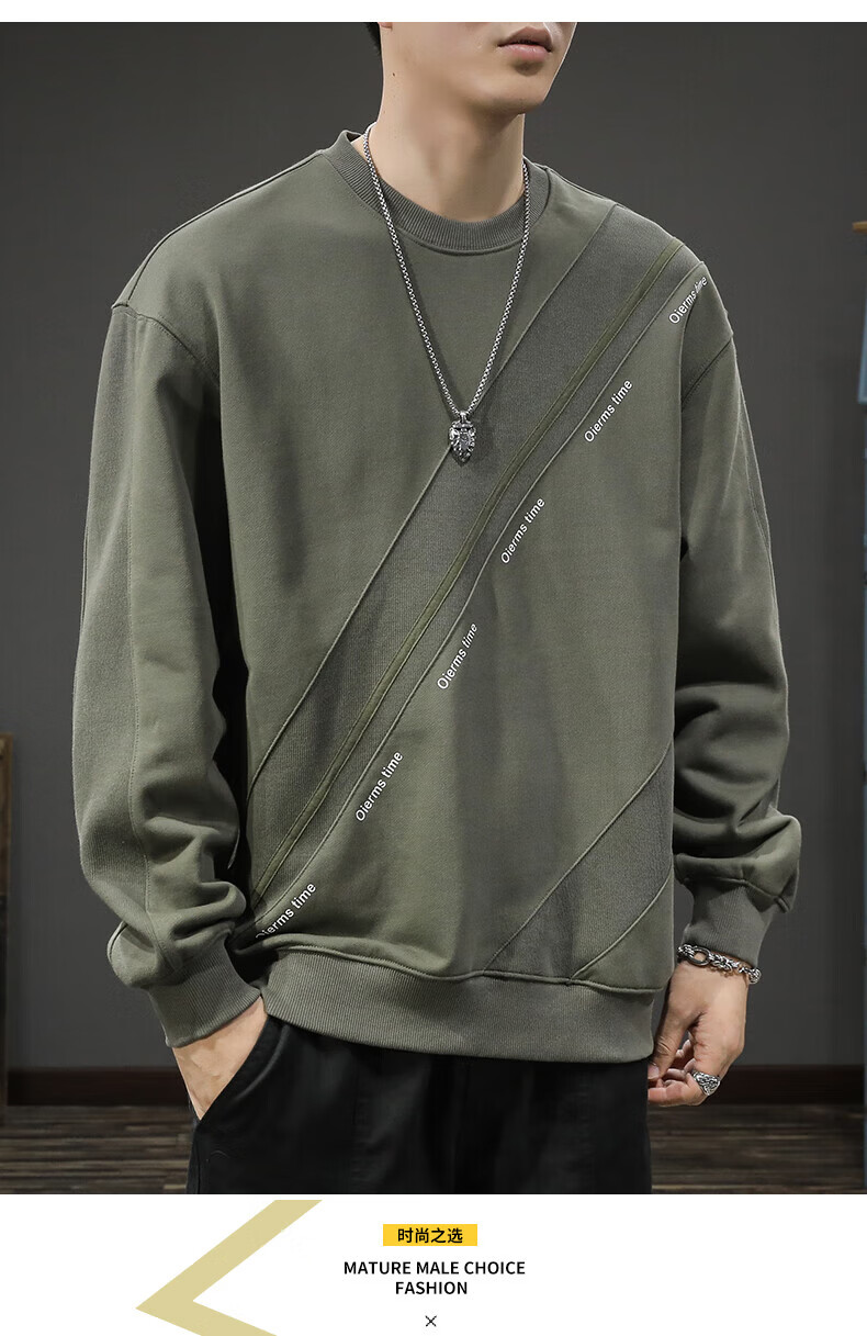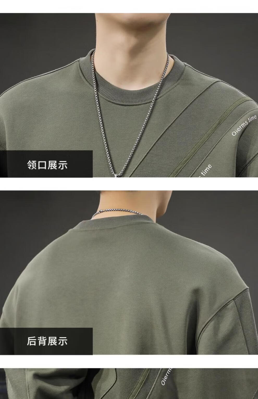 GXG.PR2026 autumn and winter trendy brand design spliced round neck sweatshirt men's American retro heavyweight loose large size long-sleeved top gray green M suitable weight 95-120Jin Jin equals 0.5 kg