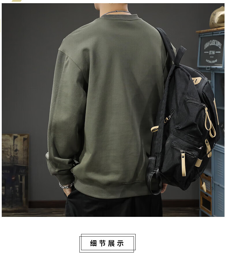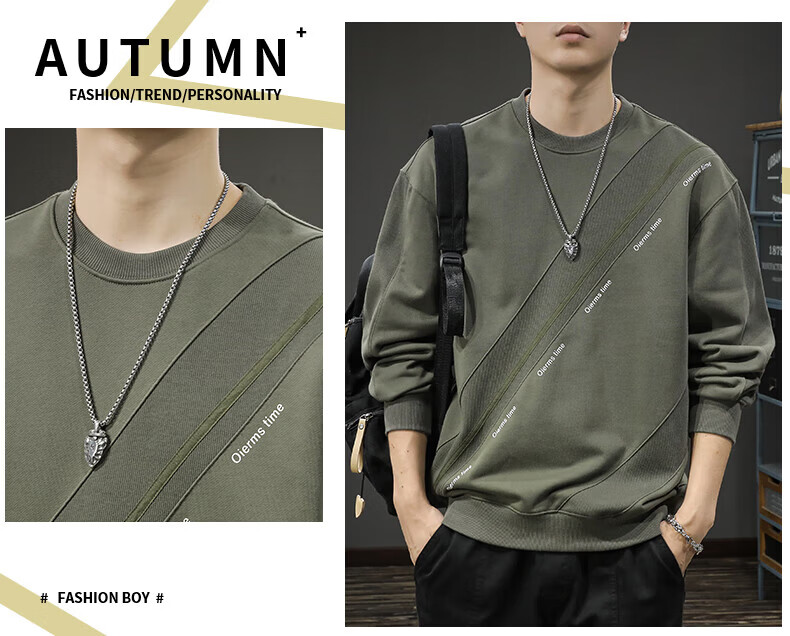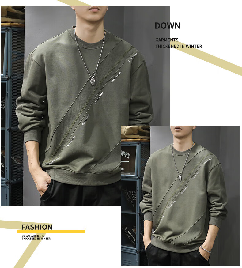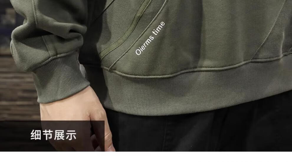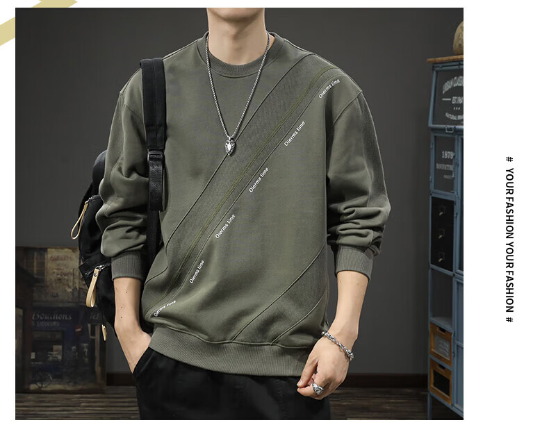 GXG.PR2026 autumn and winter trendy brand design spliced round neck sweatshirt men's American retro heavyweight loose large size long-sleeved top gray green M suitable weight 95-120Jin Jin equals 0.5 kg