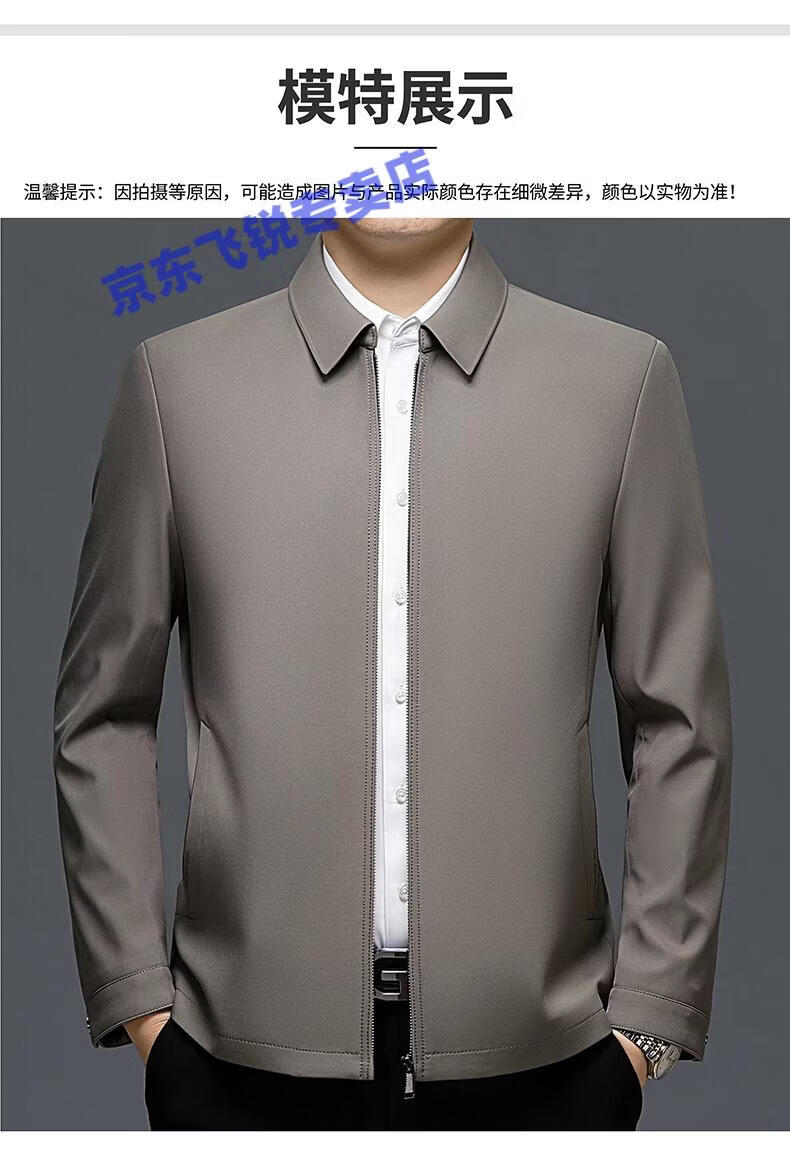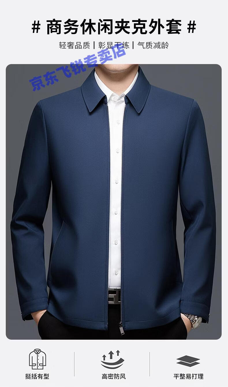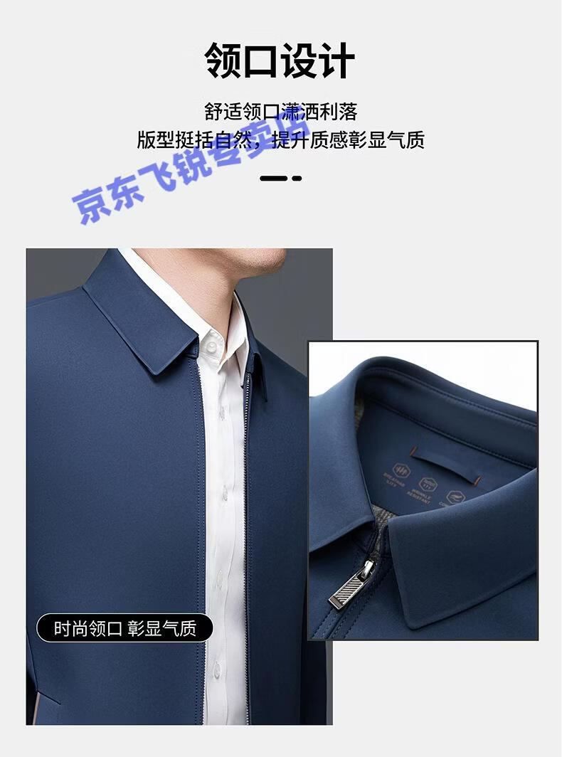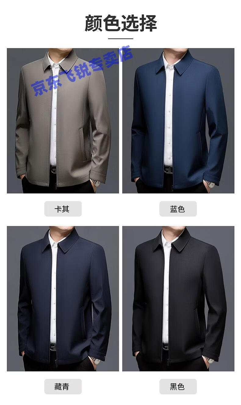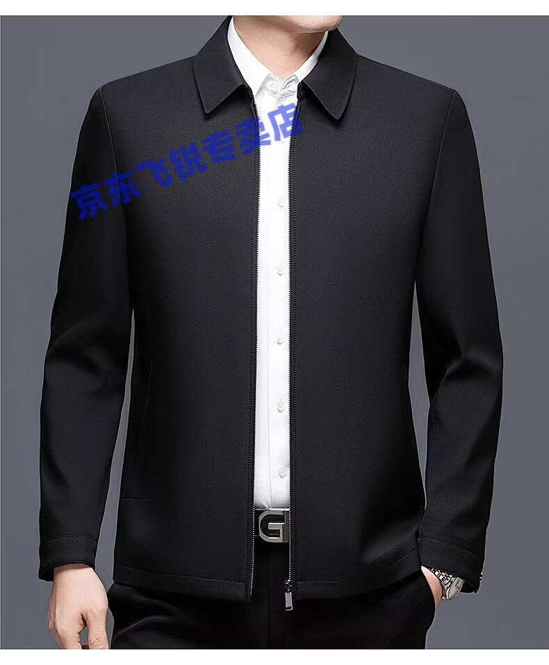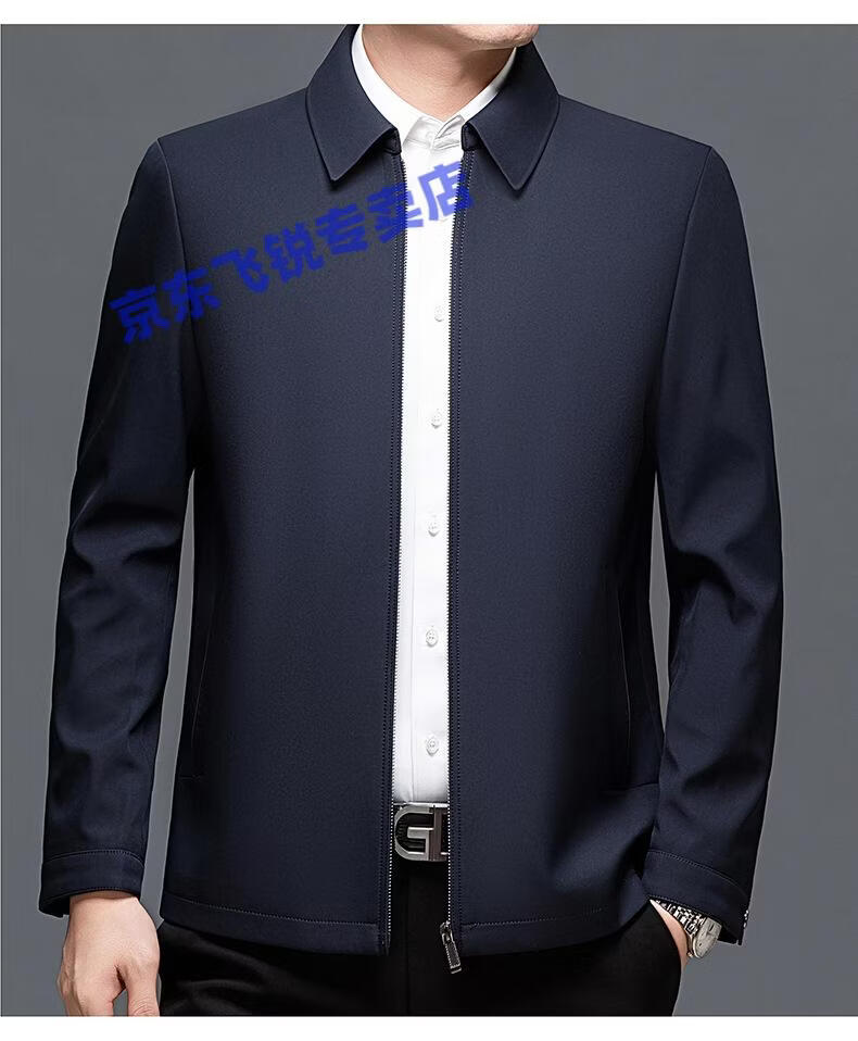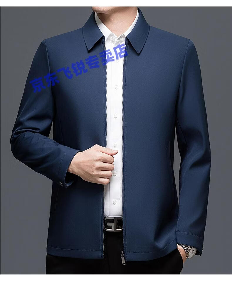 ROMON 100% mulberry silk jacket men's spring and autumn thin dad wear lapel solid color jacket business casual non-iron jacket 5760 blue L 120-135Jin Jin equals 0.5 kg