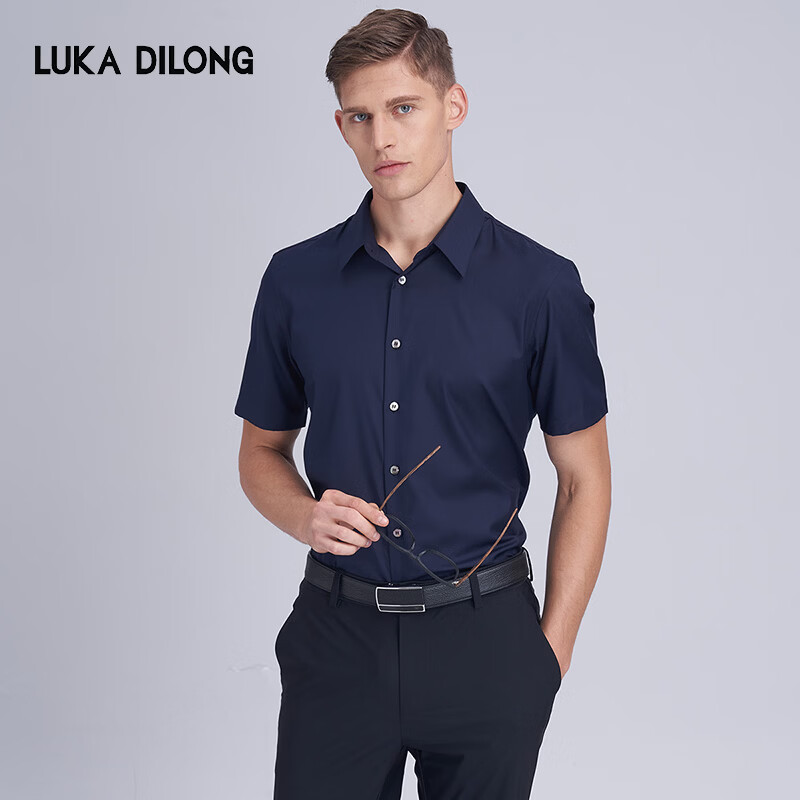 Luca Dillon Light Luxury 6A Grade Mulberry Silk Spring and Summer New Men's Cool High Elastic Smart Constant Temperature Short Sleeve Shirt Royal Blue S (46)