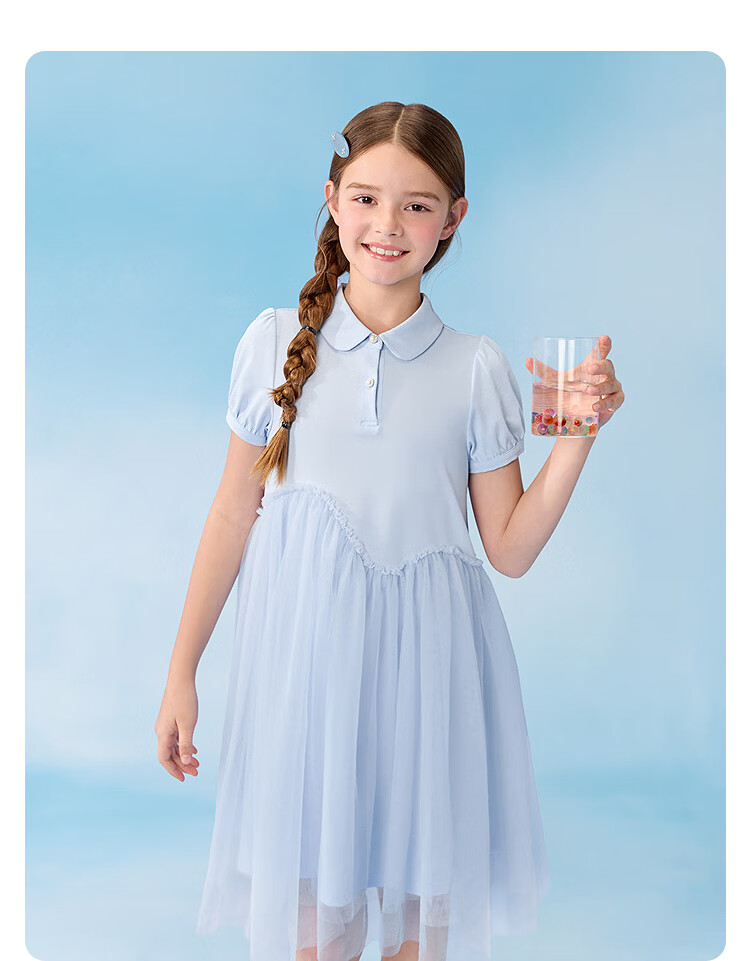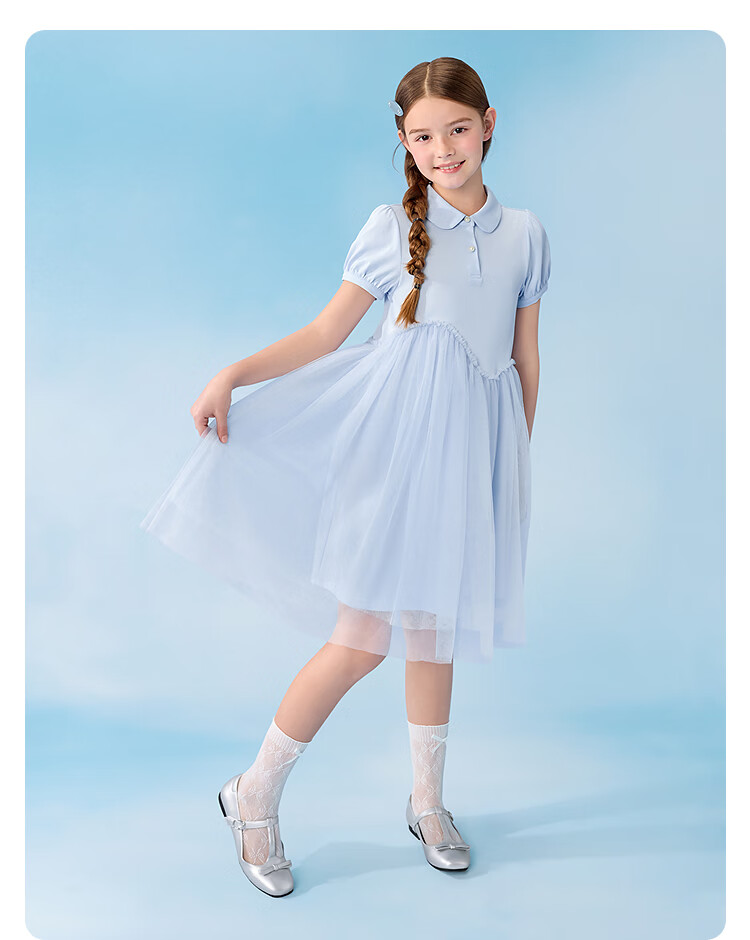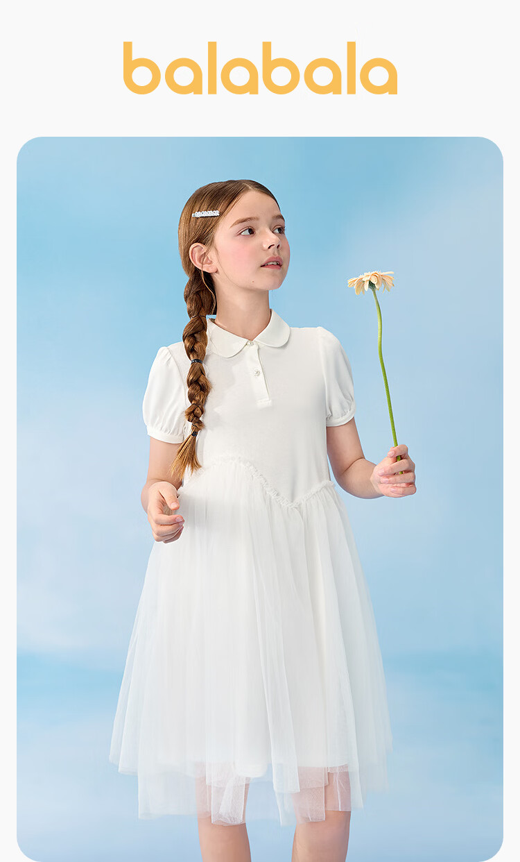BALABALA children's clothing girls' skirts children's dresses medium and large children 2026 new summer wear mesh skirt fake two pieces pink blue 80005 120