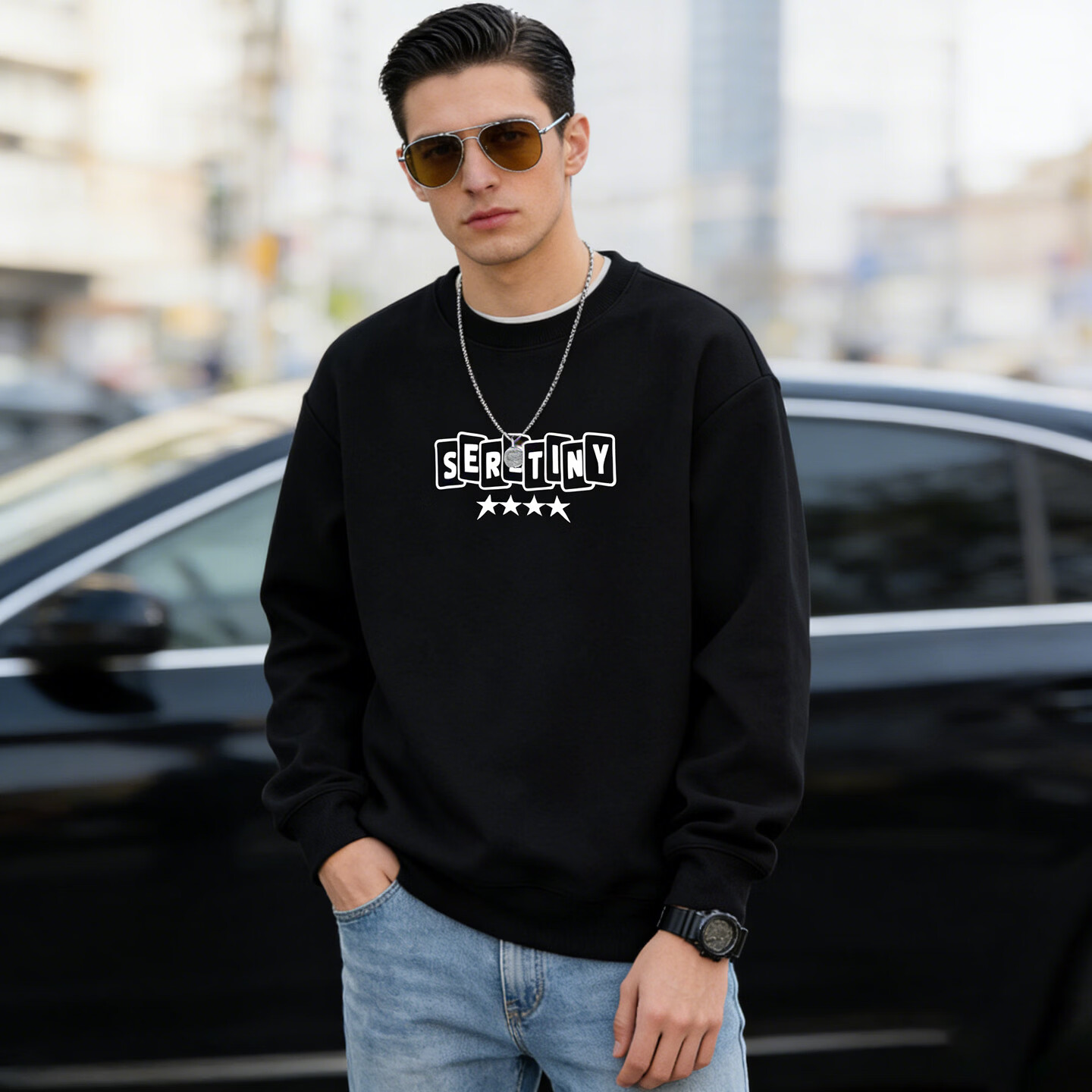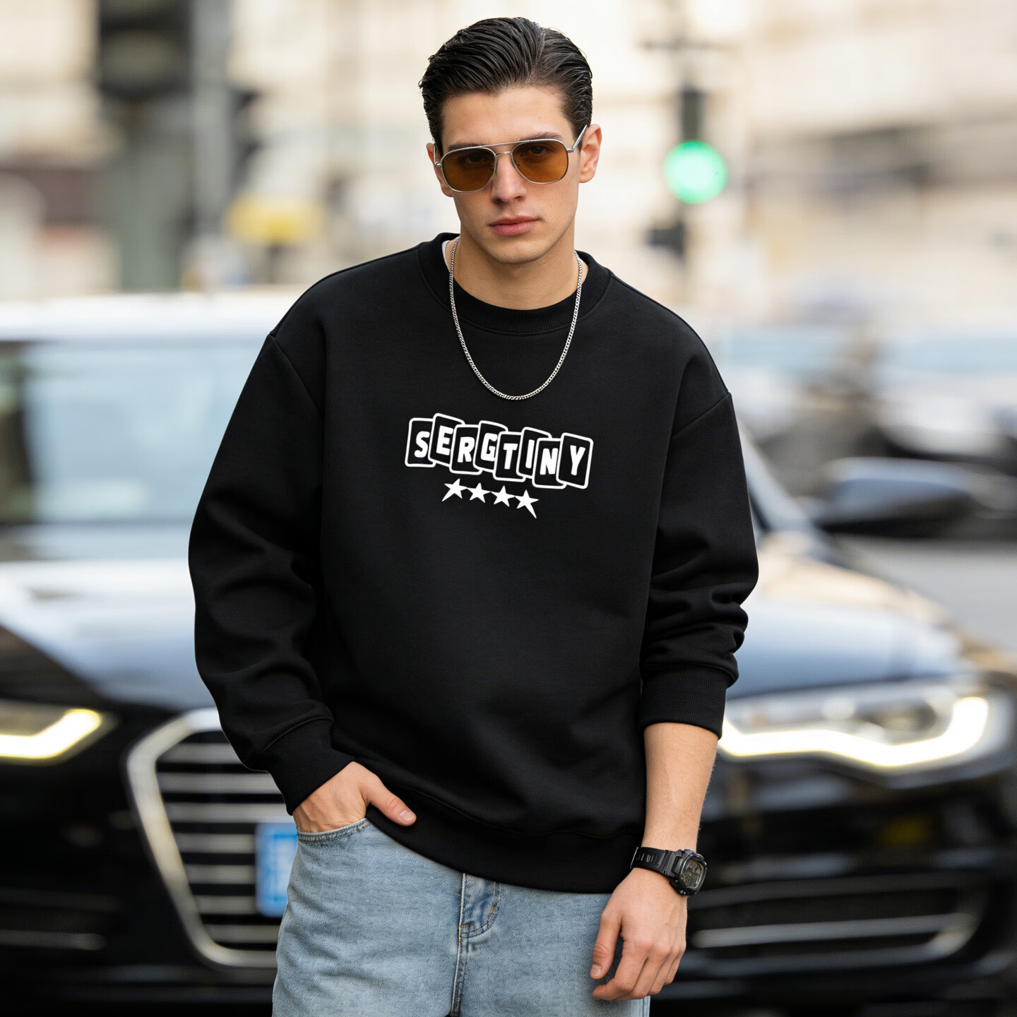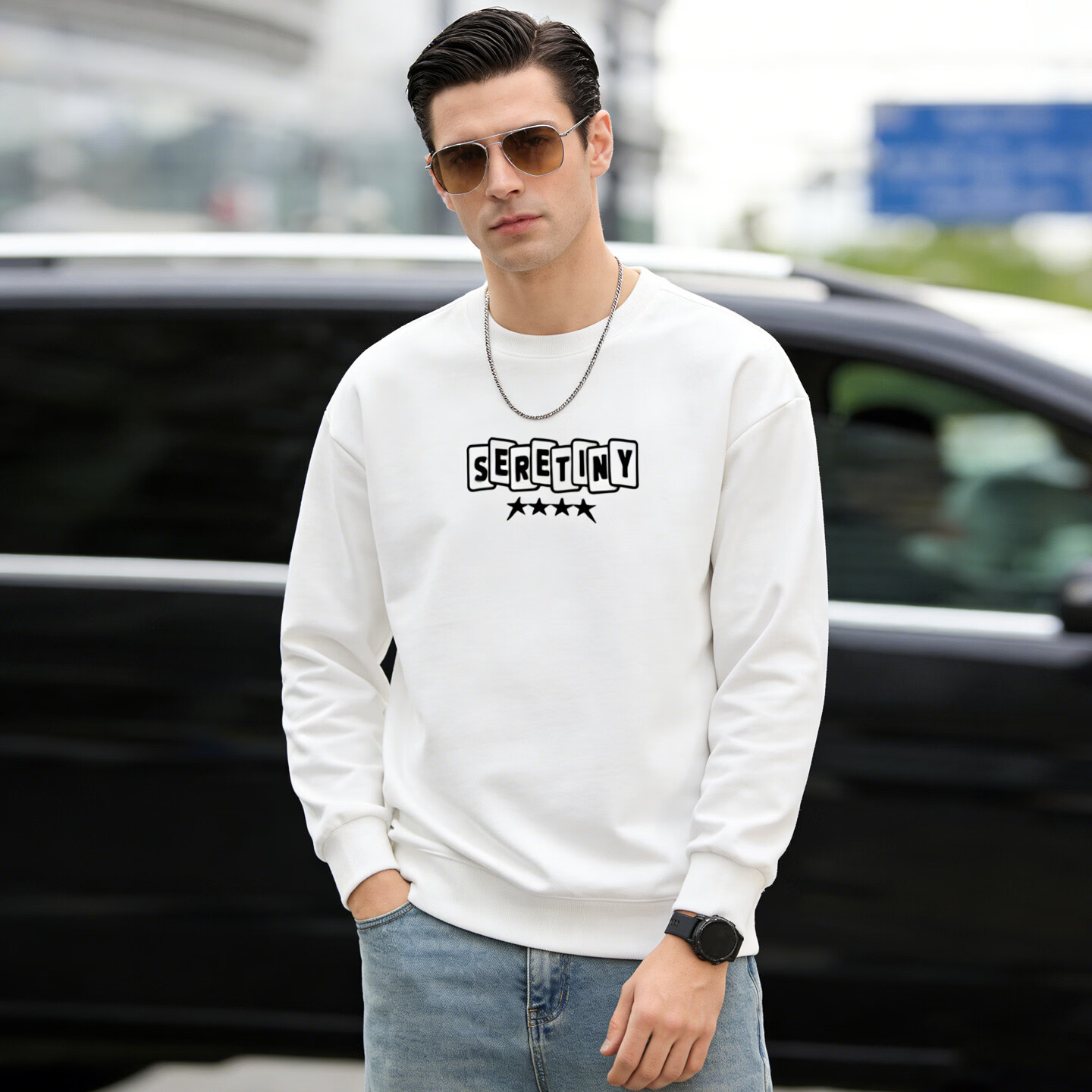 JEEP SPIRIT round neck sweatshirt men's 2026 spring new loose printed tops men's trendy velvet bottoming shirt jacket men black S