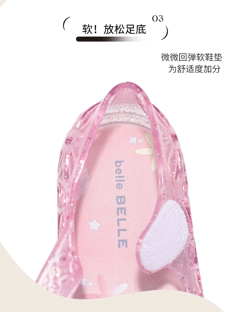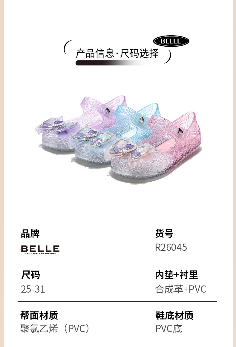 Belle Children's Shoes Girls' Jelly Shoes 2026 Spring New Little Girls Crystal Shoes Princess Shoes Children's Fashion Single Shoes Sandals Blue 25 Suitable for feet about 15.7-16.2cm long