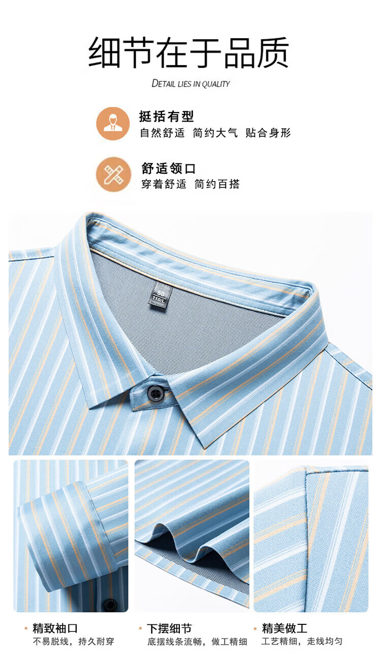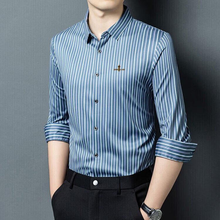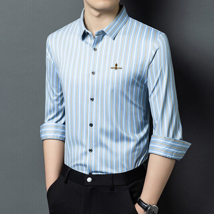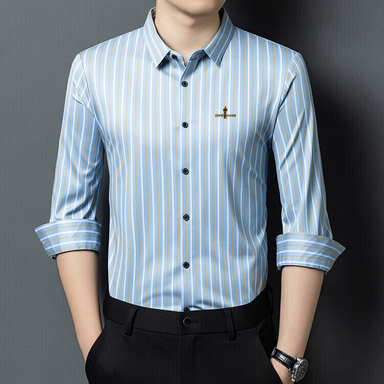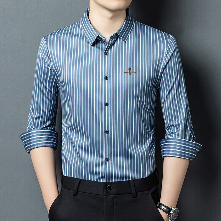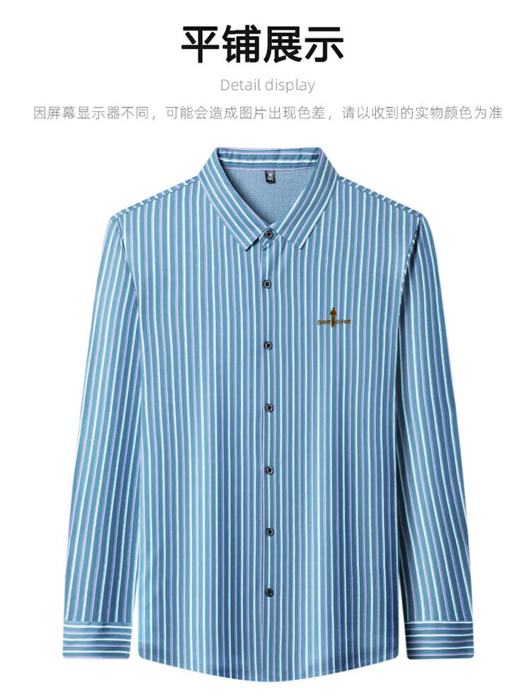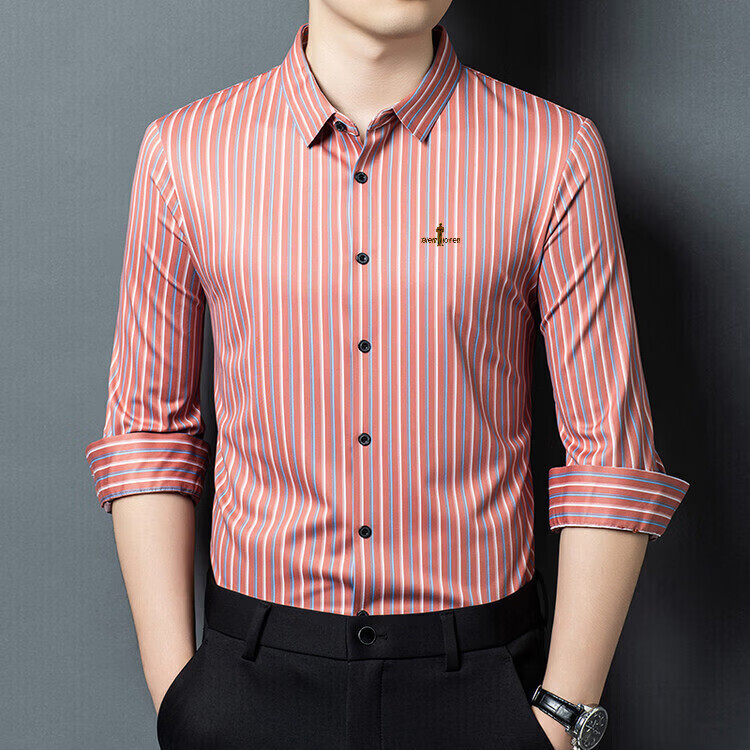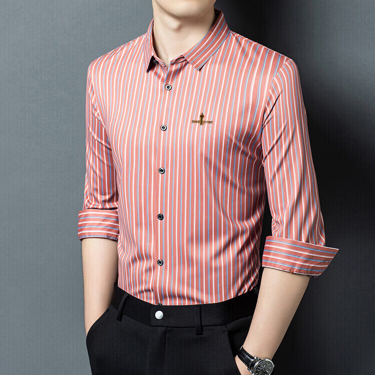 Biyinlefen official brand men's seamless long-sleeved shirt spring and autumn new middle-aged business casual striped daddy shirt flagship official red L