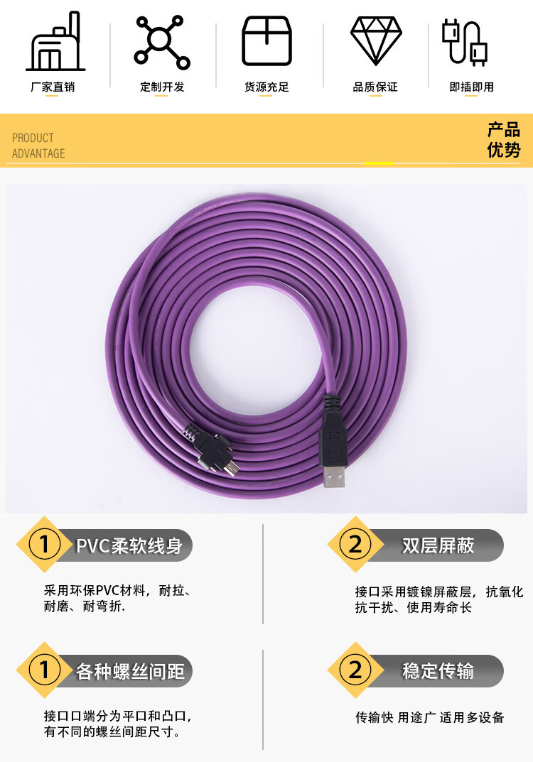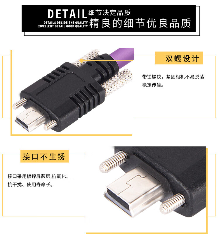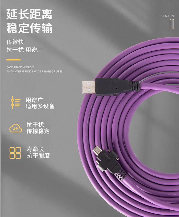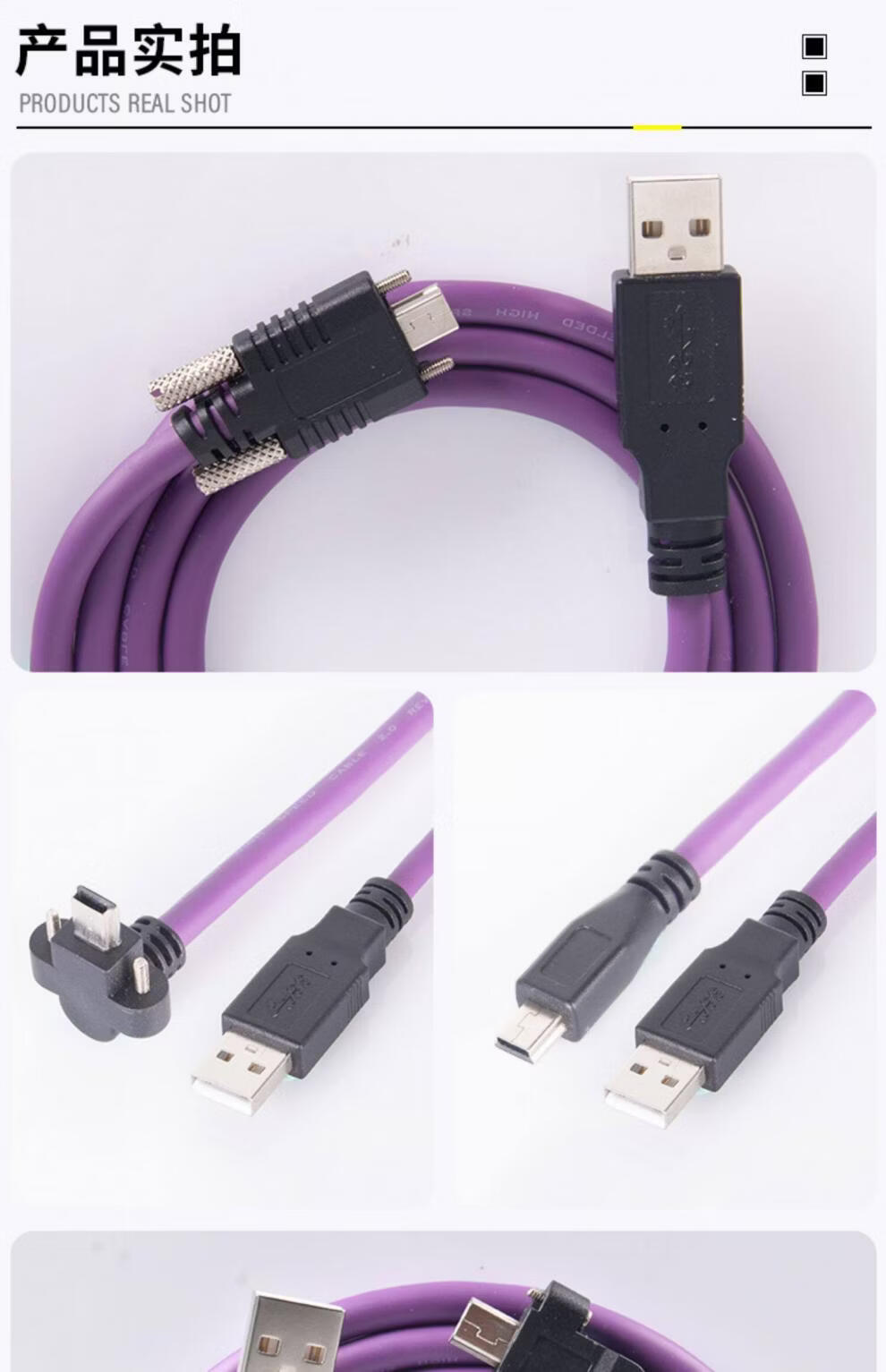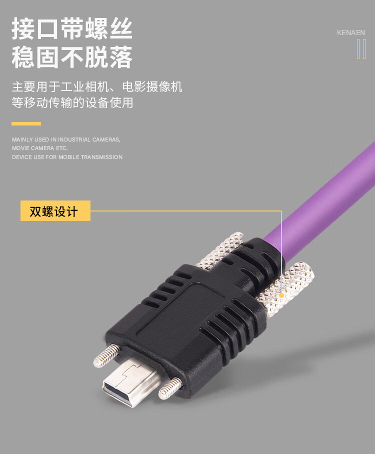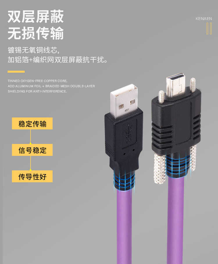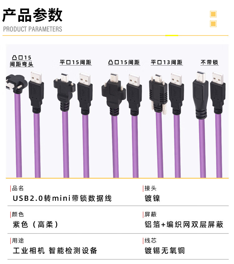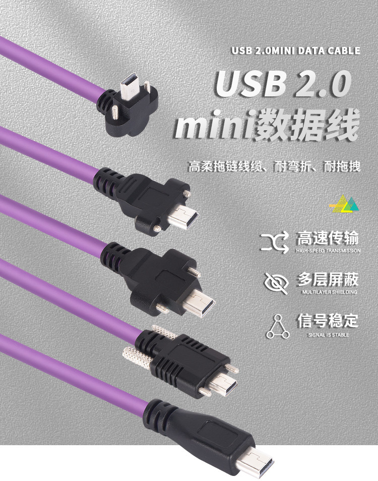 Industrial camera USB2.0 mini data cable mini usb connection cable with lock high-flex drag chain shielded data cable purple usb2.0A male to mini (without lock) 3m