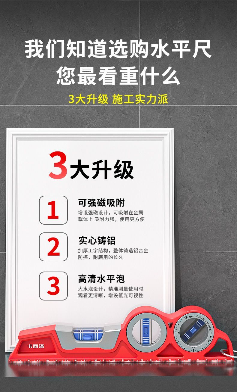 Casillo Torpedo Level High-precision Strong Magnetic Aluminum Alloy Anti-fall Picture Hanging Air Conditioning Balance Ruler Limited Time Offer Flagship Laser Model 210MM (With Green Cross Laser)