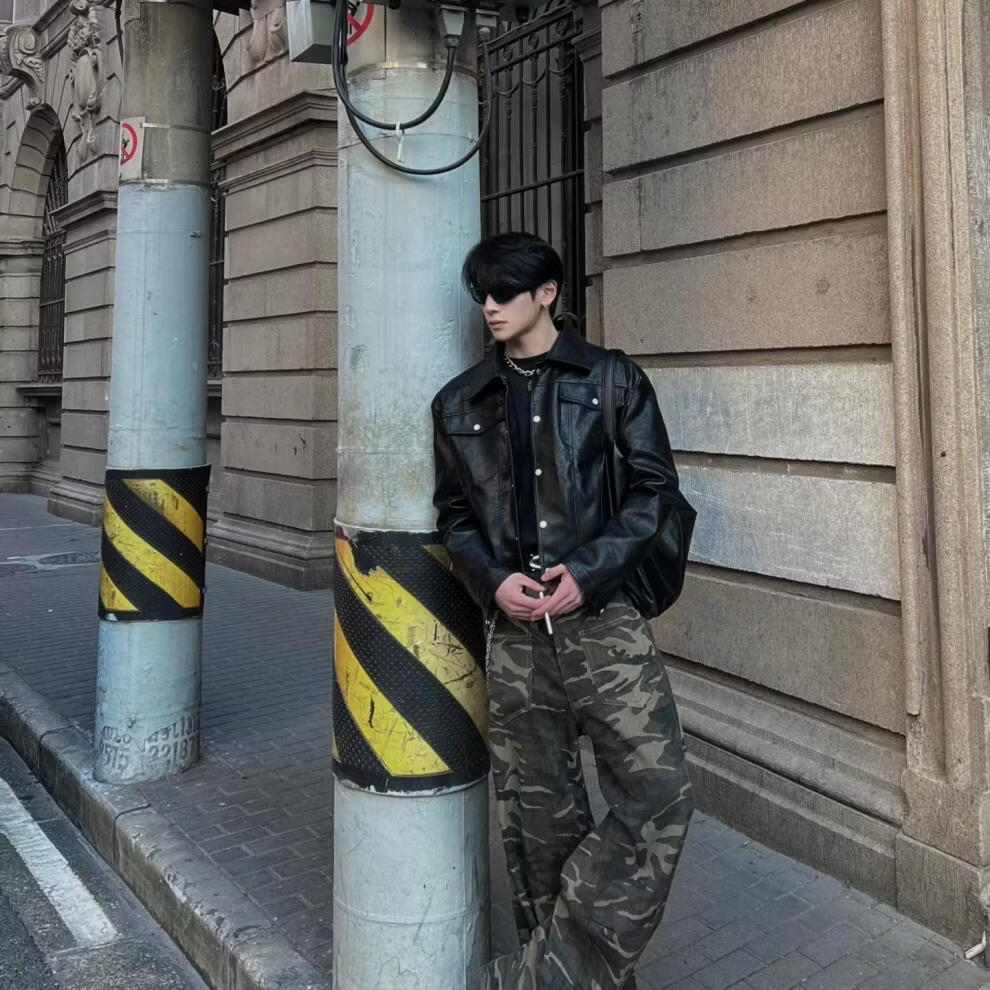 LISM2026 new handsome trendy men's autumn pu leather jacket jacket fashion versatile short motorcycle suit Korean version black XL