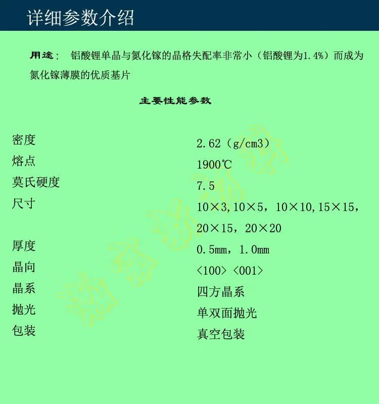 Scientific research grade thin film substrate lithium aluminate crystal LiAlO2 lithium aluminate single crystal. The size can be customized. The price will be calculated according to specific requirements.