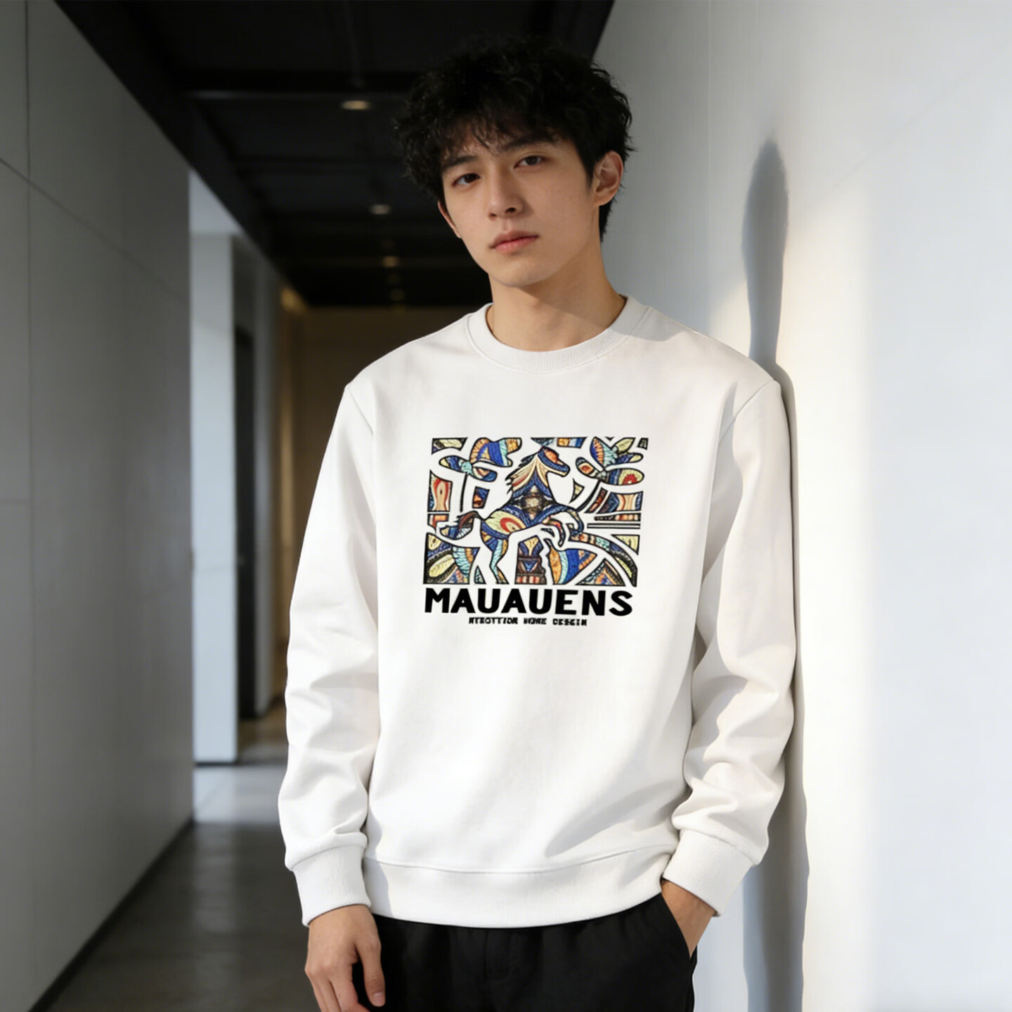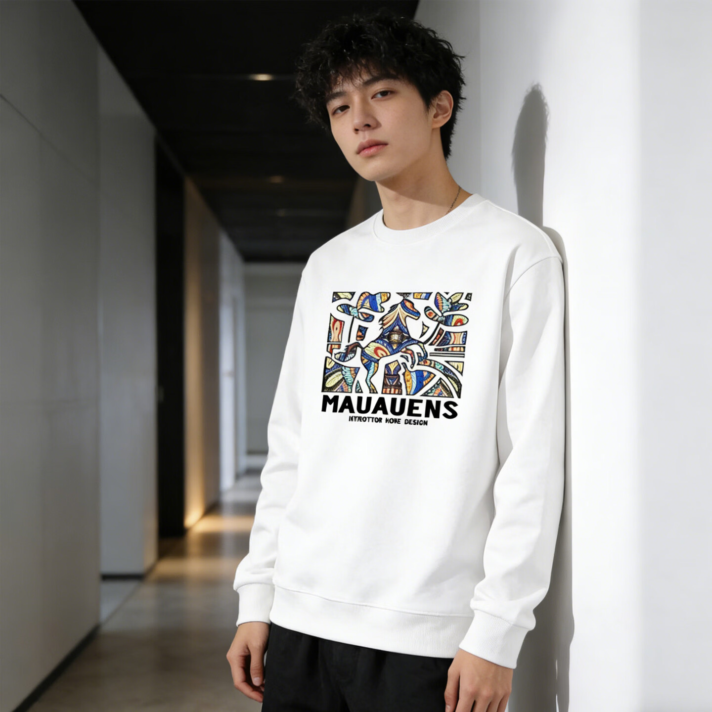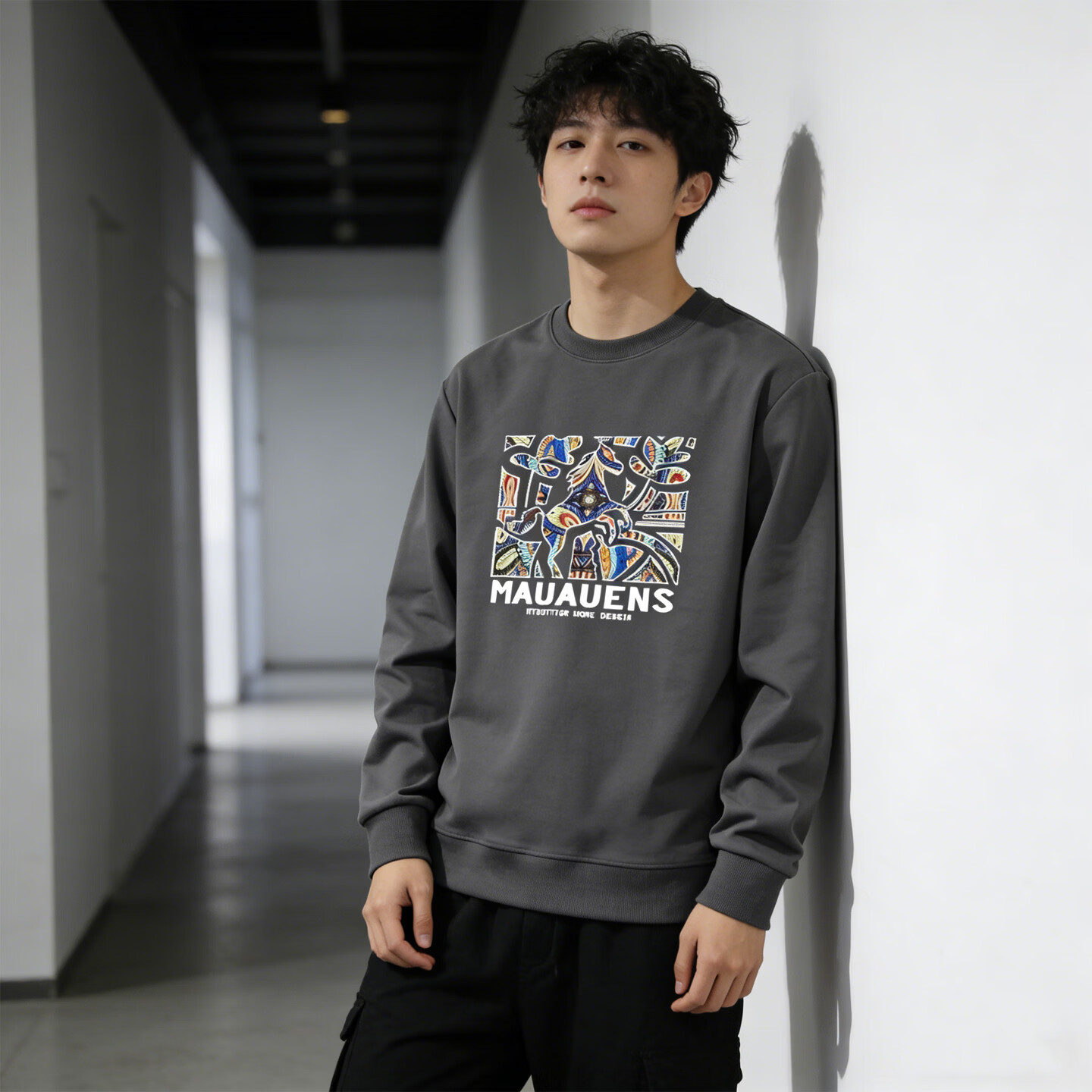 JEEP SPIRIT Van Gogh Art Printed Sweater Men's 2026 Spring New Fashion Brand Loose Round Neck Long Sleeve Bottoming Shirt Men White S 95-120Jin Jin is equal to 0.5 kg