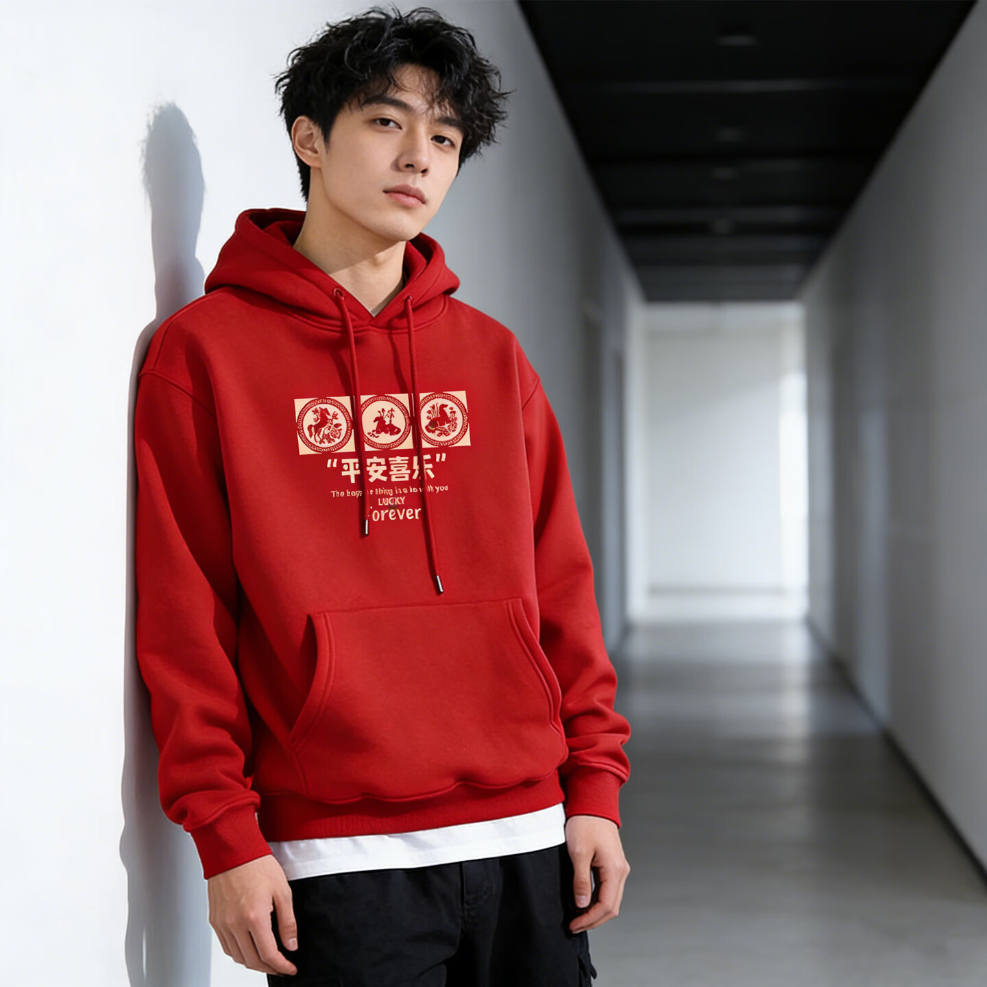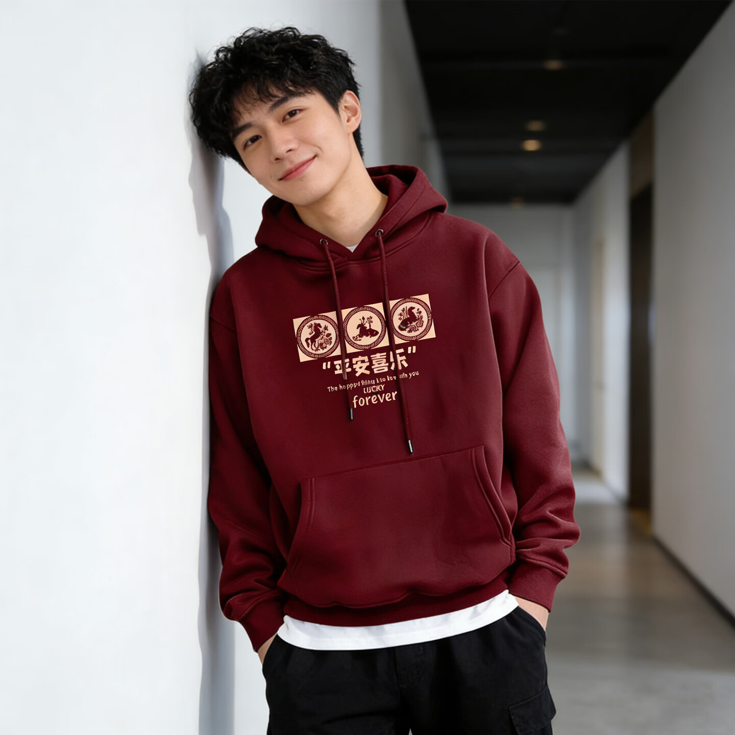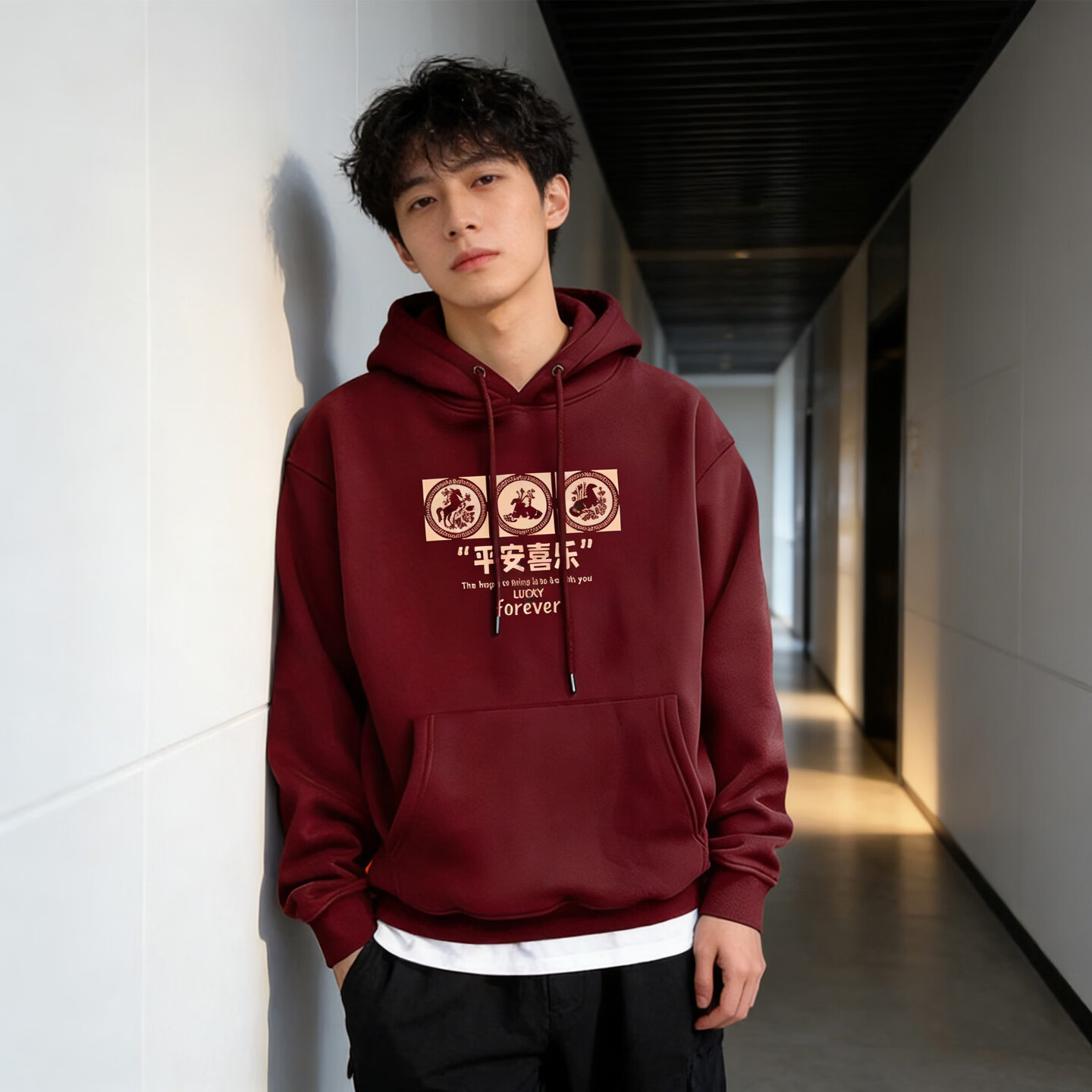 JEEP SPIRIT American heavyweight hooded sweatshirt for men 2026 spring loose and versatile printed jacket for men long-sleeved tops for men burgundy S 95-120Jin Jin is equal to 0.5 kg