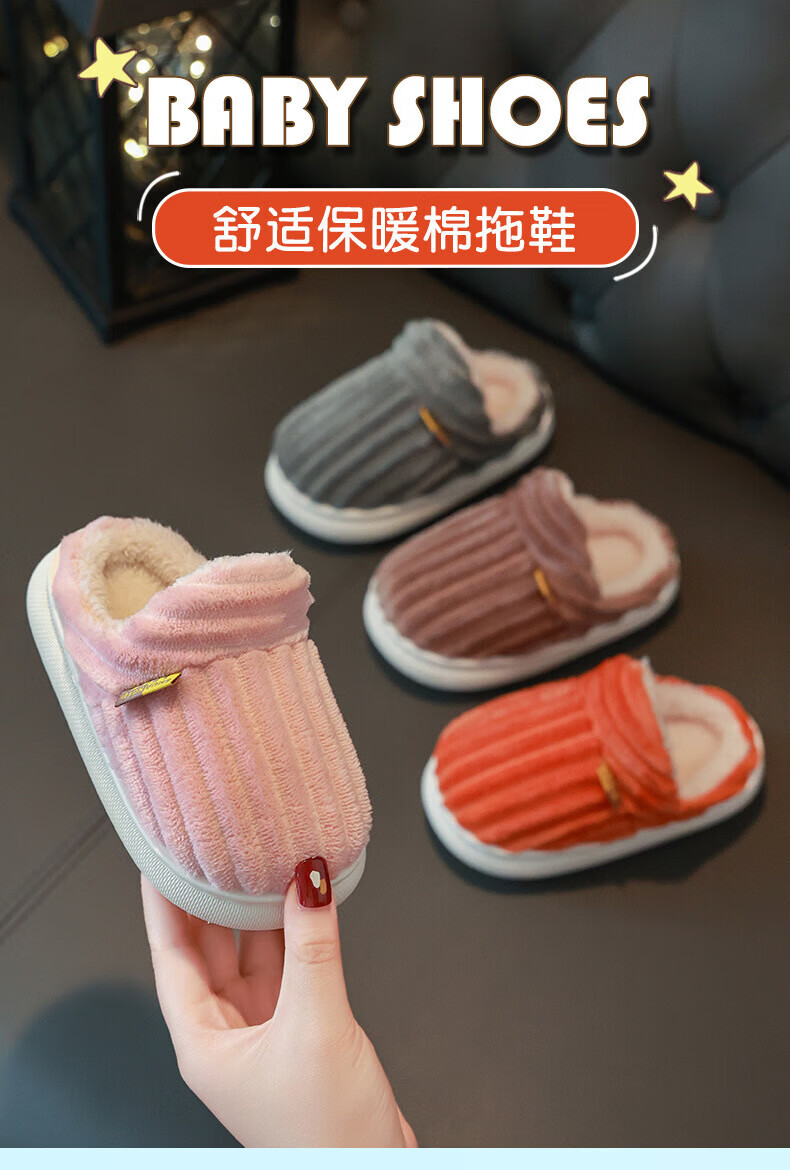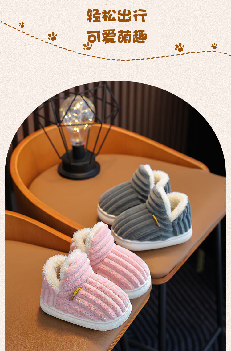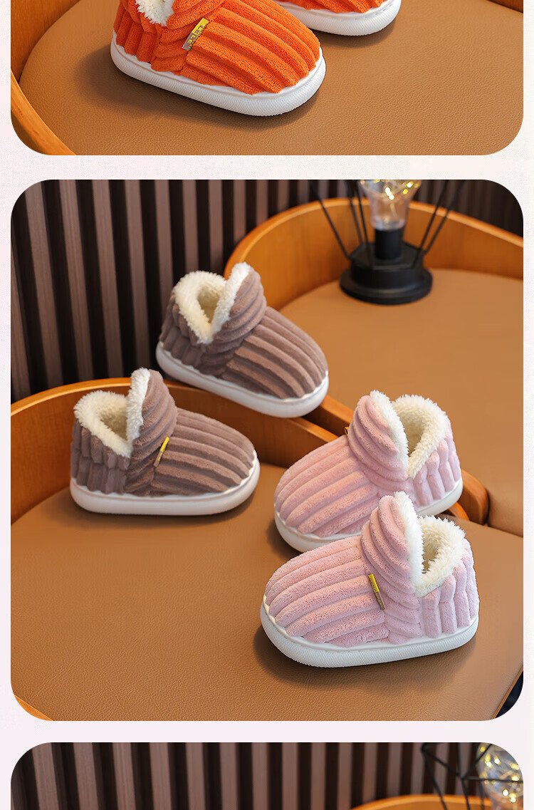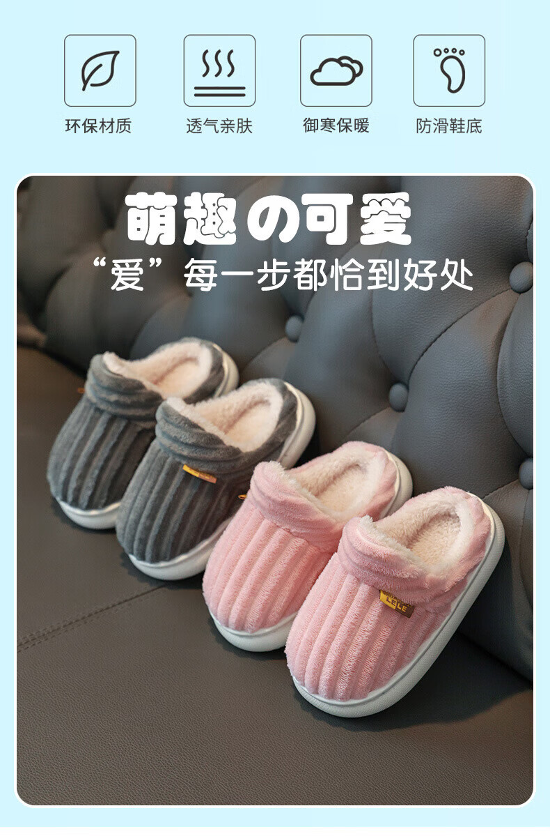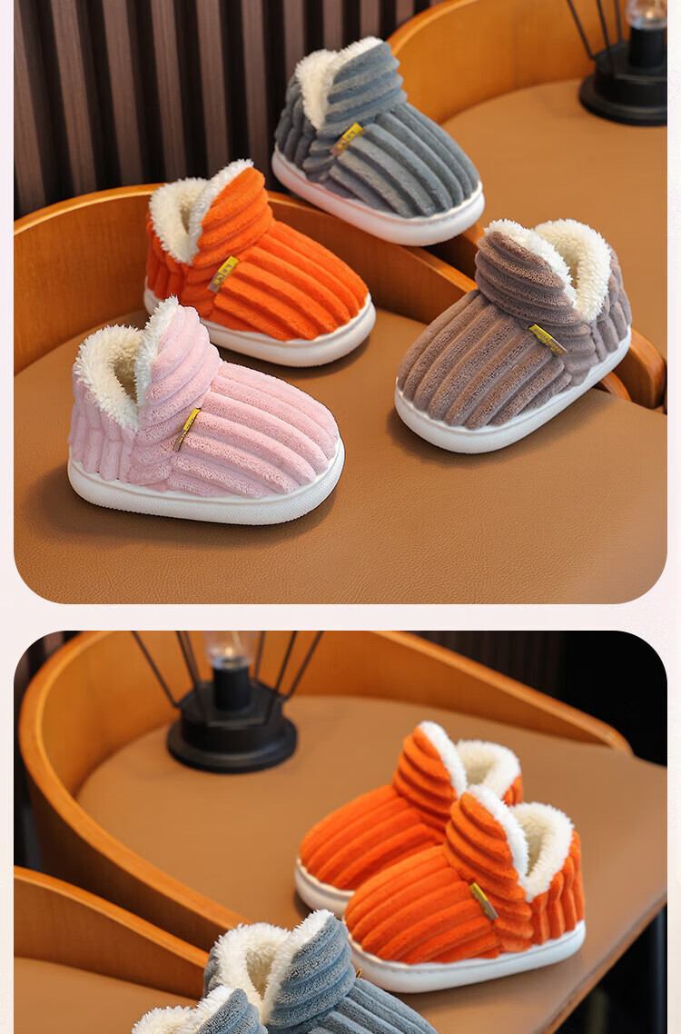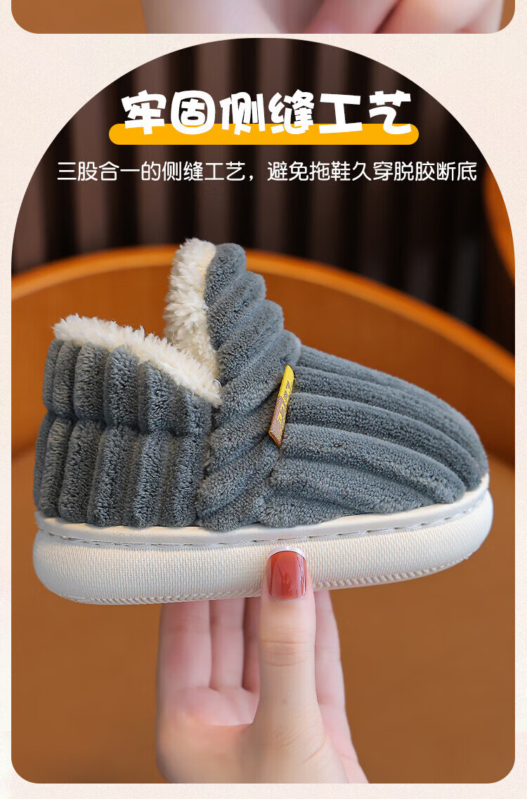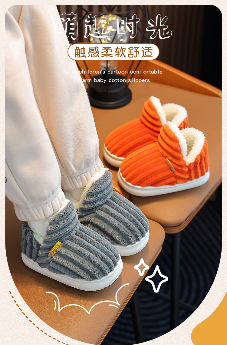 Zhizhou children's cotton slippers autumn and winter with heel for boys and girls, wool slippers for boys and girls, winter non-slip cotton shoes for 3-8 years old, gray with heel, size 34/35, inner length 21cm, suitable for 8-9 years old